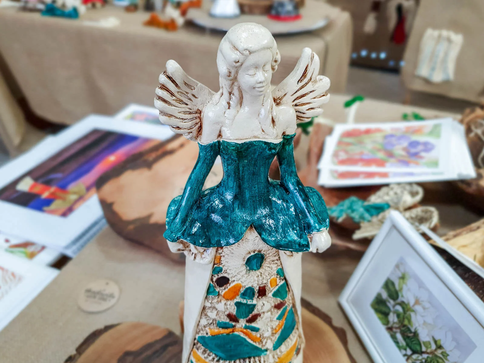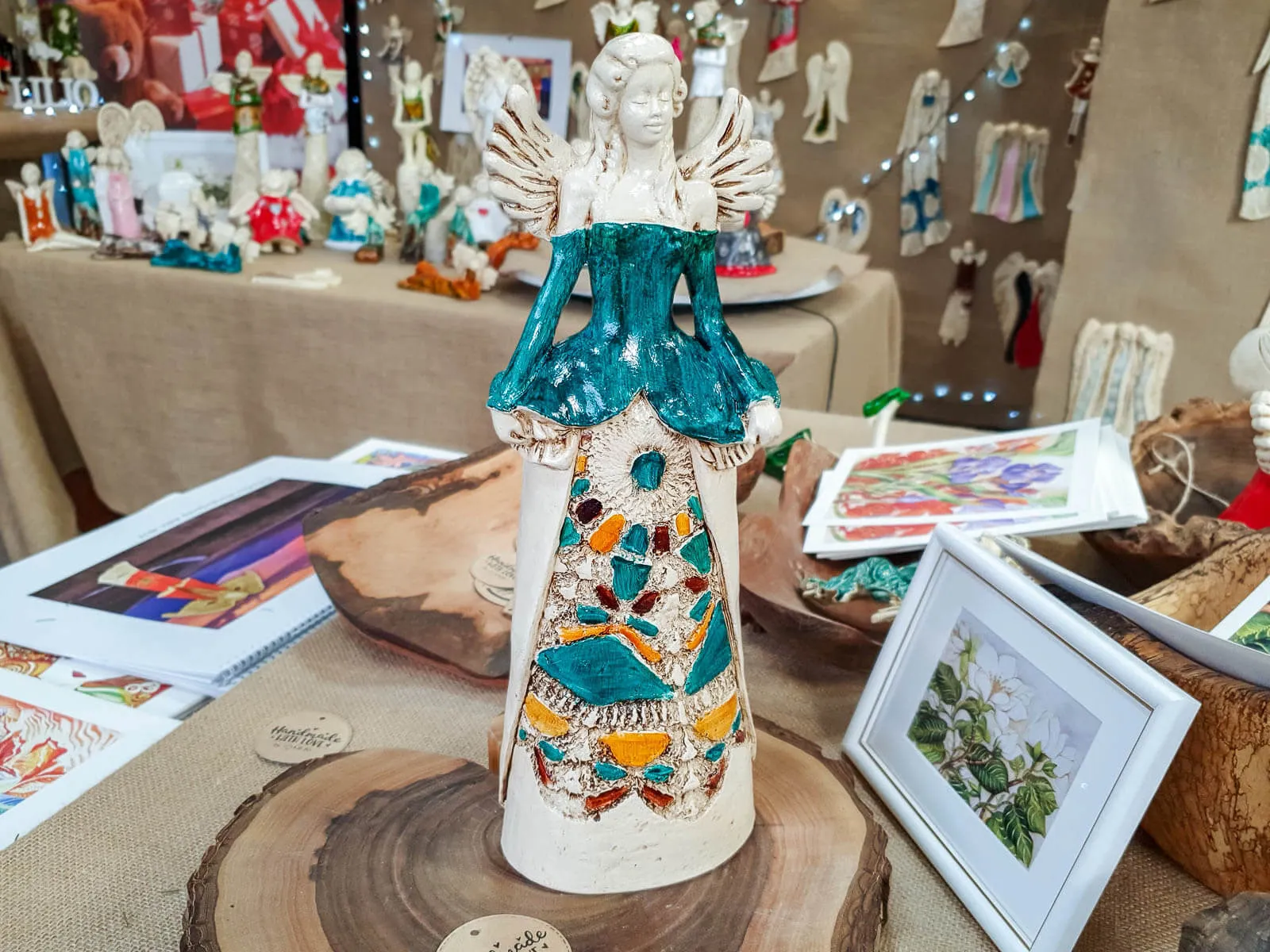 Anioł Anna jest ręcznie wykonaną ozdobą z gipsu. Można go postawić w różnych miejscach, ponieważ jest stojący. Przedstawia kobietę w pięknej, kolorowej sukni. Góra sukni jest biała, a dół beżowy z kolorowymi akcentami. Ma on jasne, kręcone włosy i małe skrzydła skierowane ku górze. Idealnie nadaje się na stoły weselne oraz prezenty dla rodziców lub kobiety lubiącej piękne dekoracje i anioły. Jego niespotykany wygląd przyciąga wzrok i budzi zainteresowanie.
