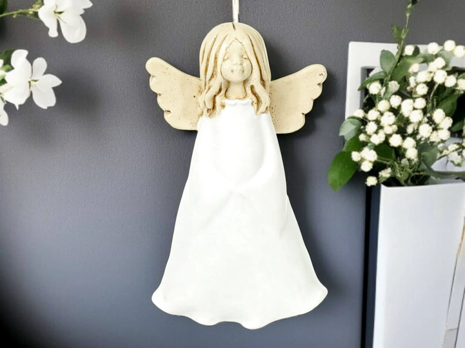 Anioł Monica to ręcznie wykonana figurka. Można ją zawiesić w każdym miejscu w domu. Anieliczka wprowadzi każdego domownika w błogi i radosny nastrój. Dziewczynka jest ubrana w długa, białą sukienkę. Kolor biały jest symbolem czystości i niewinności. Figurka idealnie nadaje się na prezent urodzinowy dla dziewczynki.