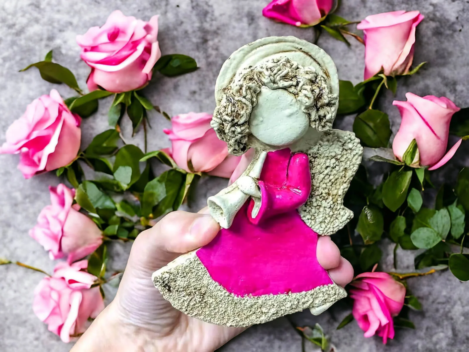 Liolinka jest małym uroczym aniołkiem, kochającym płatać figle. Jest pełna energii, co uzewnętrznia swoimi jaskrawymi, kolorowymi sukienkami oraz burzą loczków na głowie. Kocha muzykę, stąd właśnie trąbka w jej dłoniach. Aniołek będzie zarówno pięknym i trafionym prezentem dla małej dziewczynki, jak i efektowną dekoracją wnętrza.