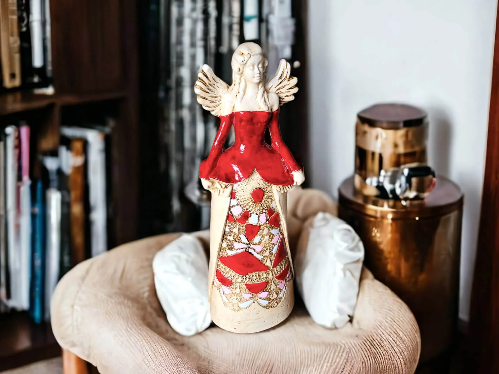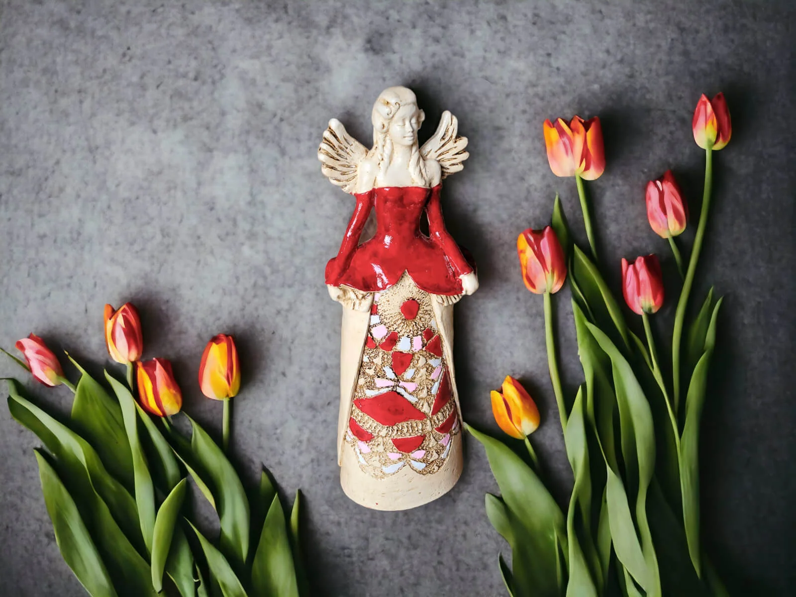 Anioł Anna jest ręcznie wykonaną ozdobą z gipsu. Można go postawić w różnych miejscach, ponieważ jest stojący. Przedstawia kobietę w pięknej, kolorowej sukni. Góra sukni jest biała, a dół beżowy z kolorowymi akcentami. Ma on jasne, kręcone włosy i małe skrzydła skierowane ku górze. Idealnie nadaje się na stoły weselne oraz prezenty dla rodziców lub kobiety lubiącej piękne dekoracje i anioły. Jego niespotykany wygląd przyciąga wzrok i budzi zainteresowanie.