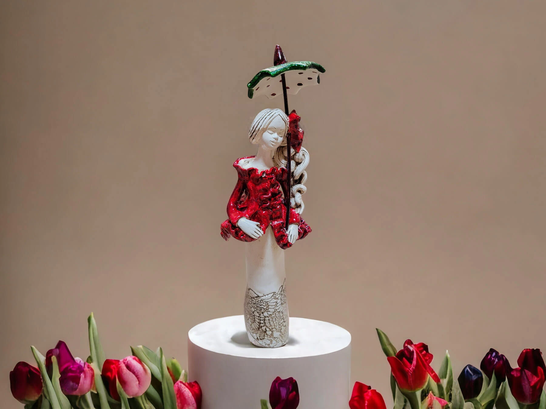 Anioł Konstancja w czerwonym żakiecie to ręcznie wykonana figurka gipsowa. Jej beżowy ubiór podkreślają czerwone akcenty i parasolka. Figurka idealnie nadaje się na prezent na dziewczynki lub kobiety jak piękna ozdoba wnętrza. Pierwszy raz anioł został zaprezentowany 3 maja w poście na Facebooku (w święto uchwalenia Konstytucji) . W komentarzach padło wiele propozycji imienia dla anioła, a jednym z nich było właśnie imię Konstancja nawiązujące do Konstytucji. Ostatecznie w głosowaniu wzięły udział imiona Amelia i Konstancja. Głosy były bardzo równo podzielone, a ostatecznie wygrało imię Konstancja które otrzymało 51% głosów.