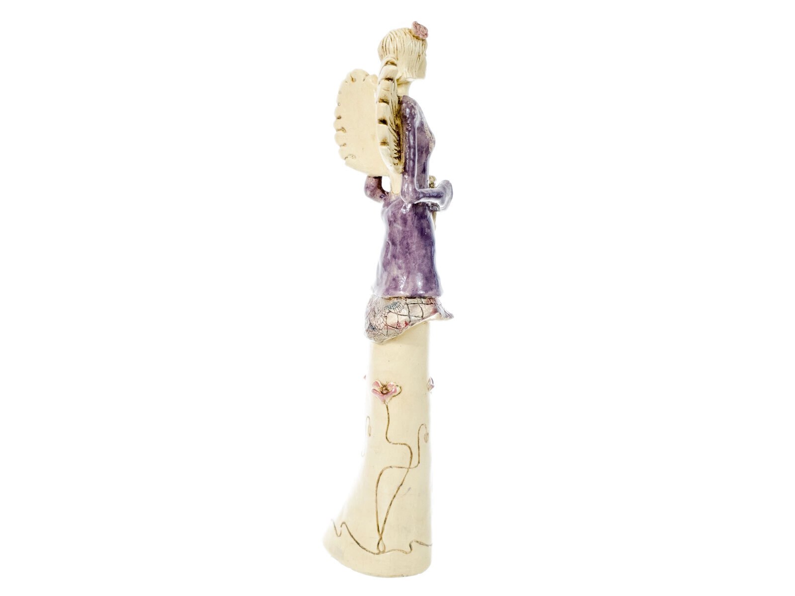 Anioł Mia to postać o nieprzeciętnej subtelności, lecz w tej wersji kolorystycznej jest o wiele ciekawsza. Bowiem, jej suknia jest w subtelnym jasnym fiolecie, co nadaje figurze spokoju i delikatności. Anioł jest dość sporych rozmiarów, a wysokość sięgająca czterdziestu centymetrów pozwala na umieszczenie figury w dowolnym miejscu w mieszkaniu, na pewno zostanie zauważona. Mia będzie się również pięknie komponować wśród innych dekoracji w salonie.