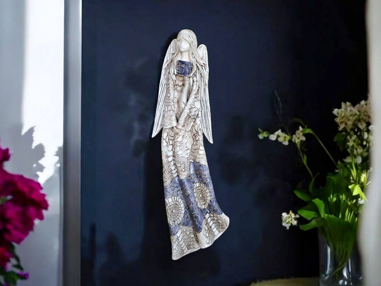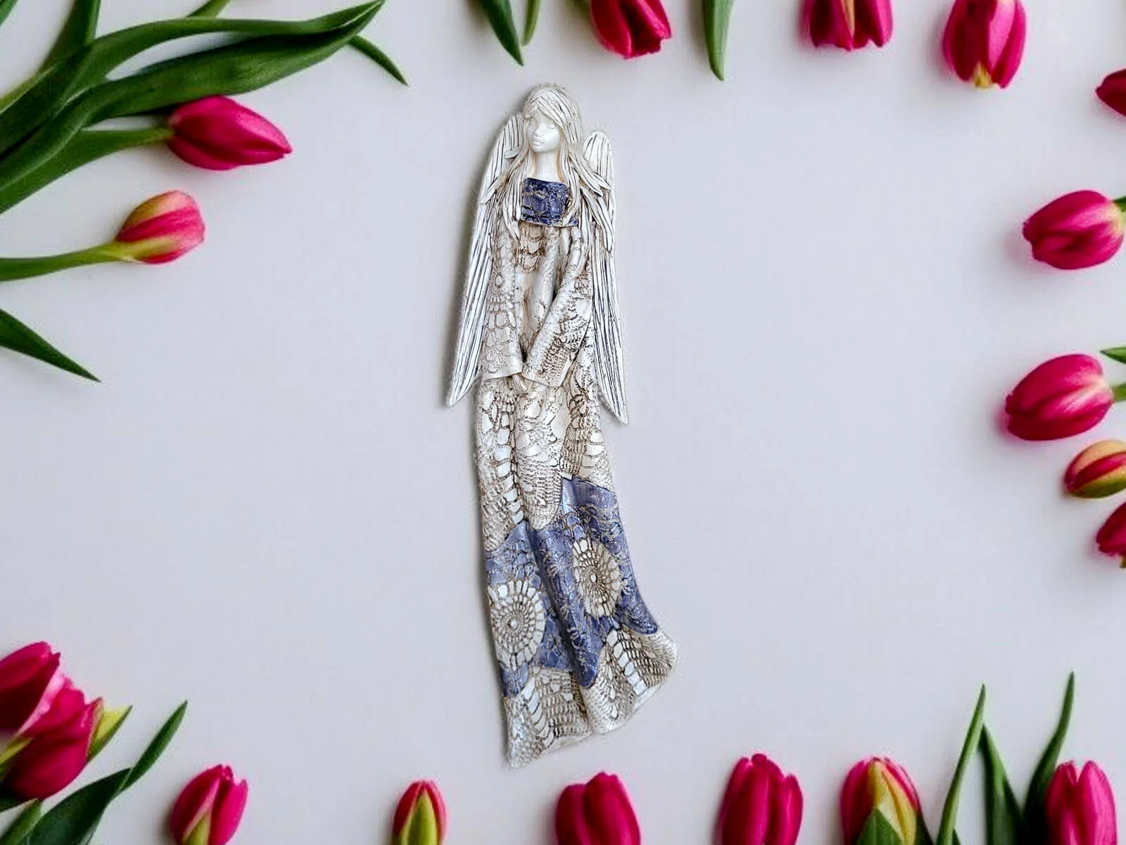 Anioł Genesis w kolorze szarym to ręcznie wykonana figurka do zawieszenia na ścianę. Jego imię jest pochodzenia greckiego. Anioł jest pełen tajemnic. Cały swój czas poświęca sprawom społecznym. Potrafi każdemu udzielić pomocy i wsparcia. Troska o innych wypływa prosto z jej serca. Jest ubrany w zwiewną, beżową suknie z haftowanymi ornamentami. Z gracją eksponuje rozłożyste skrzydła. Figurka nadaje się na prezent na każdą okazję.