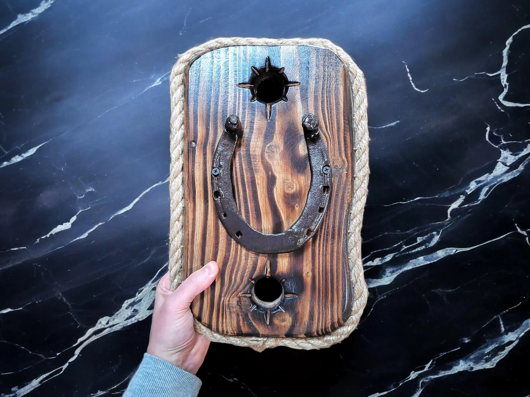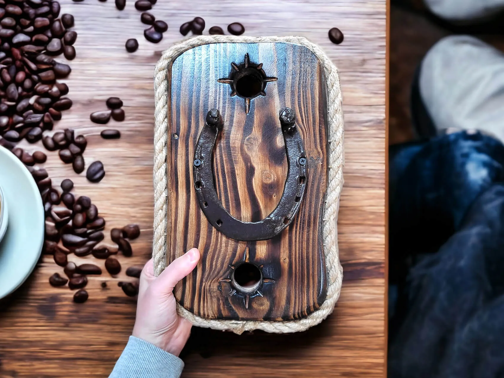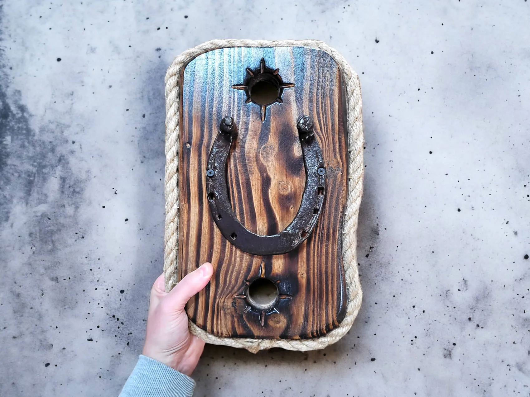 Stara podkowa na desce do powieszenia. Ręcznie robiona, stylowa dekoracja drewniana. Jeśli chcesz mieć coś naturalnego w mieszkaniu, a zarazem coś starego z historią, to ta dekoracja będzie świetnym pomysłem. Dekoracja unikatowa. Doskonały pomysł dla mężczyzny i kogoś kto lubi naturalne dekoracje.