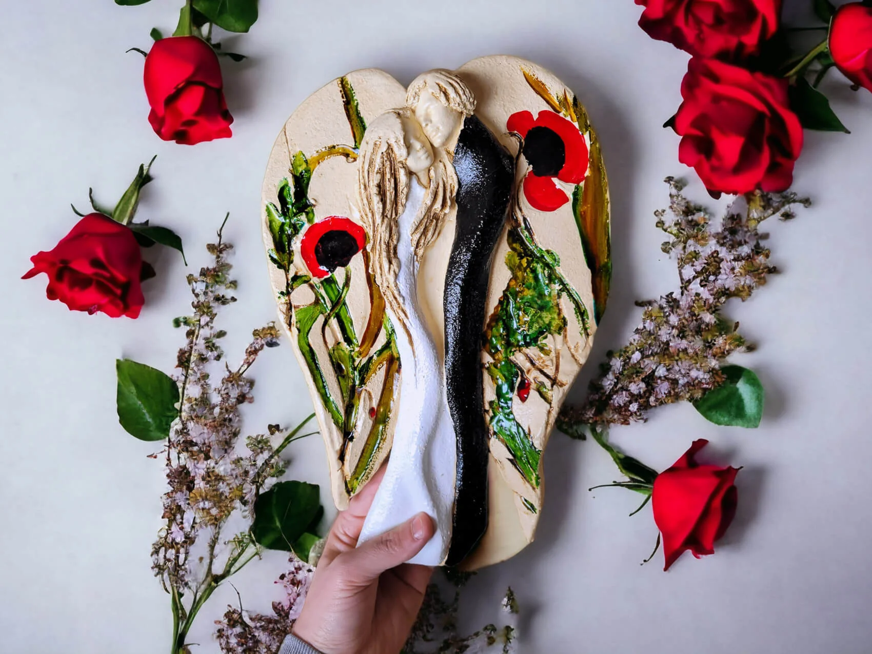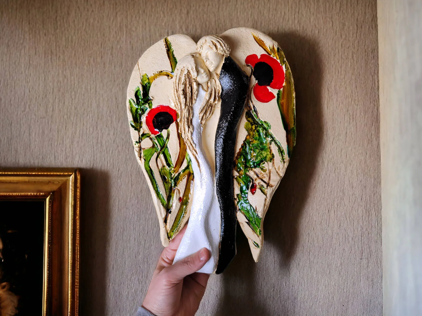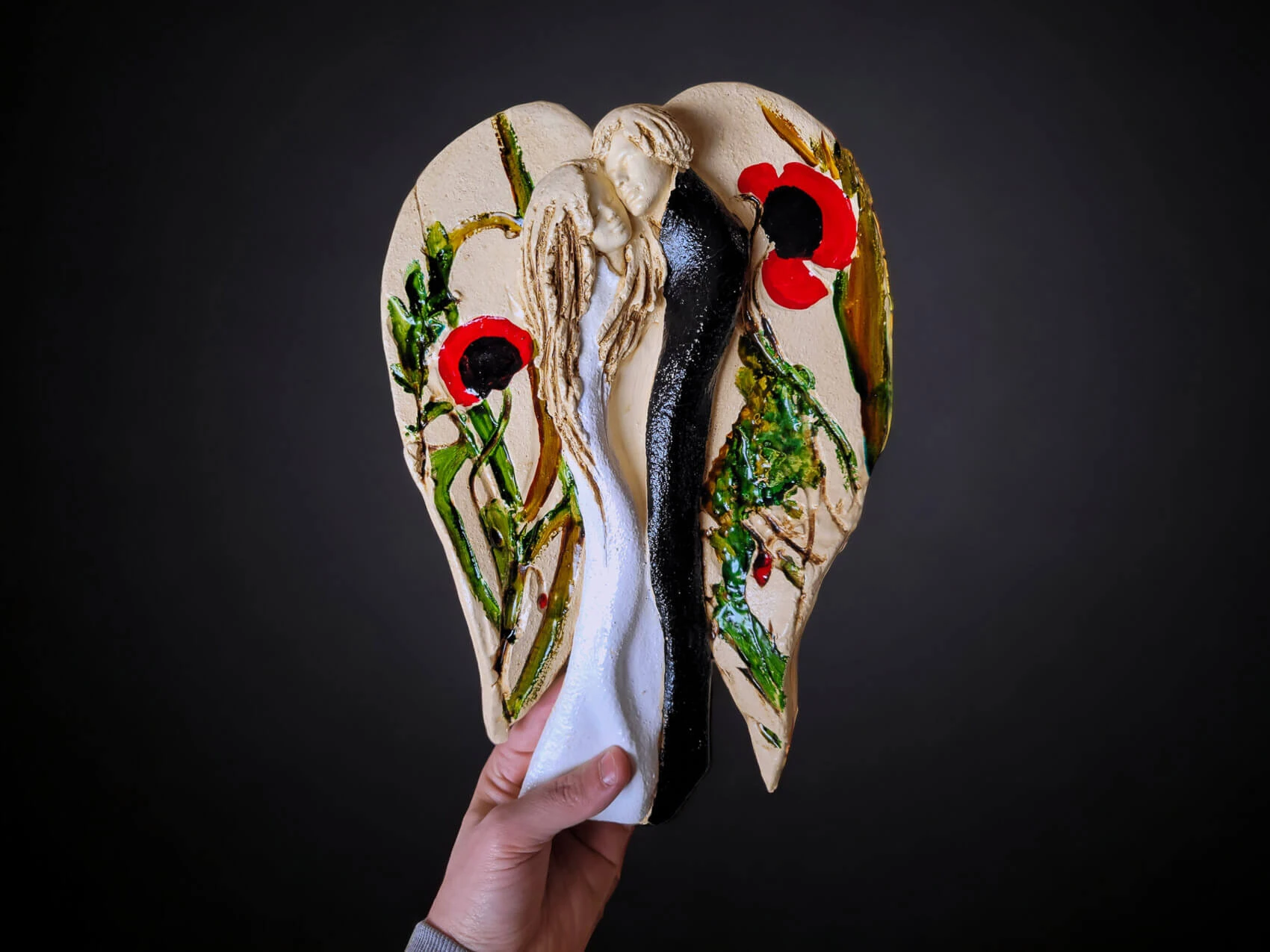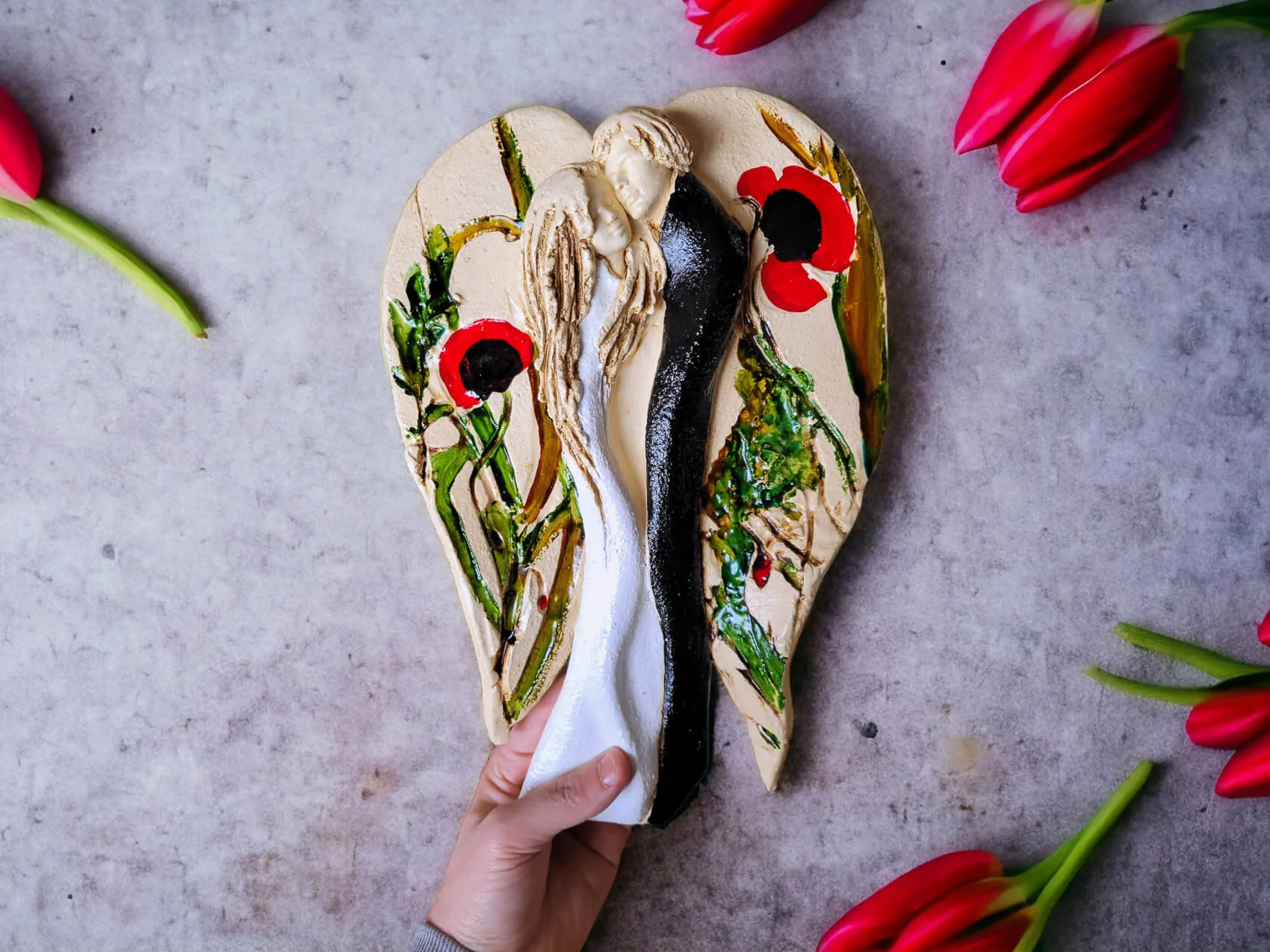 Kochające Anioły w unikalnej wersji kolorystycznej to niezwykła ozdoba, która emanuje ciepłem i miłością. Każdy z tych aniołów jest ręcznie wykonany i ręcznie pomalowany, co nadaje im wyjątkowy charakter i indywidualność. Stojąc w objęciach, tworzą one jedność, będąc połączone miłością, co stanowi piękne i inspirujące przesłanie.