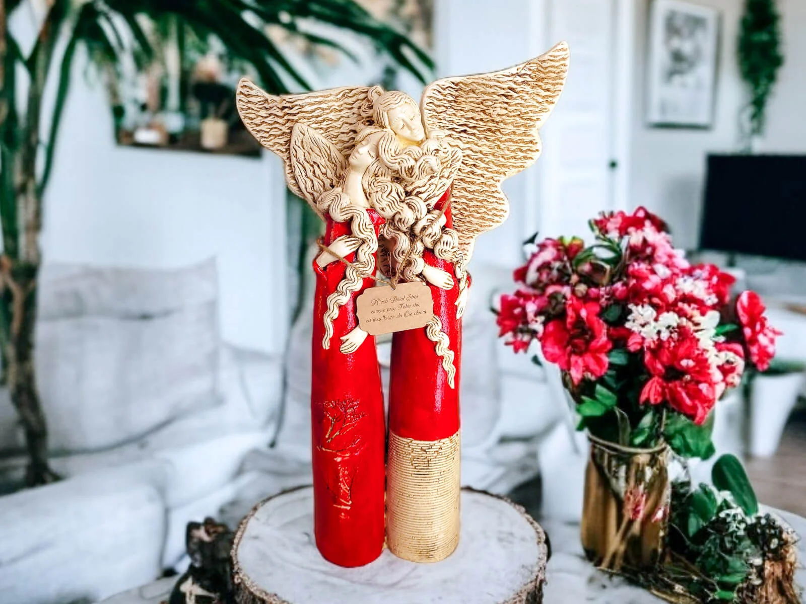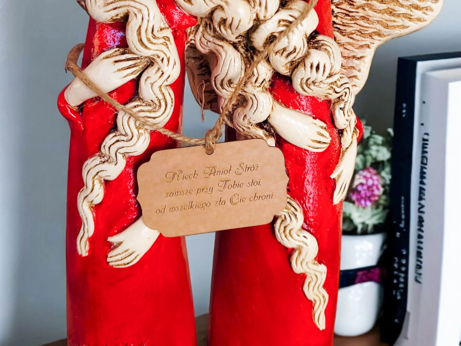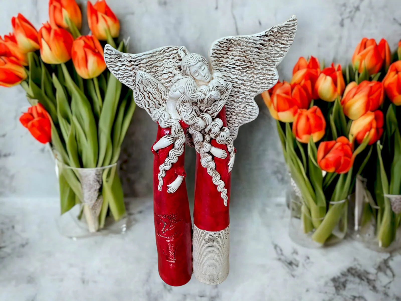 Podaruj symbol miłości, który wyrazi więcej niż tysiąc słów. Figurka Romeo & Juliet w czerwonej wersji kolorystycznej to ręcznie wykonane dzieło, które ukazuje parę zakochanych aniołów pochylonych ku sobie w czułym geście bliskości. Ich splecione spojrzenia i subtelny kontakt głowami oddają emocje, które poruszają serce.