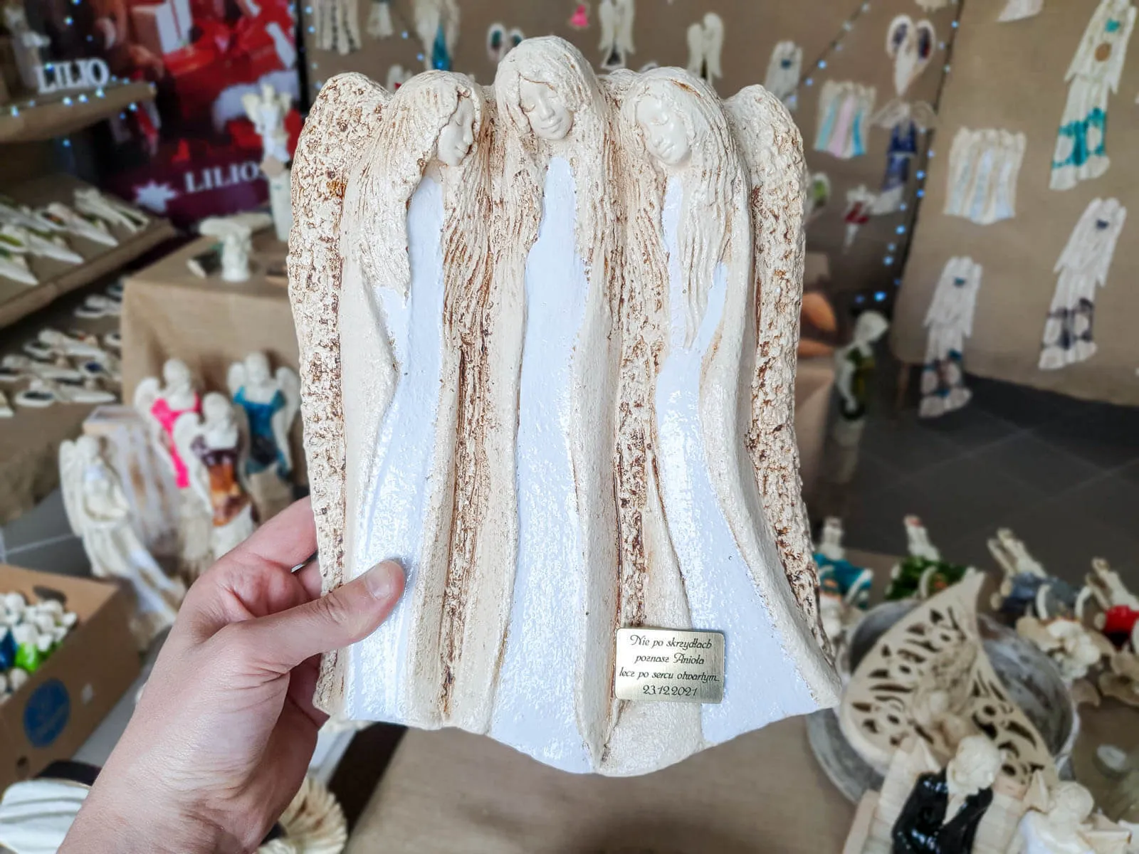 Wykonane ręcznie z gipsu i starannie pomalowane, te anioły są nie tylko wyjątkowym wyrazem rzemiosła, ale także wyrazem indywidualności. Każdy anioł ma swój własny charakter i wyrazistość, co czyni każdą figurkę niepowtarzalną.