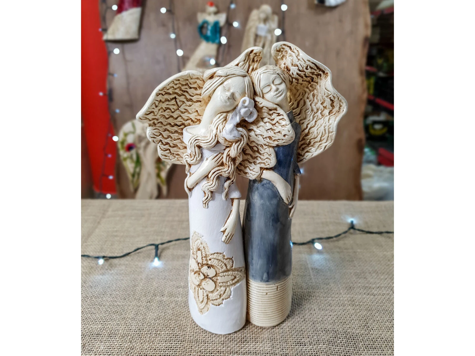 Nora i Ellie to siostry, darzące się wzajemnie ogromną miłością. Kochają spędzać razem czas i nie mogłyby żyć oddzielnie. Dlatego właśnie figurka przedstawia je razem - wtulone w siebie celebrują chwile spędzane razem. Całość ubrana jest w piękne, subtelne barwy - biel, beż z nutą czerni. Figura pięknie udekoruje salon bądź ogród.