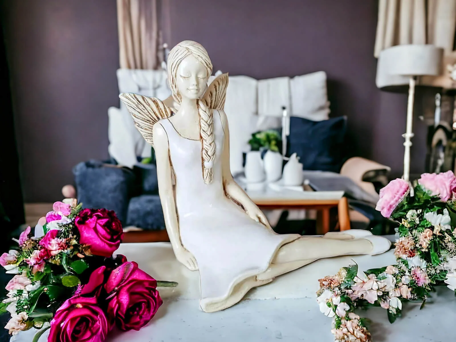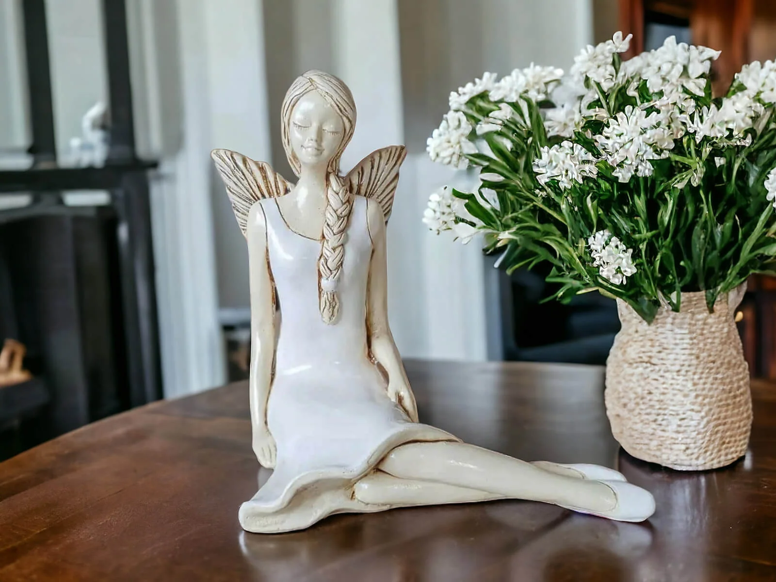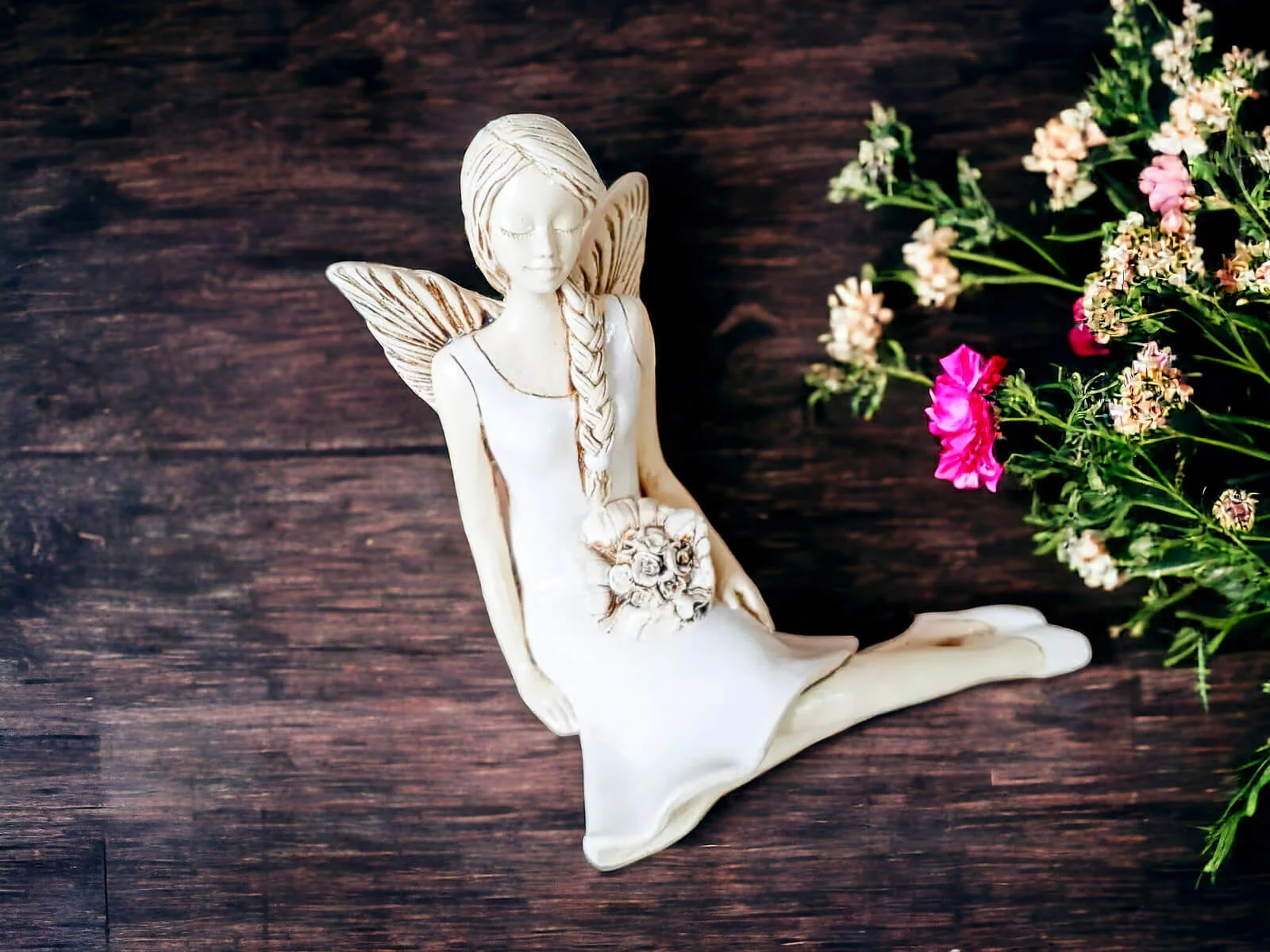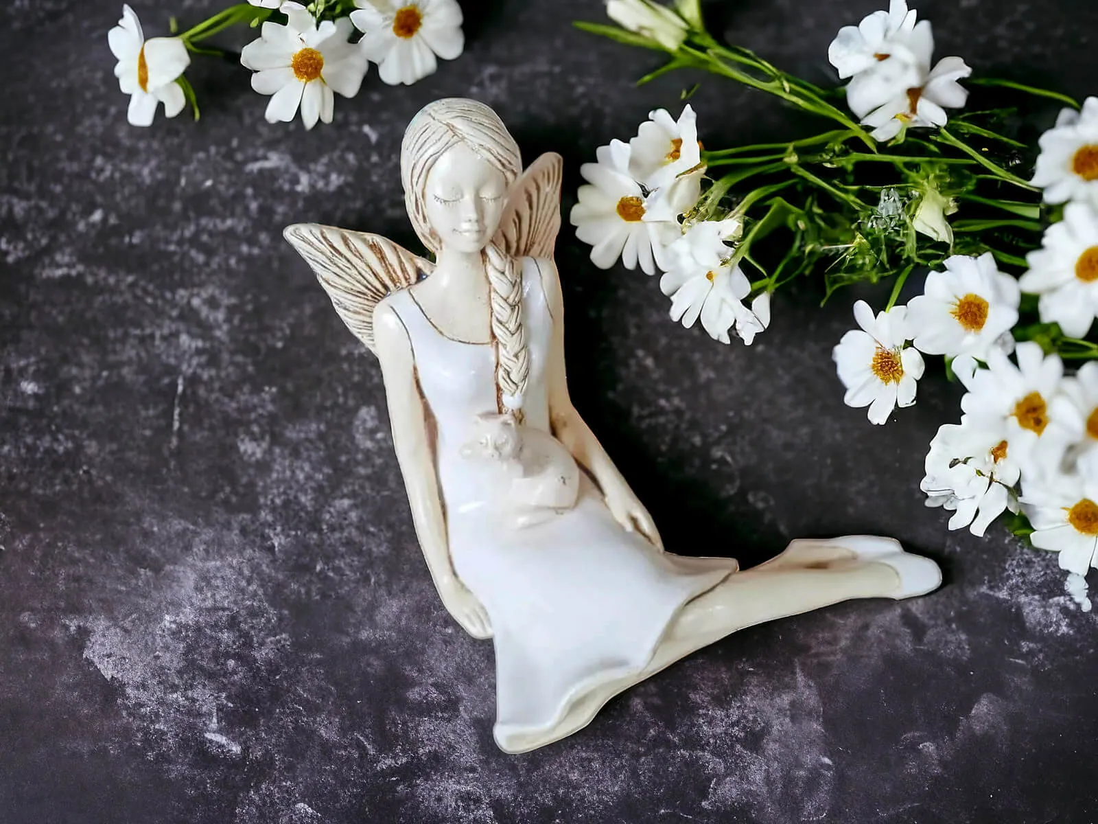 Anioł Matilda to ręcznie wykonana figurka. Matilda jest skromną, delikatna dziewczyną. Lubi naturę, dlatego codziennie wybiera się w ustronne miejsca na odpoczynek. Każdy ją może spotkać siedzącą na łące wśród polnych kwiatów. Jest ubrana w zwiewną, zieloną sukienkę. Włosy ma splecione w warkocz. Jest doskonałym prezentem dla dziewczynek i kobiet. Świetnie wkomponuje się w każde wnętrze.