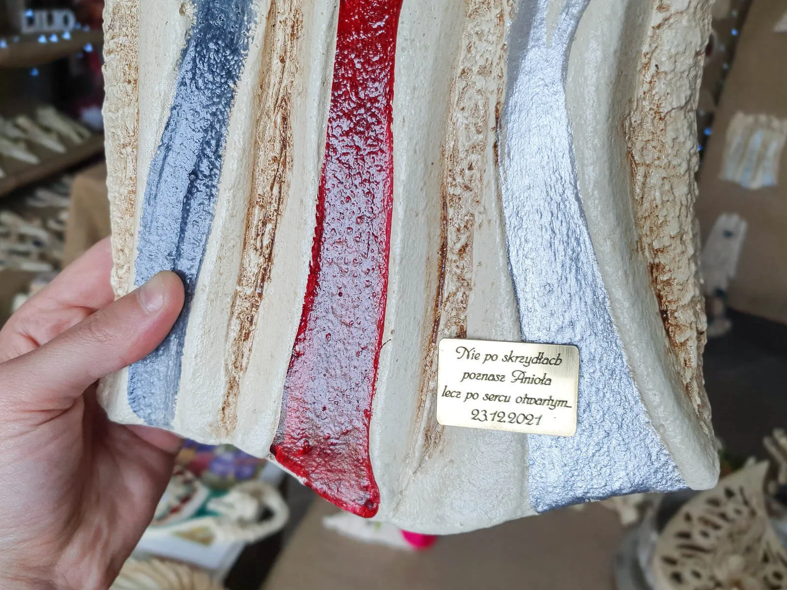 Dodatkowo aniołom można nadać osobisty charakter poprzez grawer. Grawer może być z przodu lub z tyłu anioła.