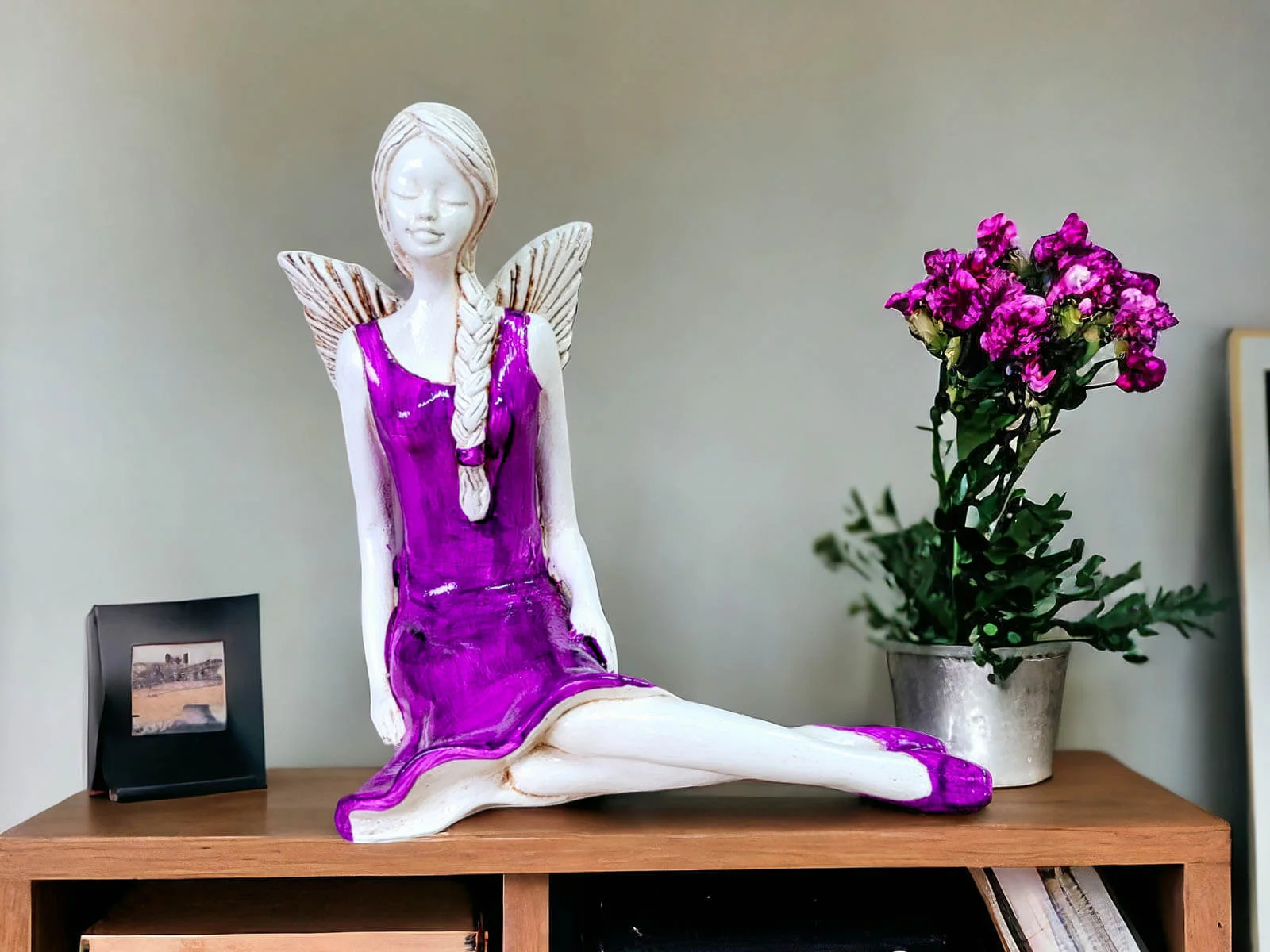 Anioł Matilda to wyraz nie tylko artystycznego piękna, ale także duchowej inspiracji. Wykonana z precyzją i dbałością o najdrobniejsze detale, jej ręcznie malowane odcienie fioletu przyciągają wzrok i tworzą subtelną grę światła, która ożywia figurkę. Jest to idealna dekoracja na kominek, półkę lub komodę, gdzie jej obecność przynosi harmonię i spokój.