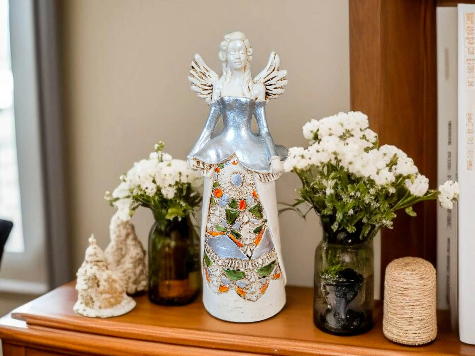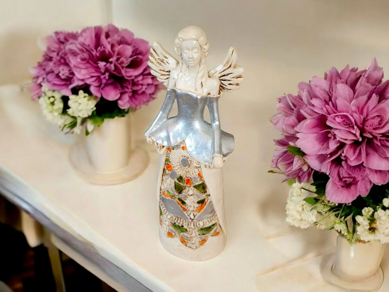 Anioł Anna – wyjątkowy prezent z przesłaniem. Wprowadź do swojego domu piękno, spokój i symboliczne wsparcie dzięki ręcznie robionej figurce anioła Anna. Ta elegancka dekoracja o wysokości 35 cm urzeka srebrną suknią z subtelnymi zielonymi zdobieniami, które przyciągają wzrok i dodają jej szlachetności.