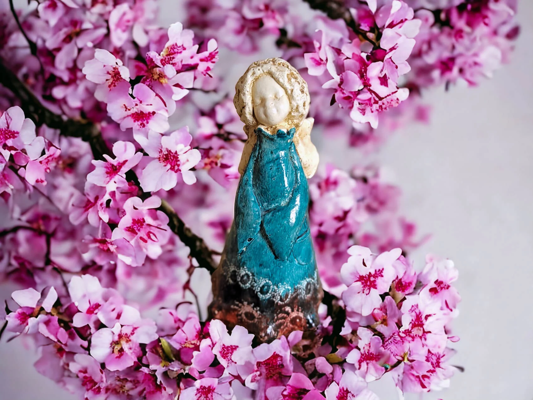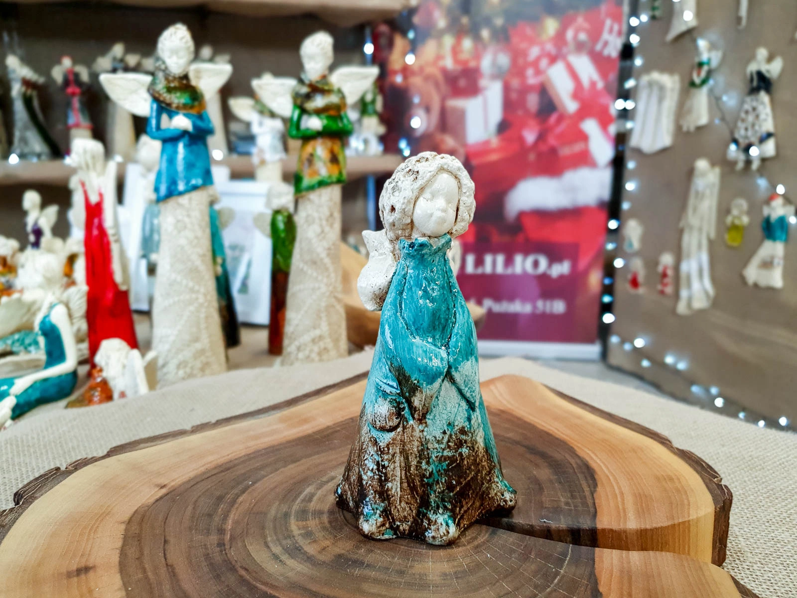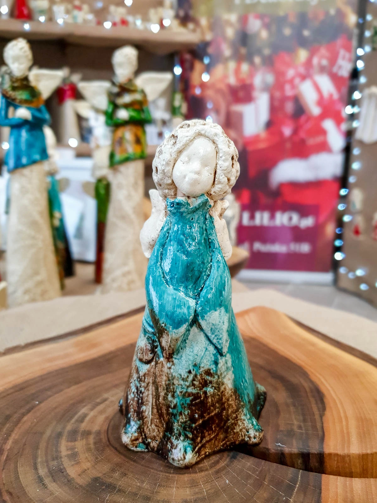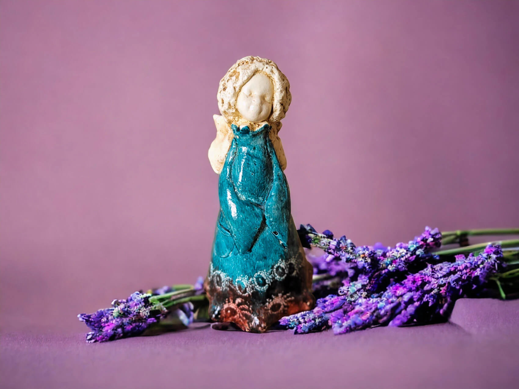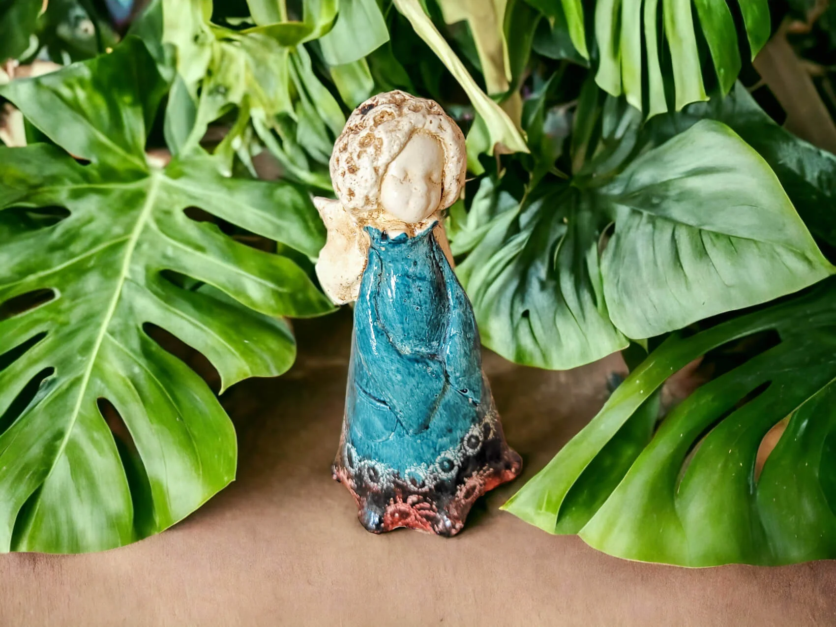 Słodka figurka aniołka MaryAnn w wersji turkusowo brązowej.