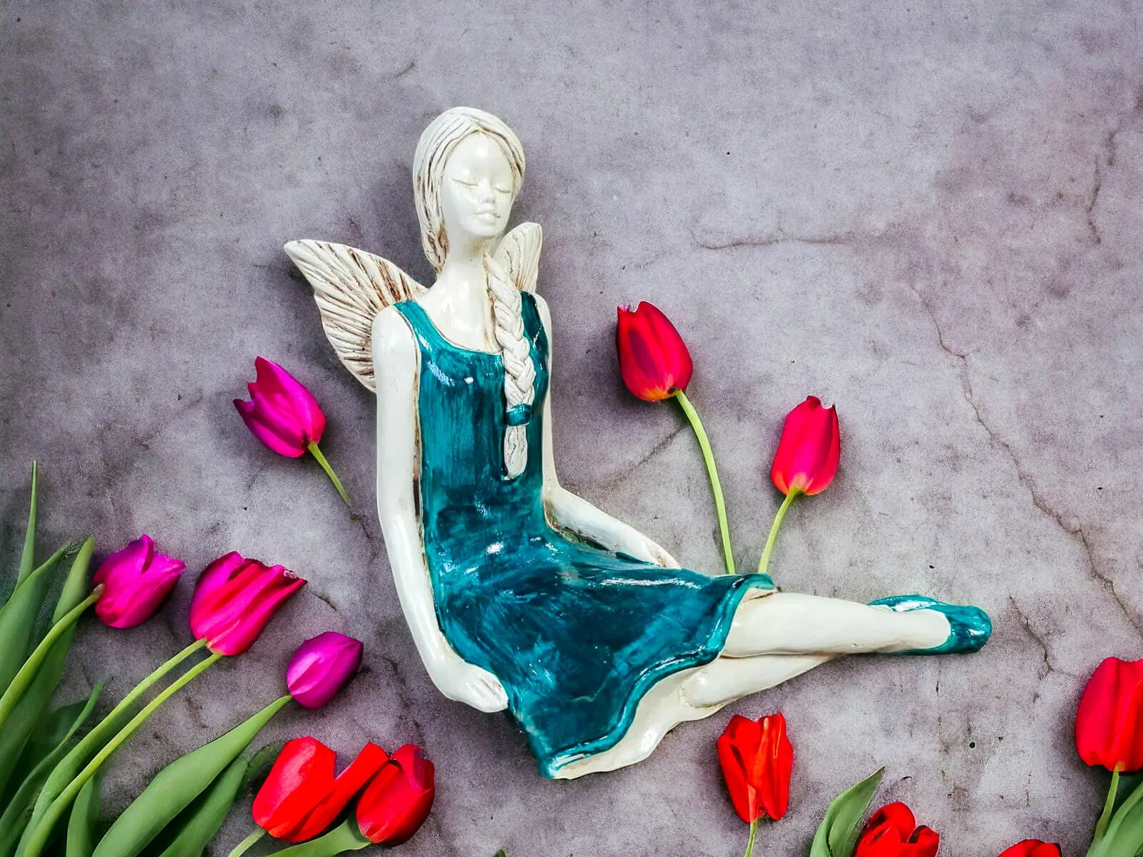 Ręcznie wykonany anioł Matilda w sukni w kolorze turkusu o ciemnym odcieniu. Matilda jest skromną, delikatna dziewczyną. Lubi naturę, dlatego codziennie wybiera się w ustronne miejsca na odpoczynek. Każdy ją może spotkać siedzącą na łące wśród polnych kwiatów. Jest ubrana w zwiewną, turkusową sukienkę. Włosy ma splecione w warkocz. Jest doskonałym prezentem dla dziewczynek i kobiet. Świetnie wkomponuje się w każde wnętrze.