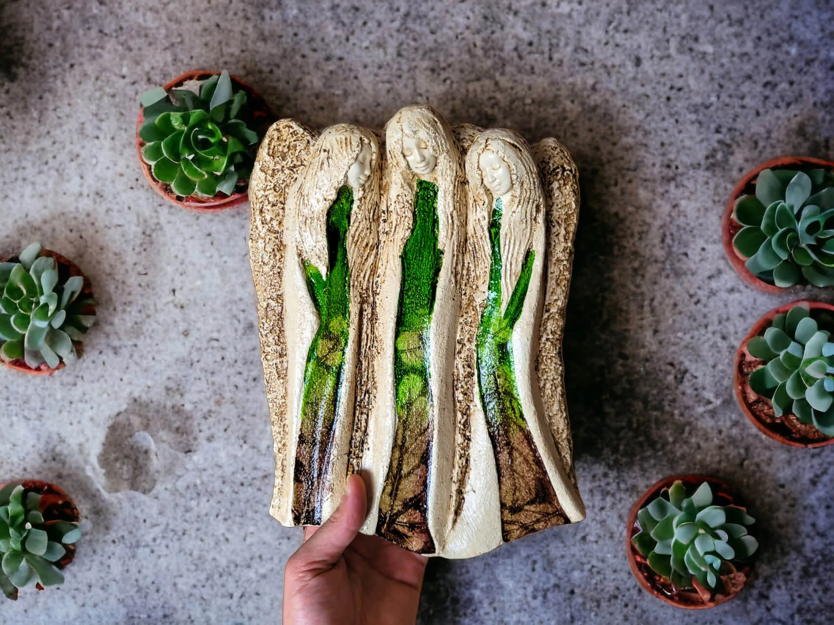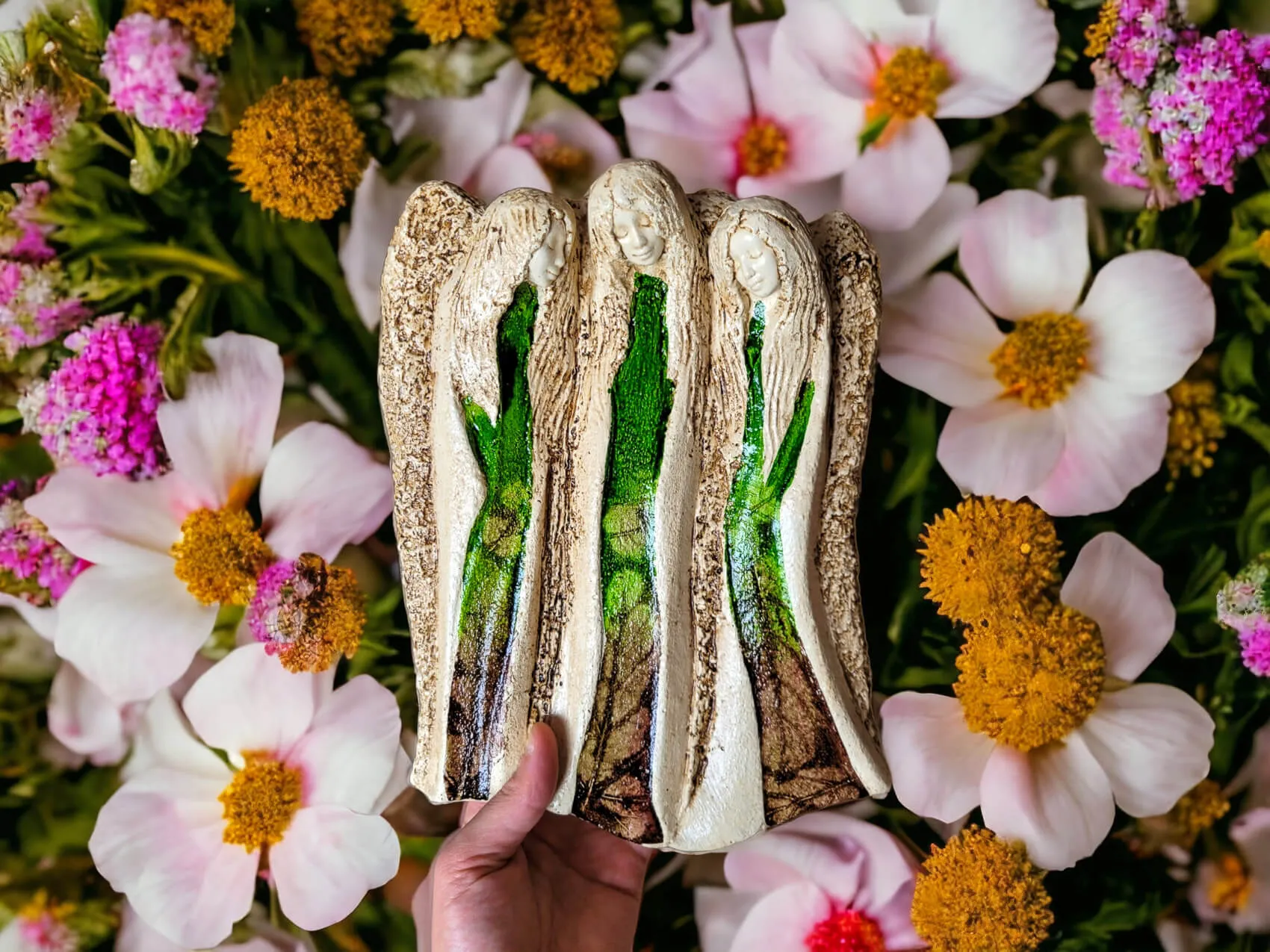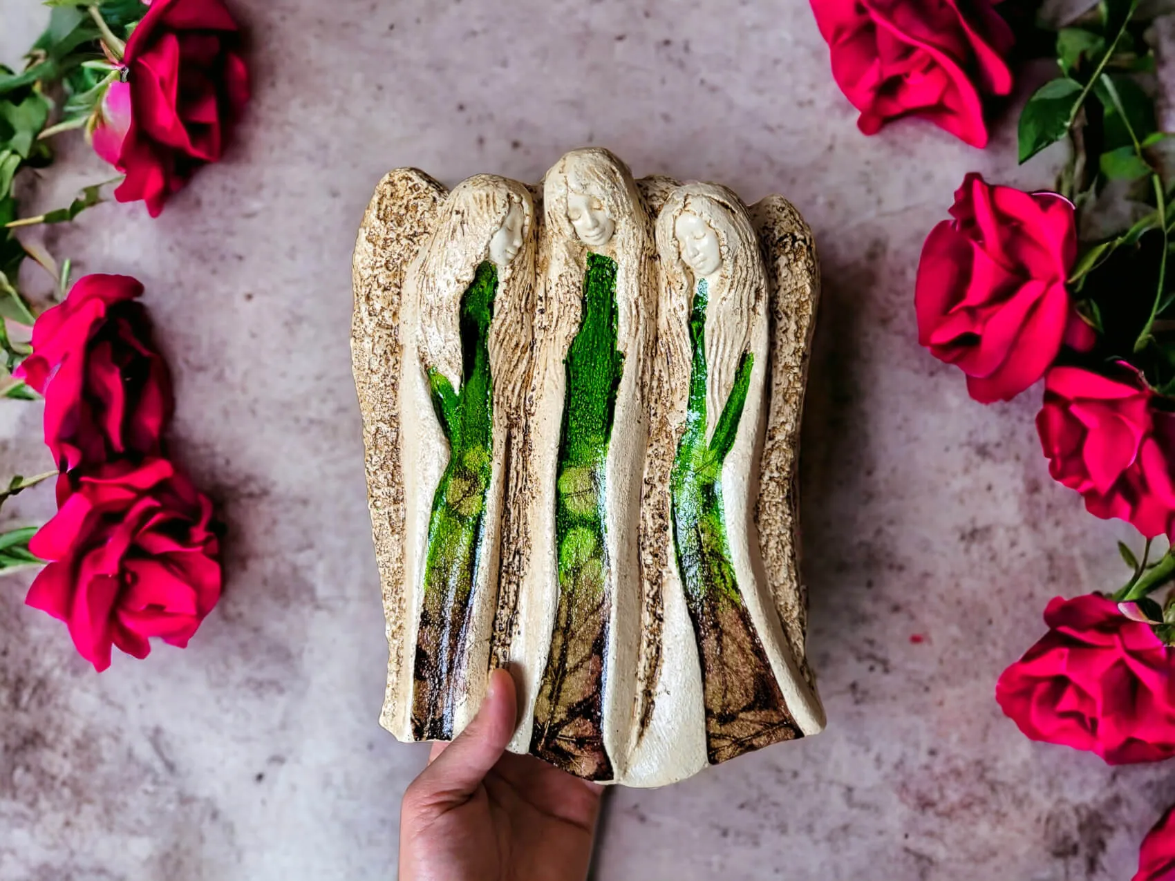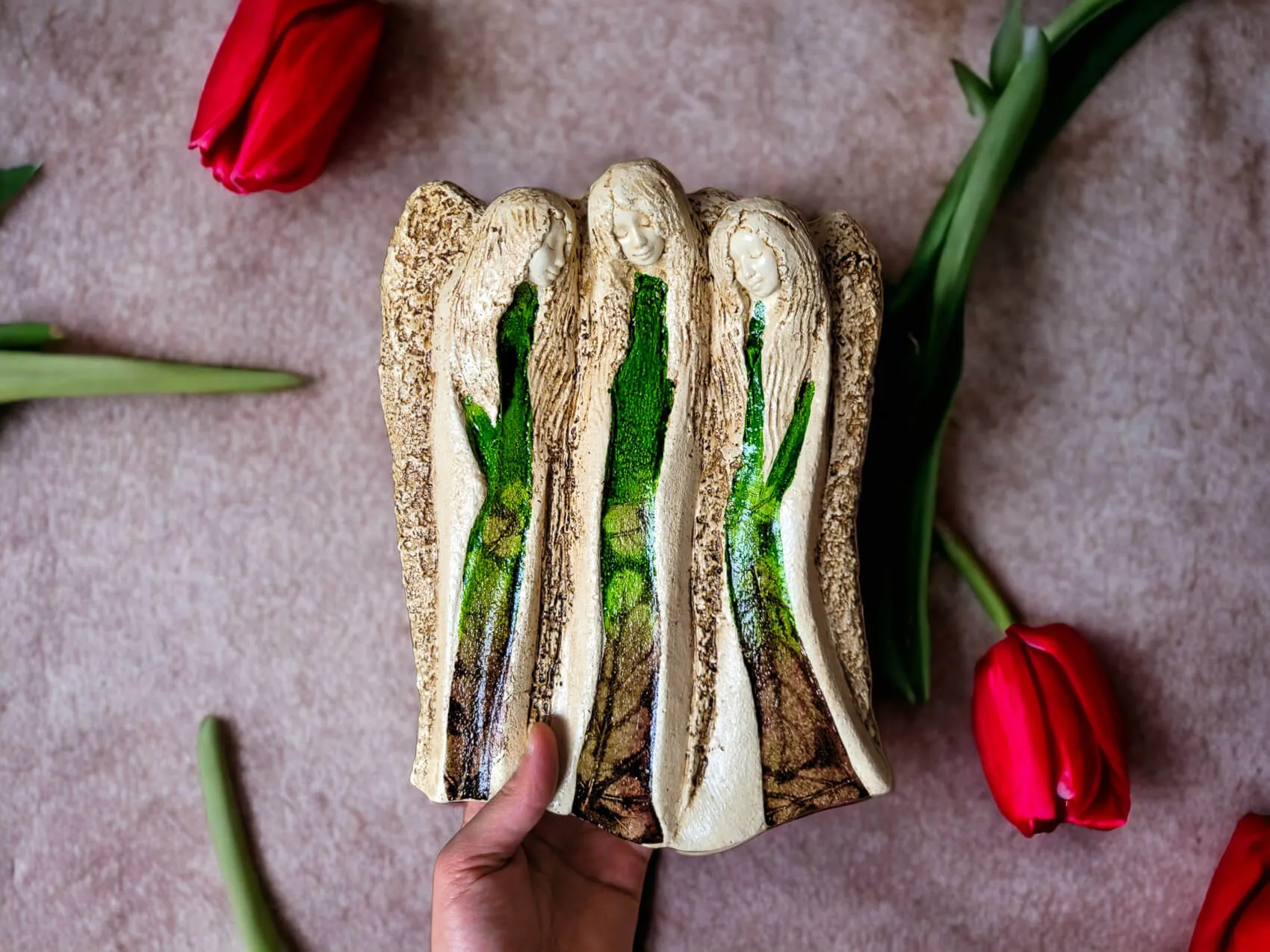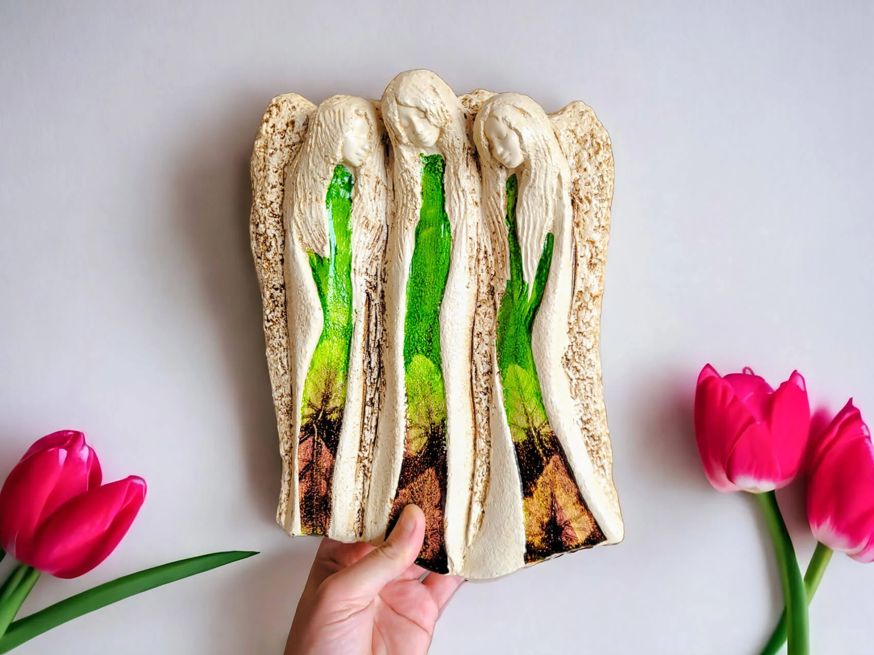 Anioły Wiara Nadzieja Miłość w kolorze zielonym. Idealne na prezent na każdą okazję. Anioły przynoszą wiarę że będzie lepiej oraz nadzieję na zmianę, ku dobremu. Anioły również wnoszą do życia miłość, której nigdy nie ma za dużo. To nasze ulubione anioły, które zawsze wybieramy kiedy chcemy wesprzeć licytację charytatywną.