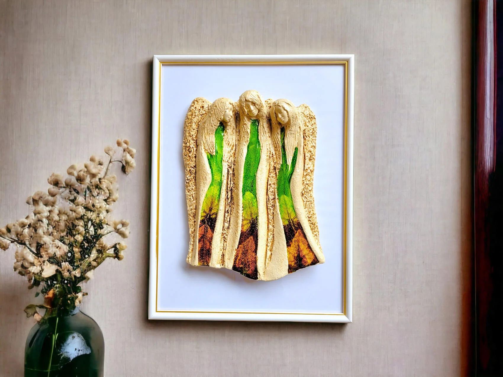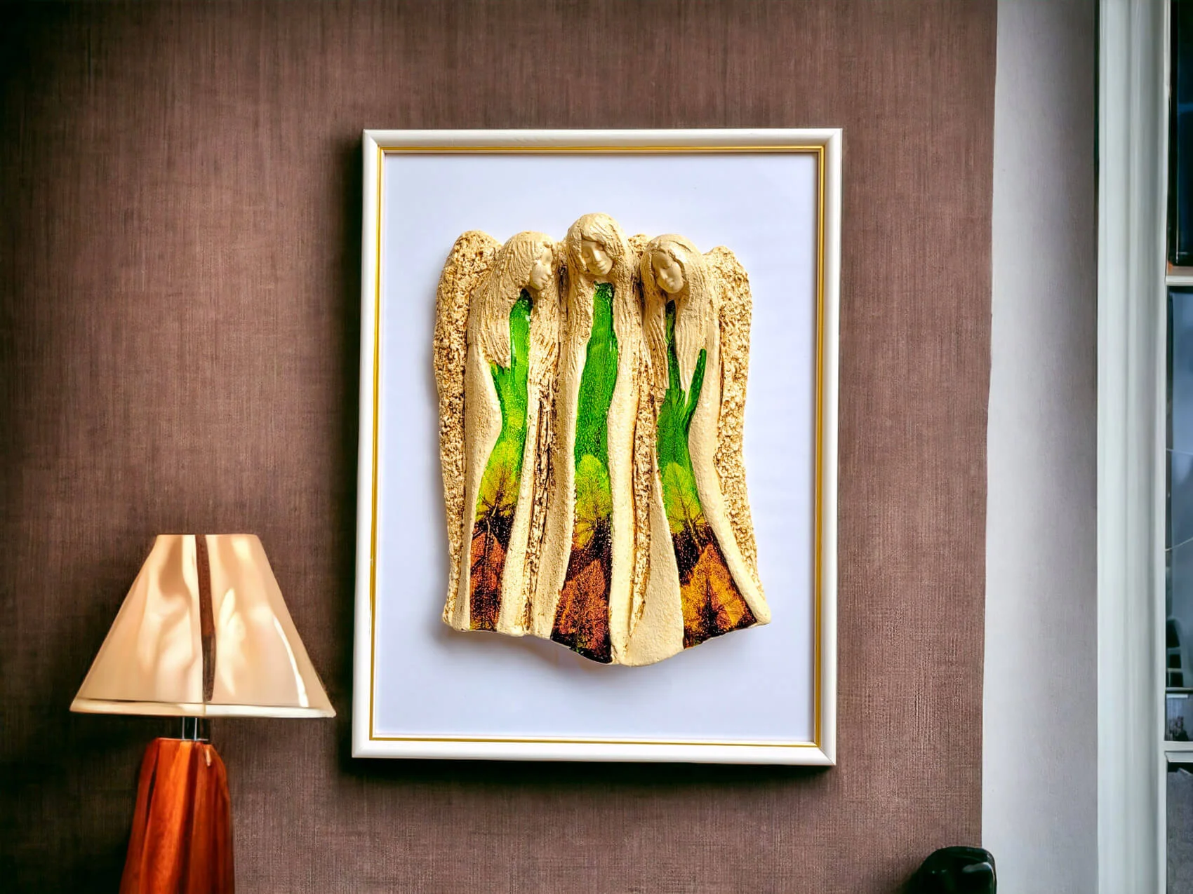Po zaznaczeniu tej opcji anioł zostanie przyklejony do szyby eleganckiej, drewnianej ramki bardzo mocnym, bezbarwnym klejem.W takiej wersji będzie prezentował się jeszcze bardziej elegancko.