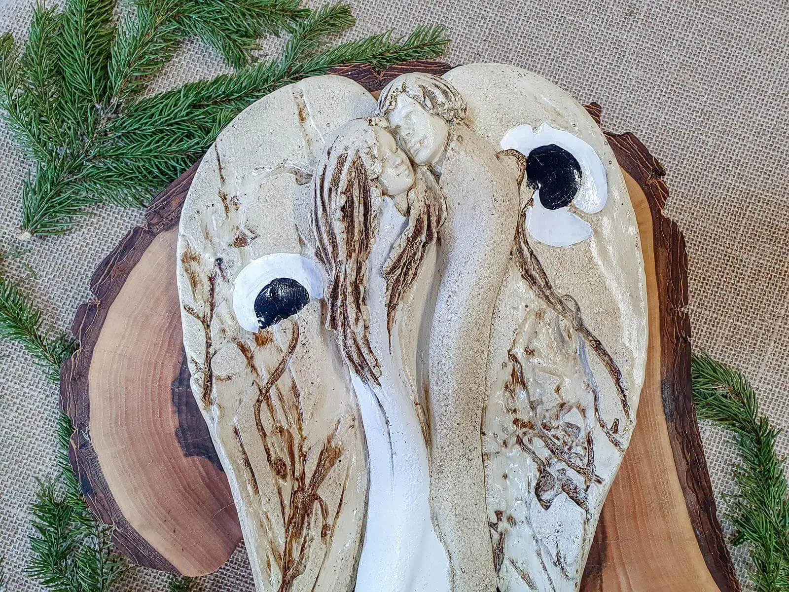Kochające anioły w biało beżowej wersji kolorystycznej. Anioły są ręcznie wykonane i ręcznie malowane. Anioły w objęciu tworzą jedność, są połączone miłością. Figurka idealnie nadaje się na prezent ślubny dla młodej pary, rocznicę ślubu i inne ważne wydarzenie. Anioły w rzeczywistości prezentują się dużo lepiej niż na zdjęciach, a obdarowane osoby z reguły są zachwycone z prezentu. Tutaj przeczytasz więcej o harmonii Yin Yang.