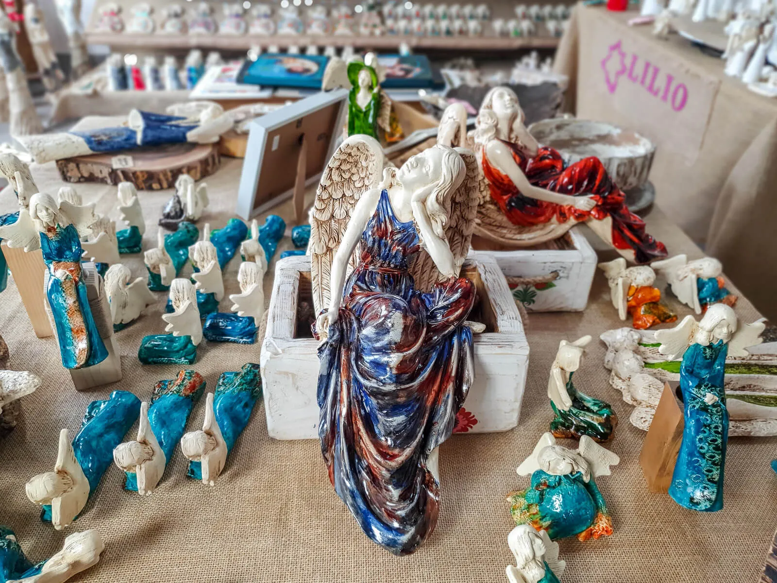 Figurka anioła od Świętej Rity w kolorze granatowo brązowym. Jak mówi legenda za każdym razem gdy Święta Rita modliła się do Boga z nieba schodził Anioł. Święta Rita to protektorka wszystkich zmartwień i trosk. Jest to Anioł romantyczny i delikatny, który pomaga w sprawach trudnych a nawet beznadziejnych.