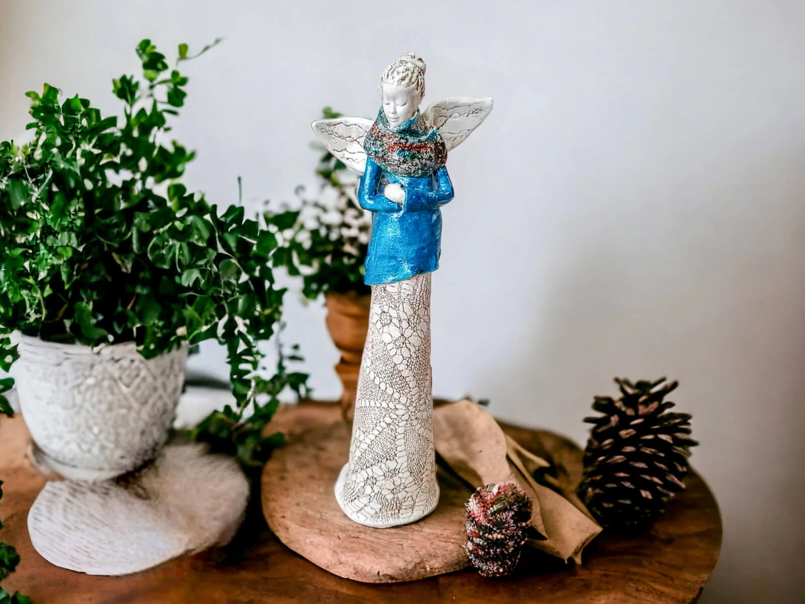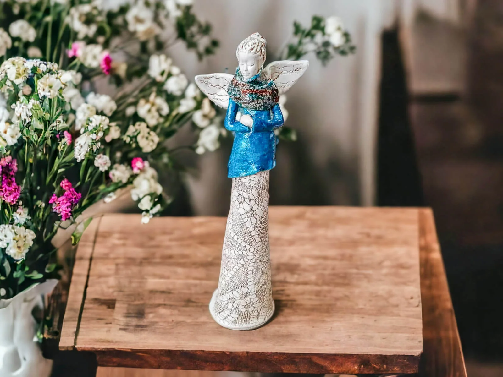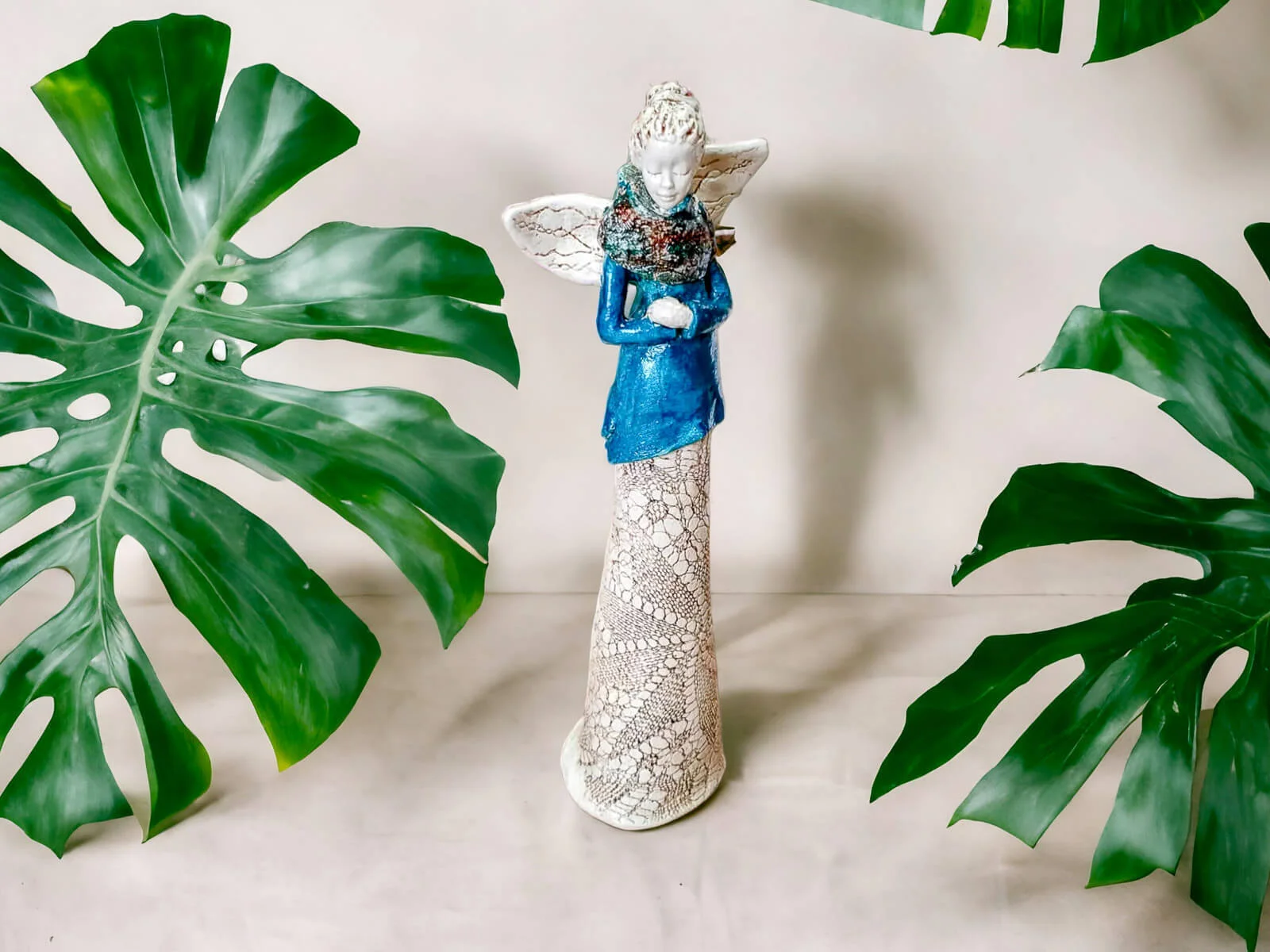 Anioł Catherine w turkusowej sukni. Kasia to kobieta pełna wdzięku i klasy. Urok Catherine kryje się w jej nieśmiałości - spuszczony wzrok świadczy o zawstydzeniu spojrzeniami, które ściąga na siebie anielskim blaskiem. Figura pięknie zaprezentuje się w salonie i z pewnością wywoła uśmiechy na twarzach Twoich gości.