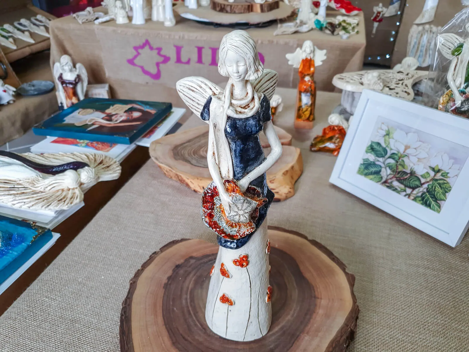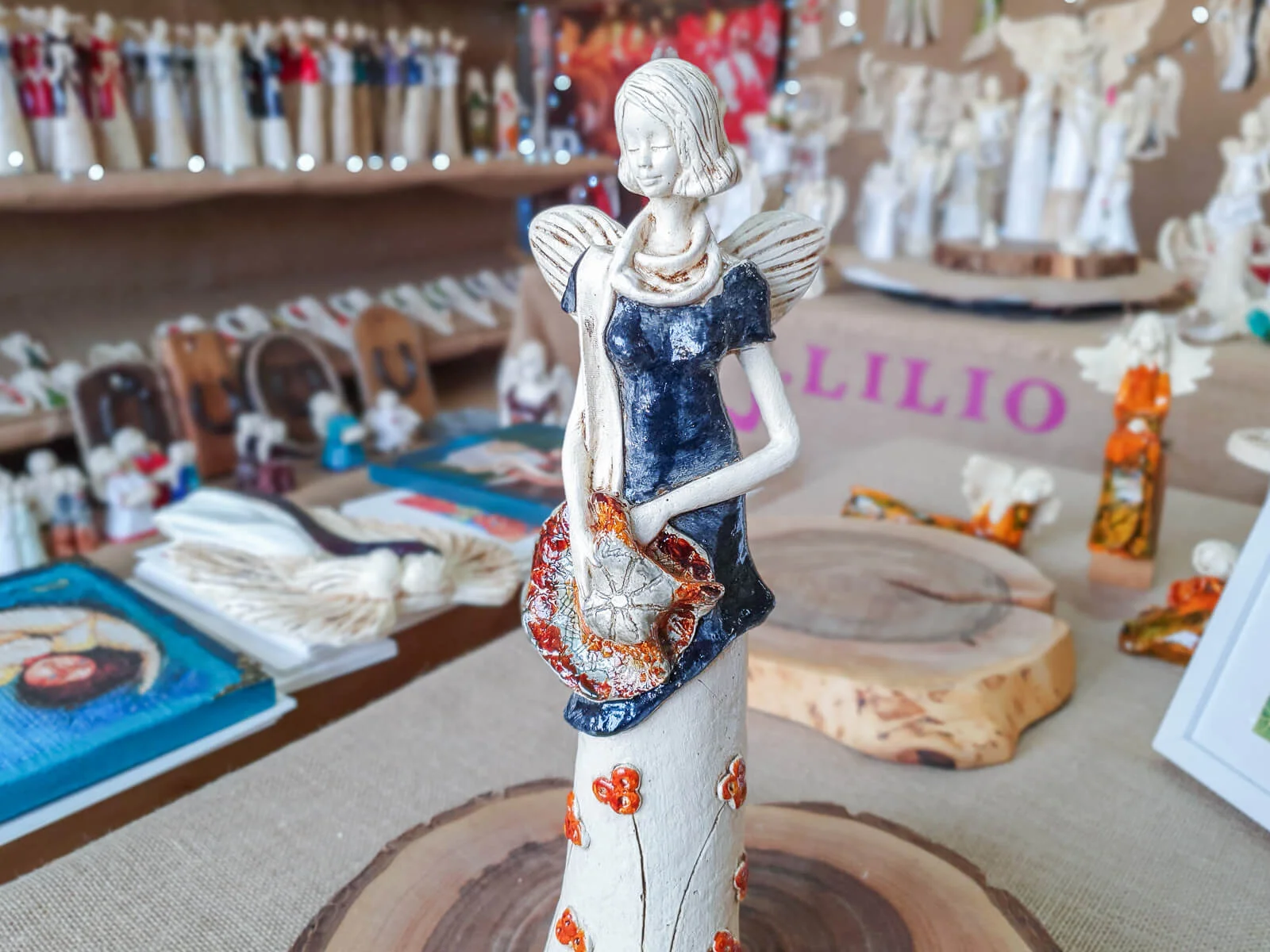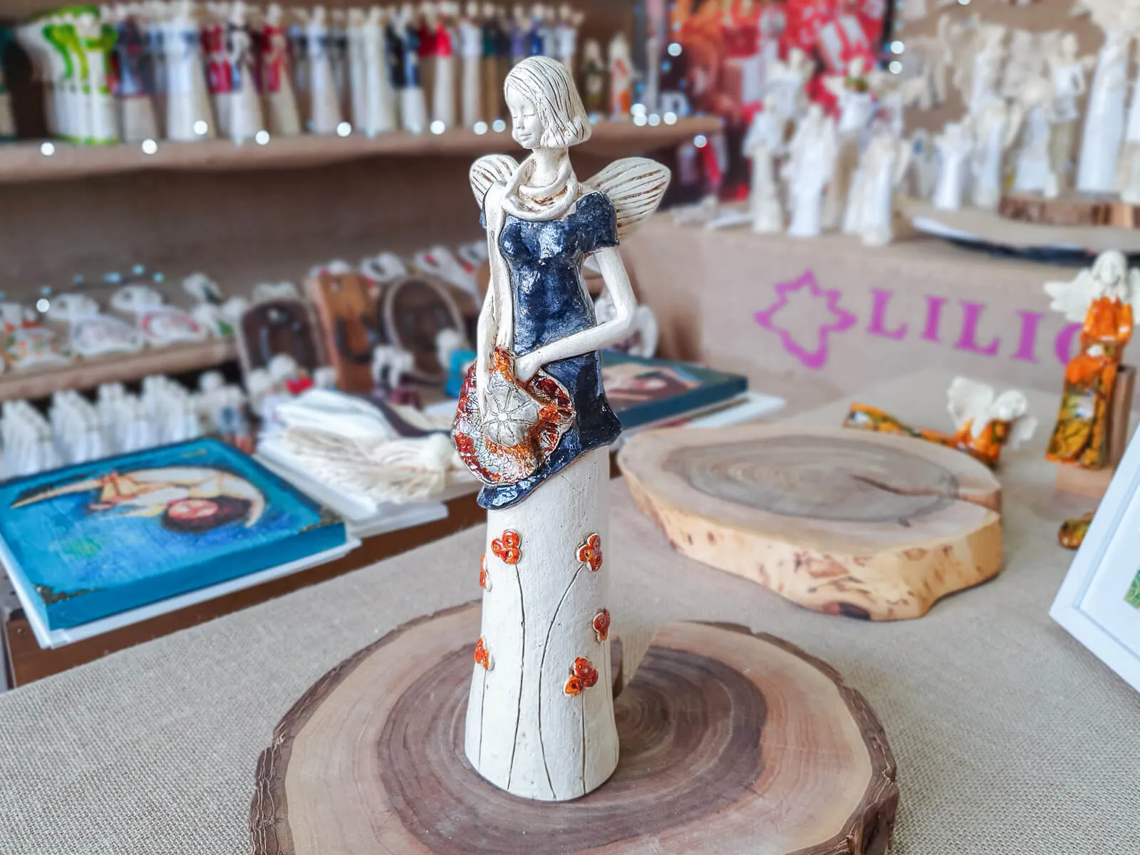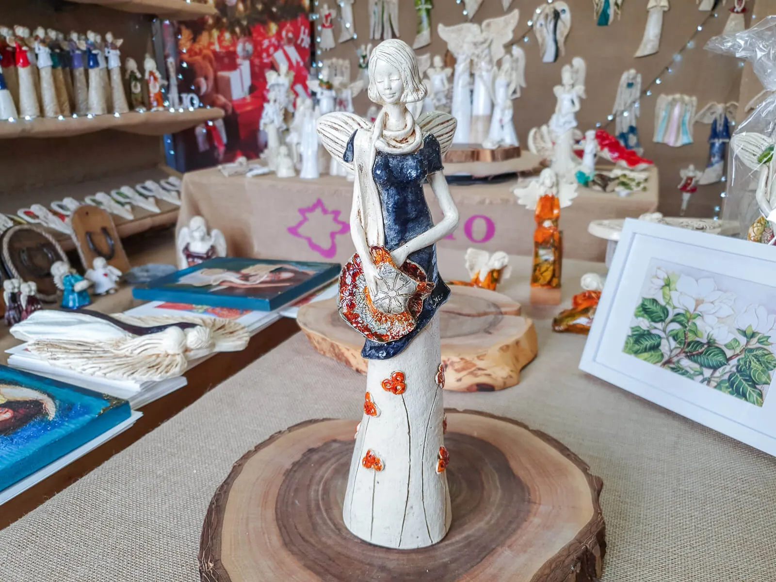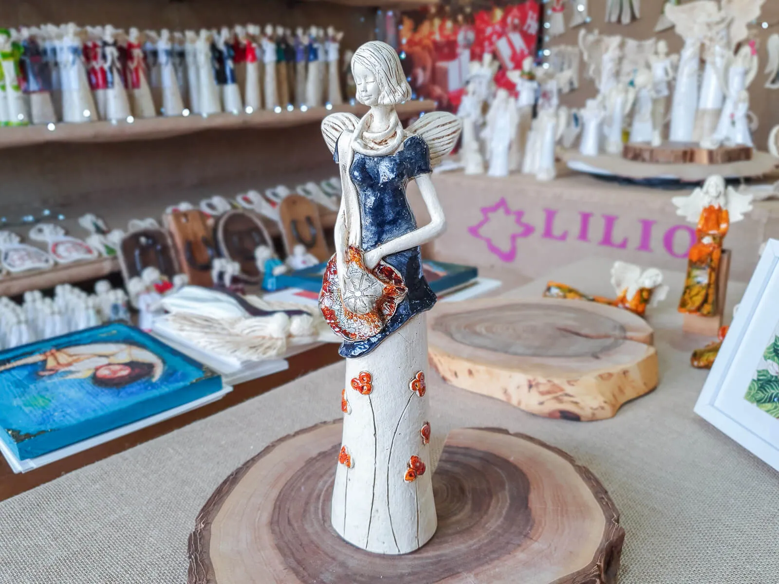 Anioł Sunday Rose w granatowej sukni idealna jako ozdoba mieszkania lub prezent dla kogoś bliskiego. Sunday jest towarzyska i optymistycznie nastawiona do życia. Cechuje ją ciekawość świata, ma w sobie wiele pasji i kocha zwierzęta. Czuje się najlepiej na łonie natury. Anioł Sunday Rose jest wyjątkową dekoracją, która urozmaici twoje wnętrze.