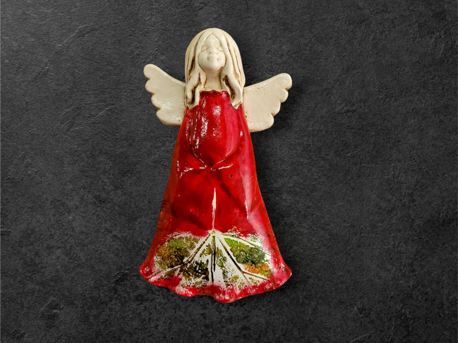 Anioł Monica w kolorze czerwonym z motywem kwiatu to ręcznie wykonana figurka do zawieszenia na ścianę. Monica jest uroczą dziewczynką, która kocha swoją rodzinę. Jest pełna ciepła, uroku. Swoją pogodą ducha obdarza każdego spotkanego na drodze przechodnia. Jest ubrana w czerwoną sukienkę. Kolor czerwony symbolizuje miłość i radości. Anieliczka idealnie sprawdzi się jako prezent pierwszokomunijny dla dziewczynki.