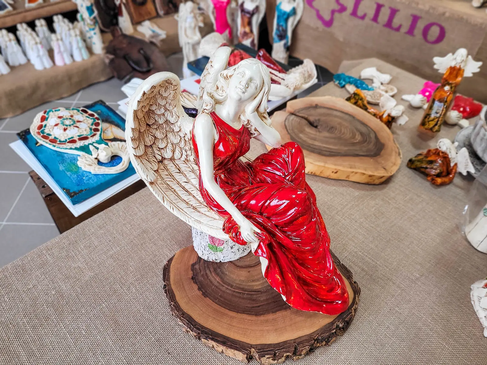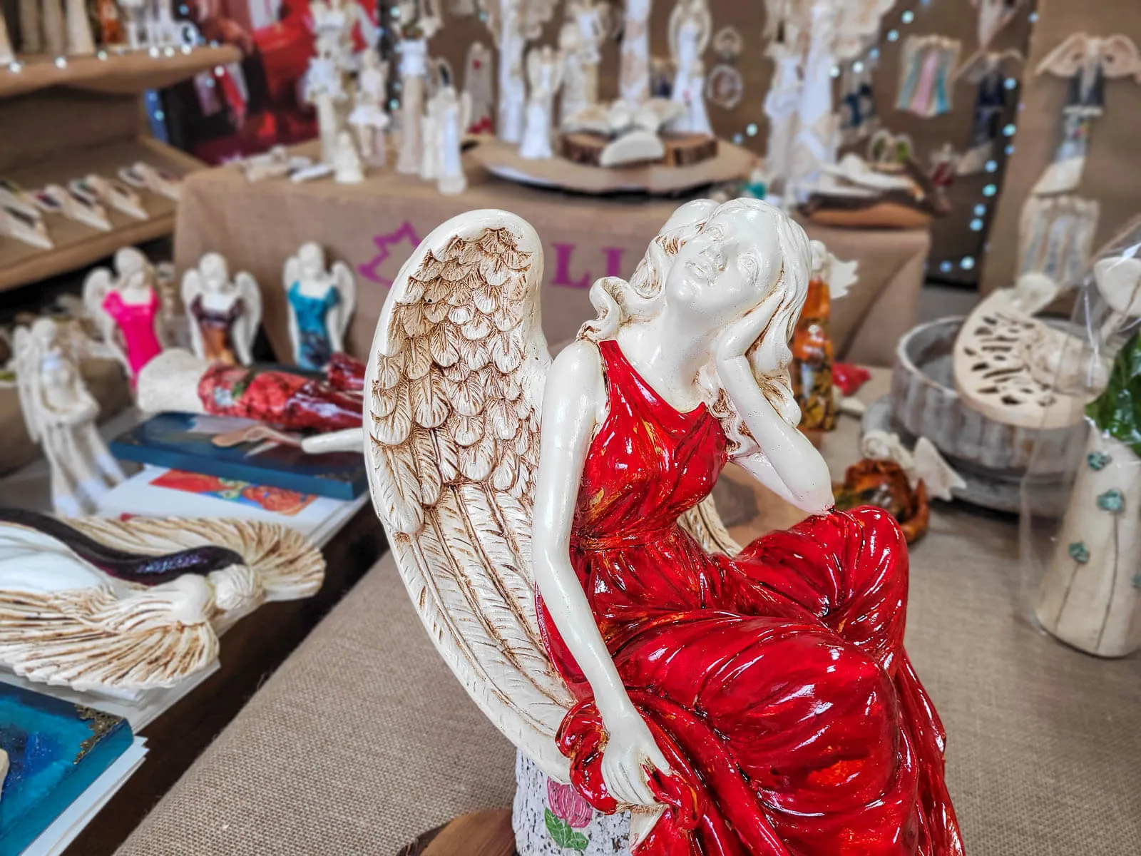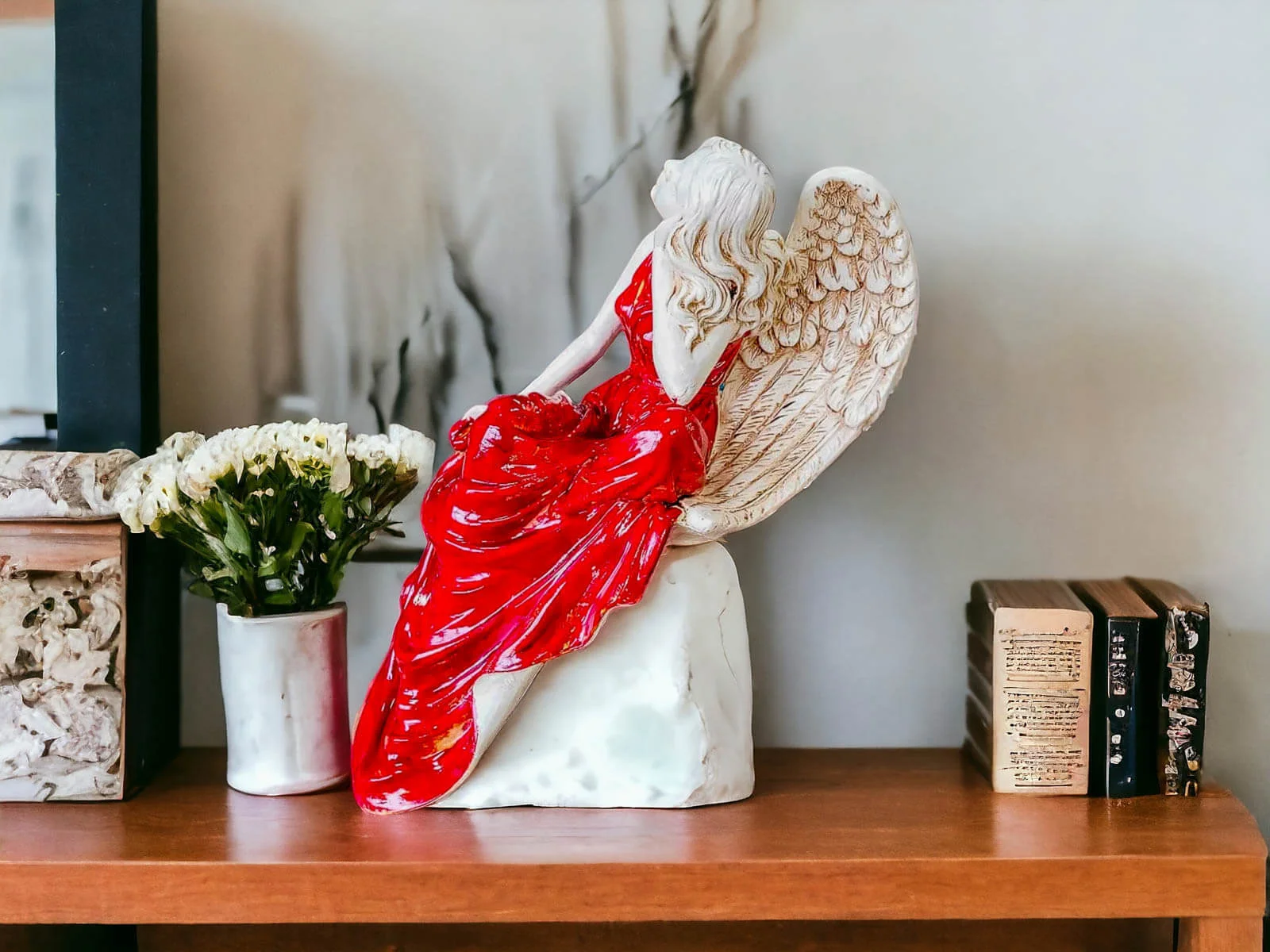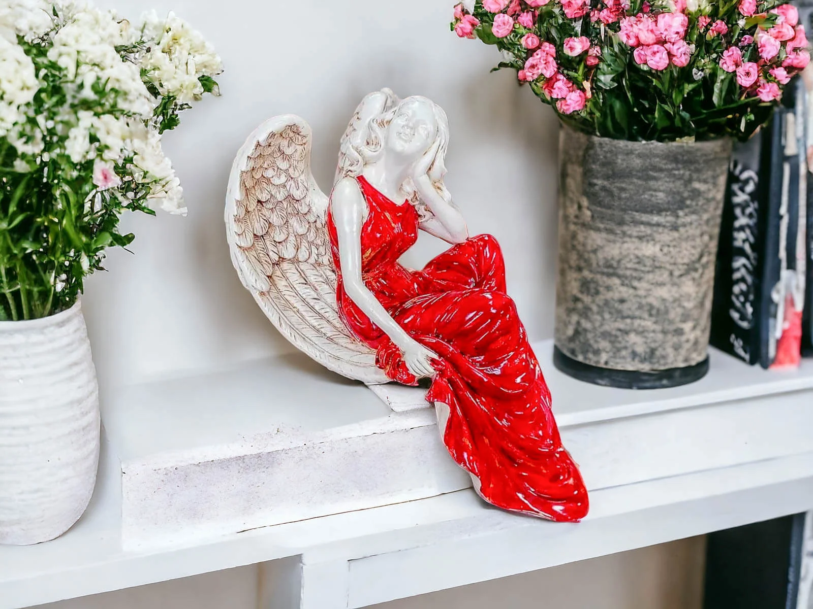 Figurka anioła od Świętej Rity w kolorze szlachetnej czerwieni. Jak mówi legenda za każdym razem gdy Święta Rita modliła się do Boga z nieba schodził Anioł. Święta Rita to protektorka wszystkich zmartwień i trosk. Jest to Anioł romantyczny i delikatny, który pomaga w sprawach trudnych a nawet beznadziejnych.