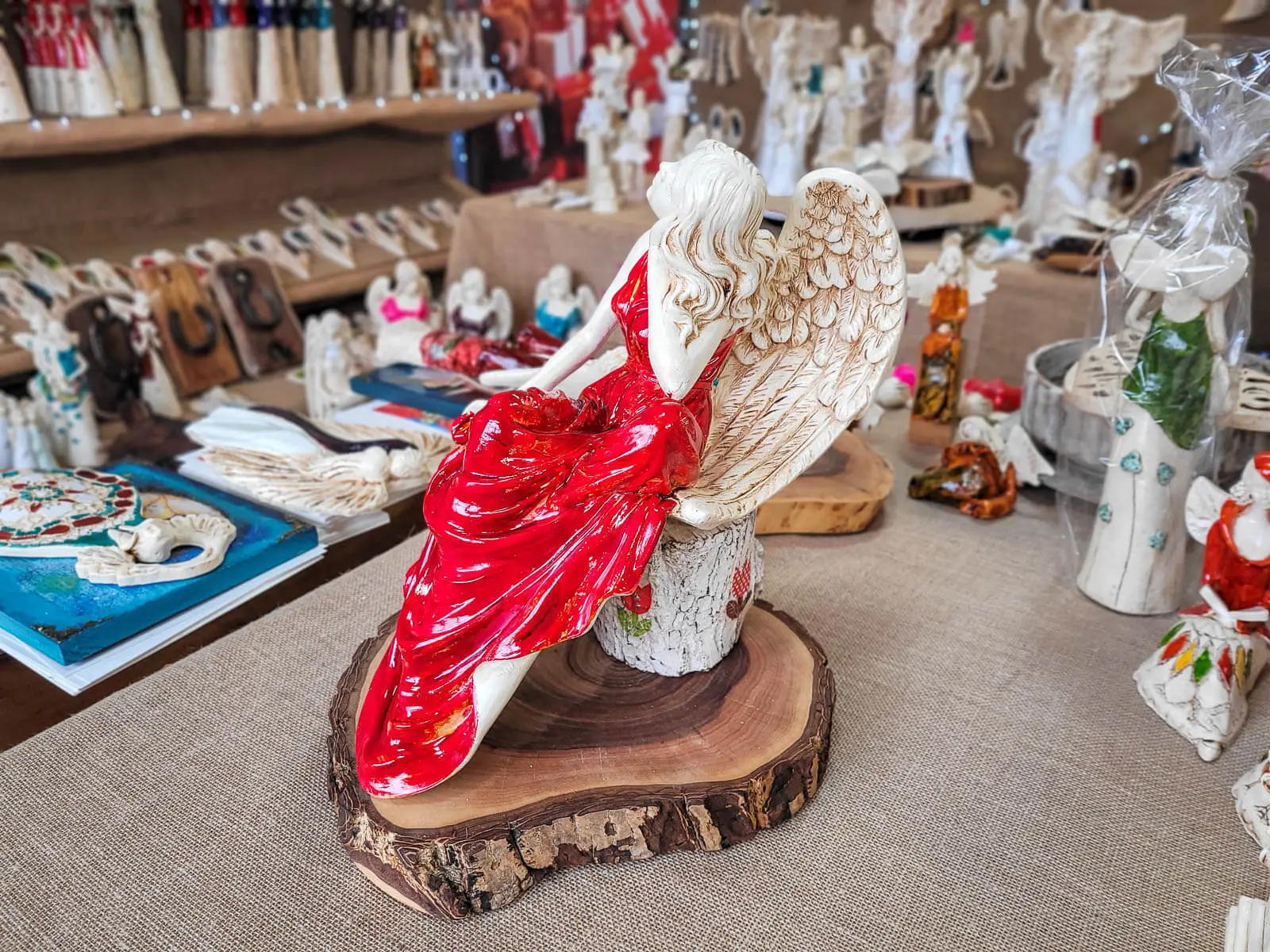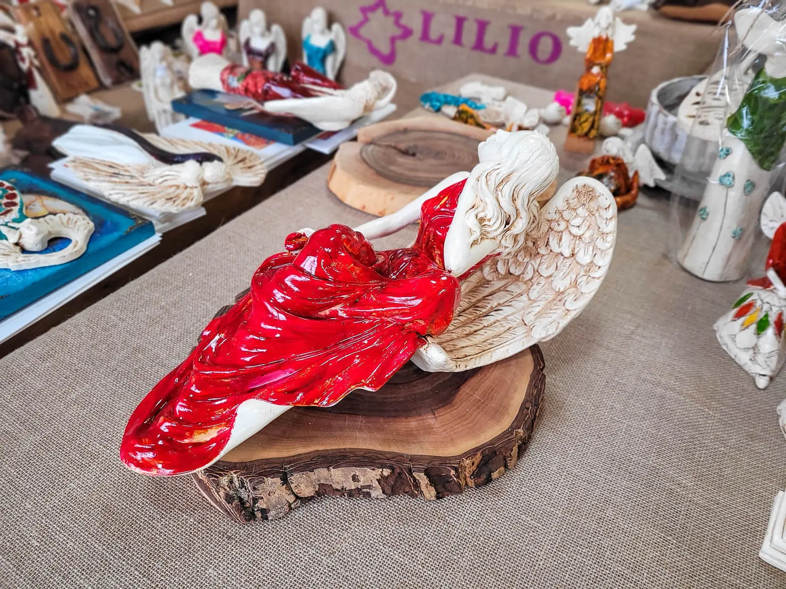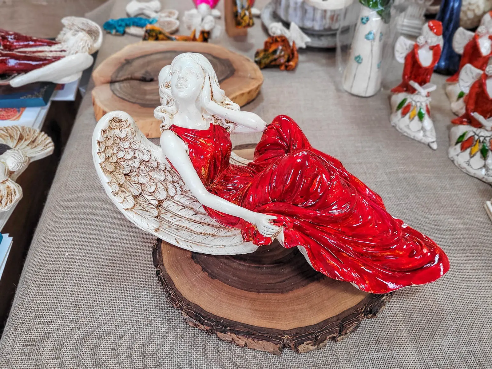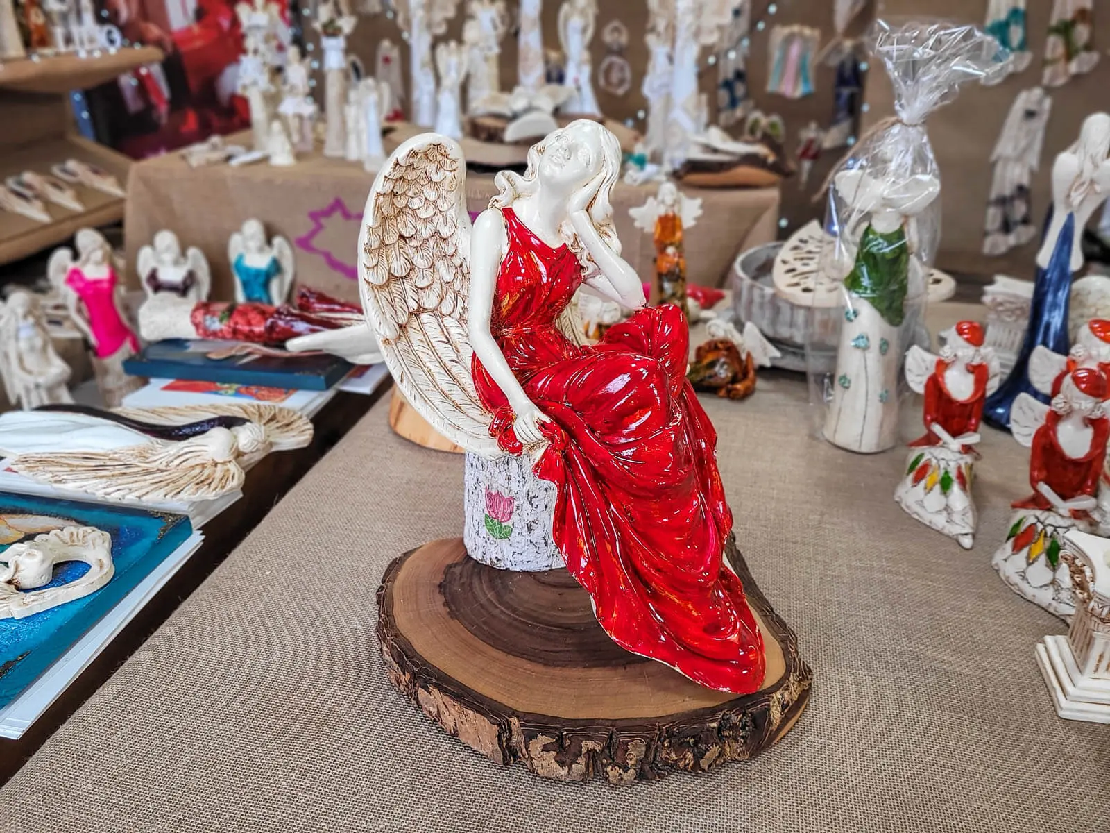 Figurka anioła od Świętej Rity w kolorze szlachetnej czerwieni. Jak mówi legenda za każdym razem gdy Święta Rita modliła się do Boga z nieba schodził Anioł. Święta Rita to protektorka wszystkich zmartwień i trosk. Jest to Anioł romantyczny i delikatny, który pomaga w sprawach trudnych a nawet beznadziejnych.