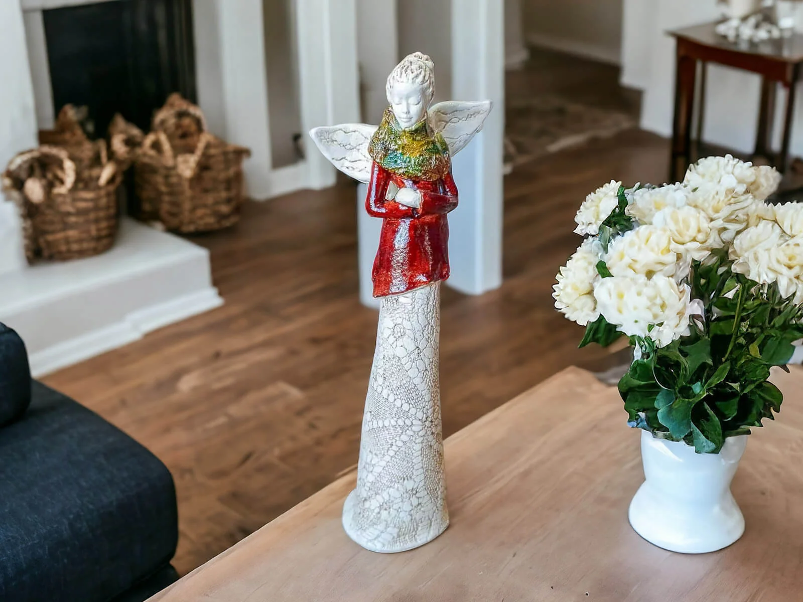 Anioł Catherine w brązowej sukni. Kasia to kobieta pełna wdzięku i klasy. Urok Catherine kryje się w jej nieśmiałości - spuszczony wzrok świadczy o zawstydzeniu spojrzeniami, które ściąga na siebie anielskim blaskiem. Figura pięknie zaprezentuje się salonie i z pewnością wywoła uśmiechy na twarzach Twoich gości.