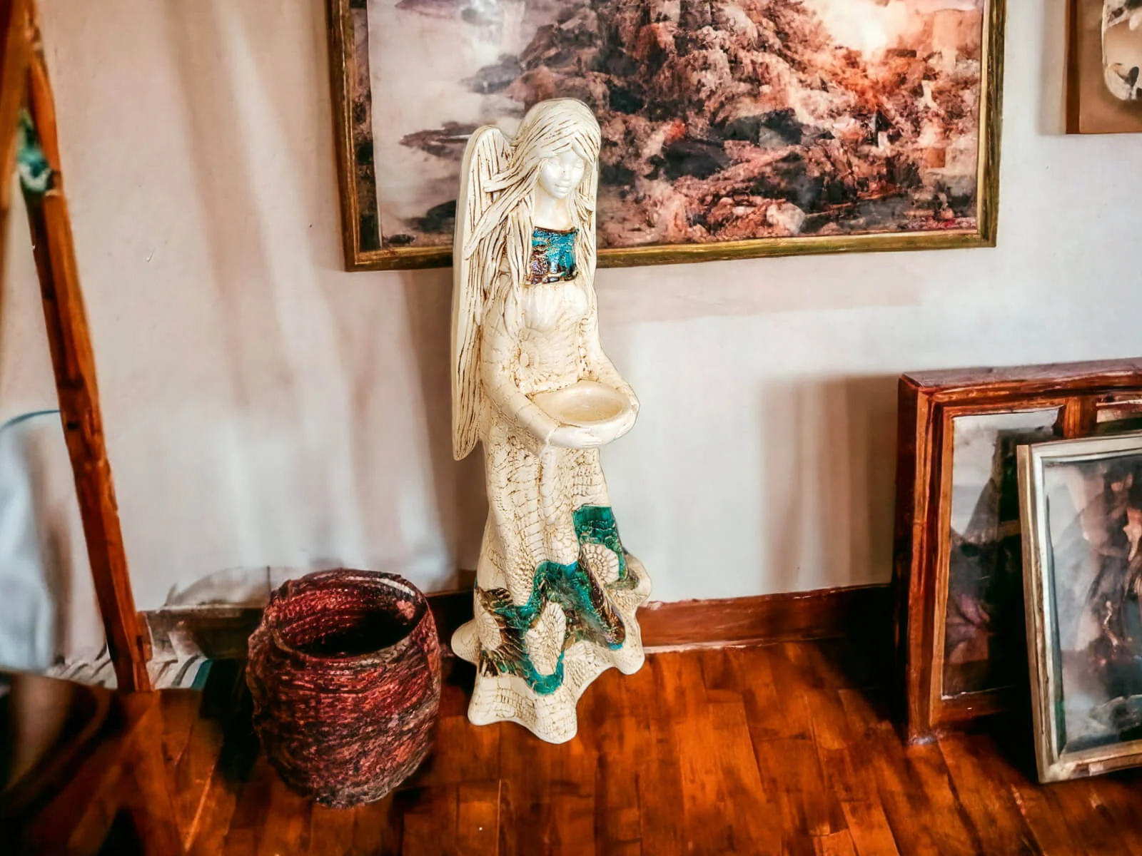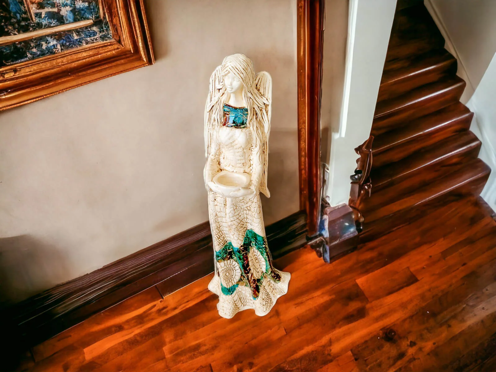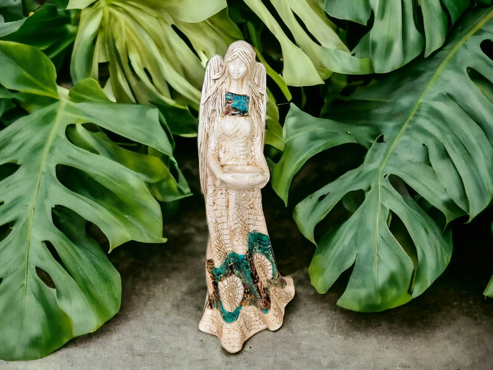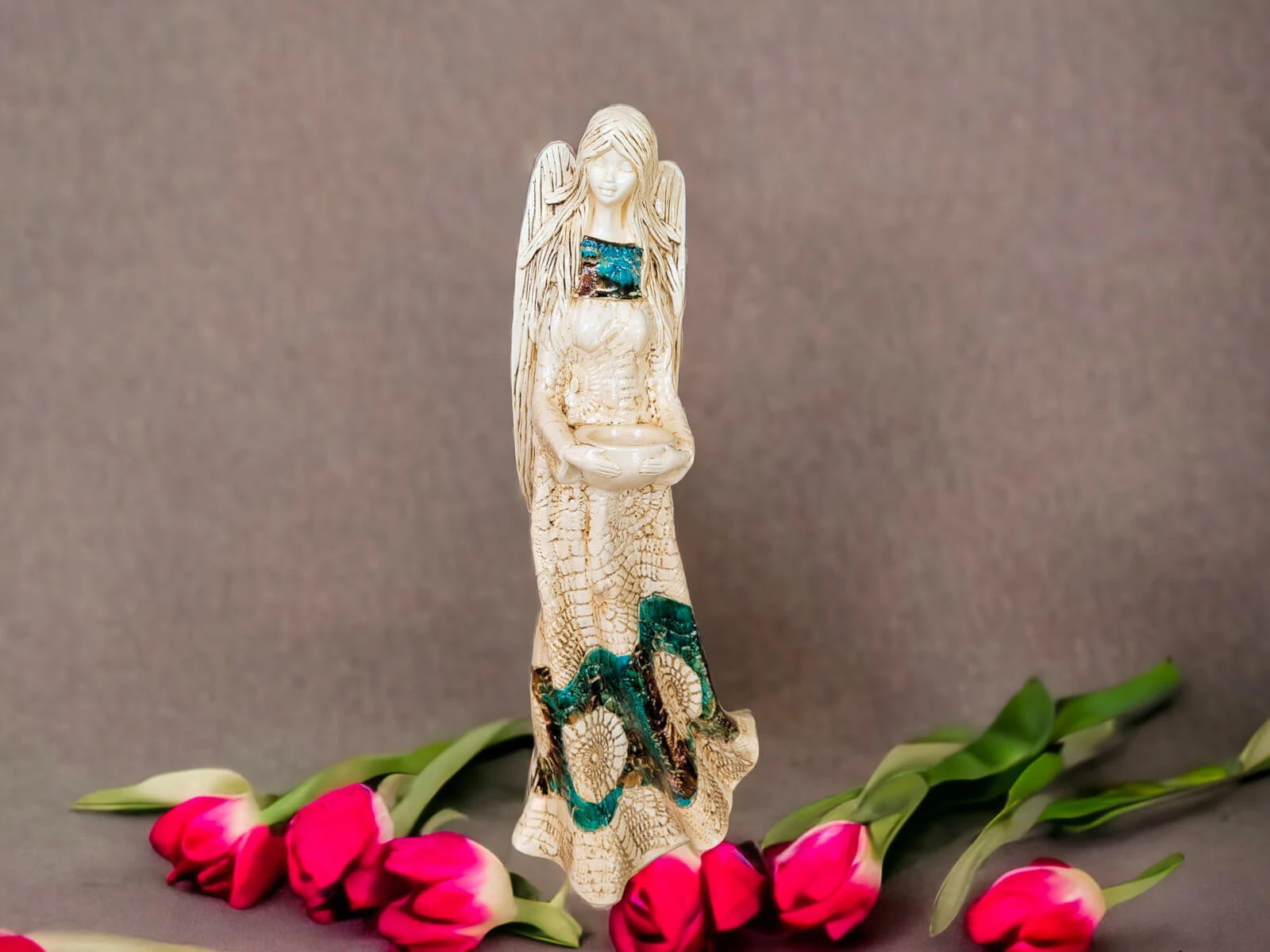 Anioł Genesis to ręcznie wykonana figurka w wersji stojącej w kolorze brązu i turkusu. Jego imię jest pochodzenia greckiego. Anioł jest pełen tajemnic. Cały swój czas poświęca sprawom społecznym. Potrafi każdemu udzielić pomocy i wsparcia. Troska o innych wypływa prosto z jej serca. Jest ubrany w zwiewną, beżową suknie z haftowanymi ornamentami. Z gracją eksponuje rozłożyste skrzydła. Figurka nadaje się na prezent na każdą okazję.