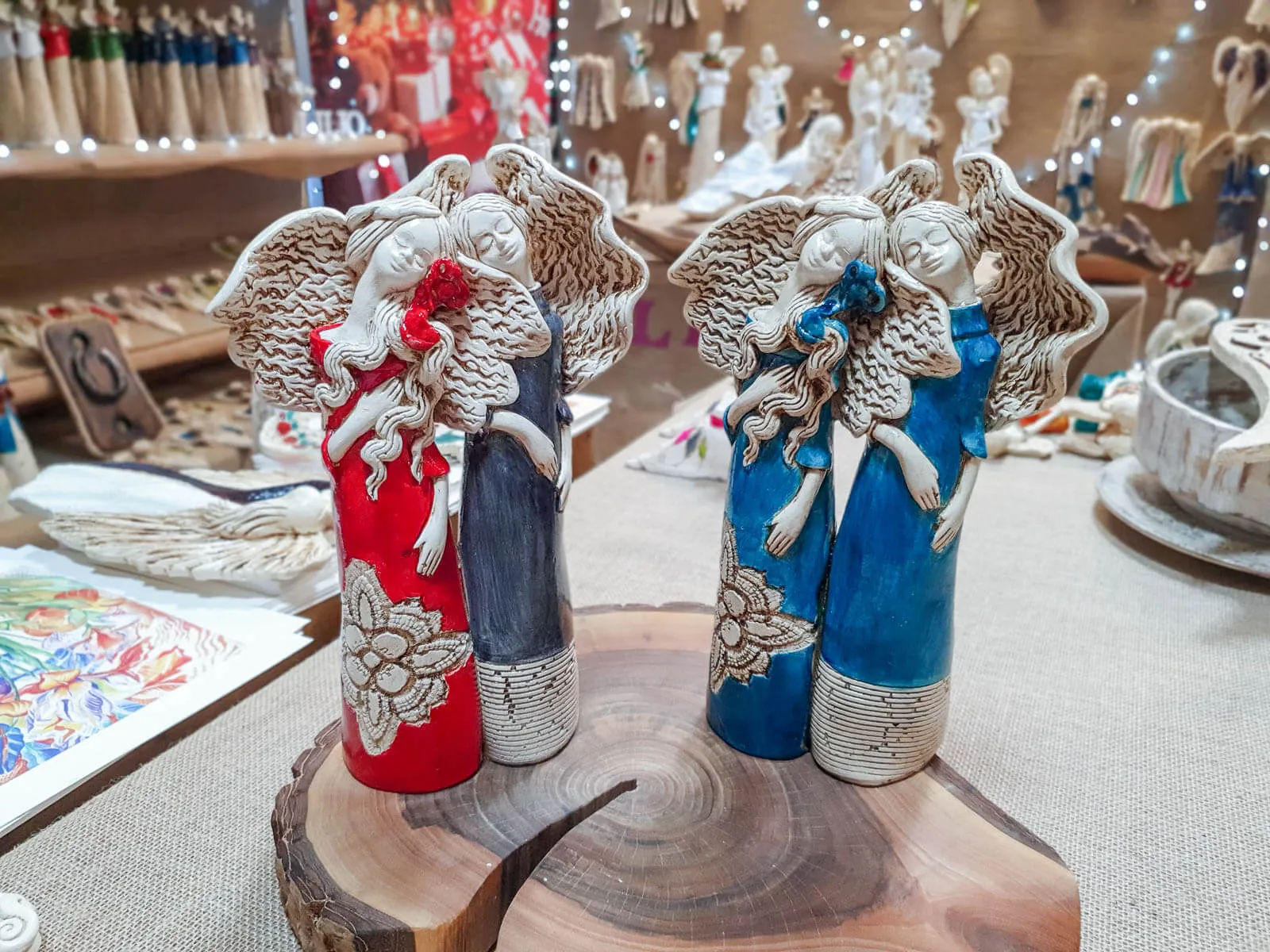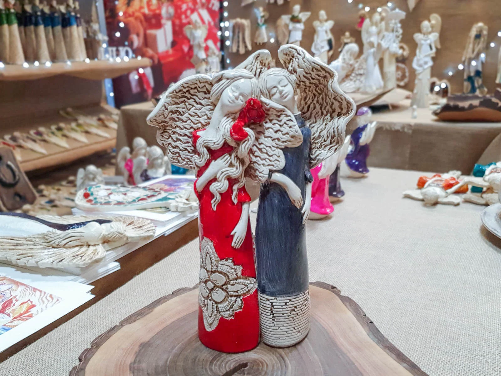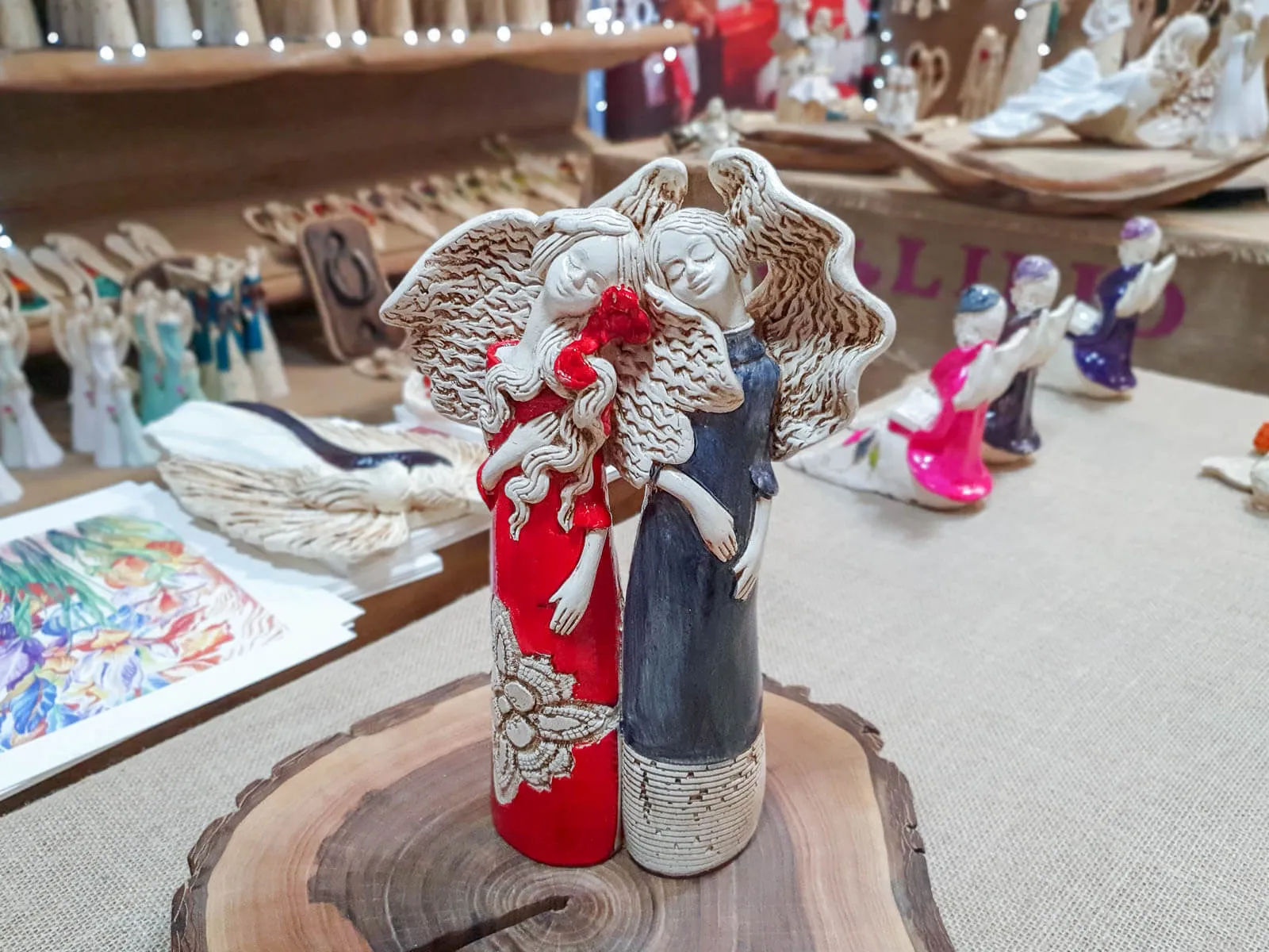 Czerwona Nora i szara Ellie to siostry, darzące się wzajemnie ogromną miłością. Kochają spędzać razem czas i nie mogłyby żyć oddzielnie. Dlatego właśnie figurka przedstawia je razem - wtulone w siebie celebrują chwile spędzane razem. Anioły ubrana są czerwoną i szarą suknię. Figura pięknie udekoruje salon, sypialnię czy przedpokój.