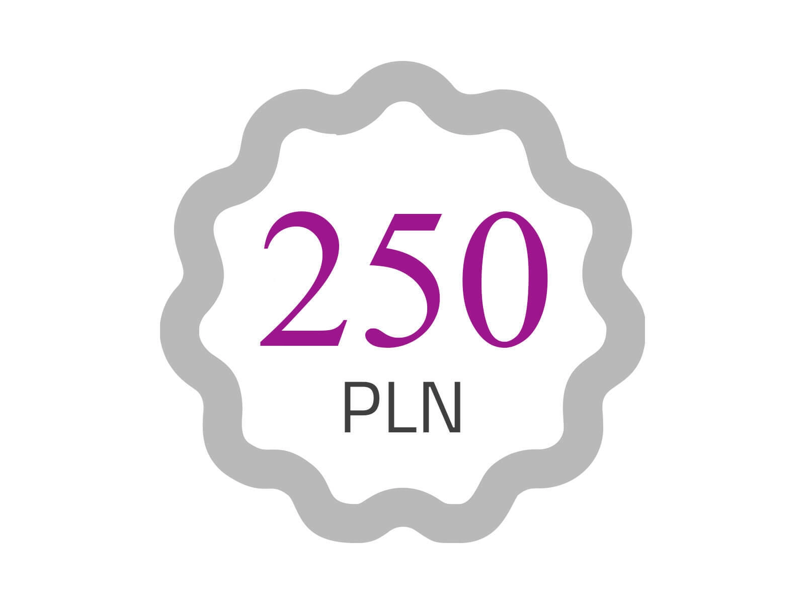 Karta podarunkowa o wartości 250 zł. Prosimy dodać produkt do koszyka i złożyć zamówienie. Po otrzymaniu płatności wyślemy kupon rabatowy o wartości 250 zł, który należy wprowadzić w koszyku.