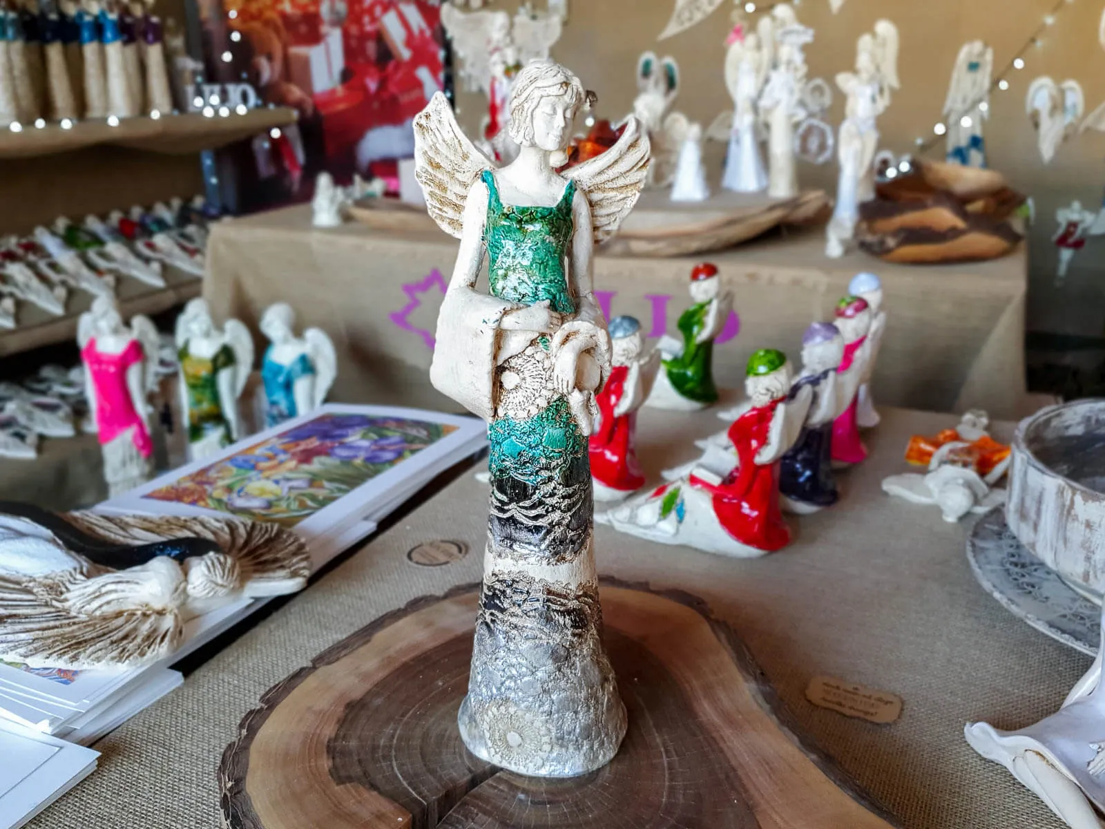 Anioł Frances w turkusowo srebrno jesiennych kolorach. Jest w niej ten cały szyk, francuski styl i luz. Anioł Frances zafascynowana jest wszystkim co francuskie … Paryżem, kuchnią, modą, muzyką i filmami. W domu często ma w wazonie peonie, bo to jej ulubione kwiaty. Na ulubionej sukience też one są. Frances ma dużo dystansu do siebie, zawsze żartuje. Uwielbia wieczorne spacery i wypija mnóstwo kawy. Nigdy nie jest na diecie, uwielbia słodycze, ale sama nie potrafi zrobić nawet budyniu. Jest najlepszą opiekunką małych Aniołkowych dzieci.