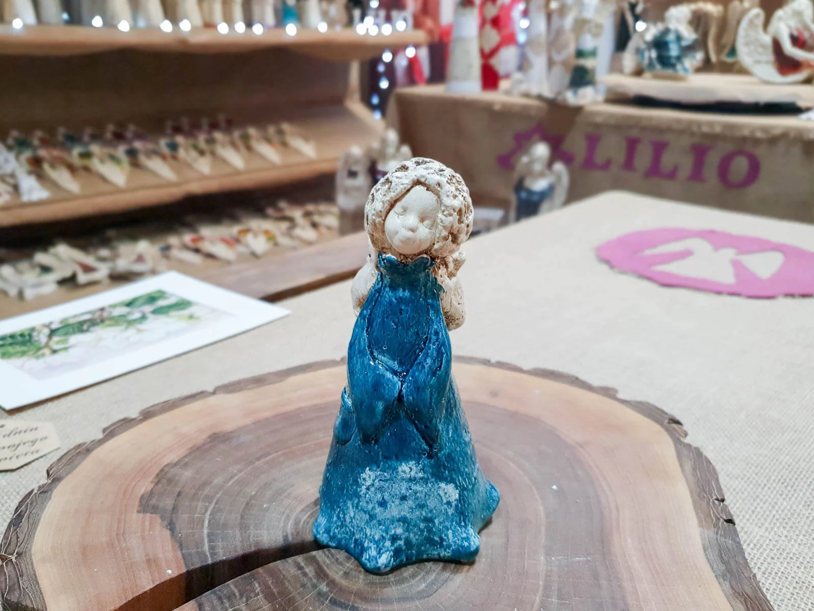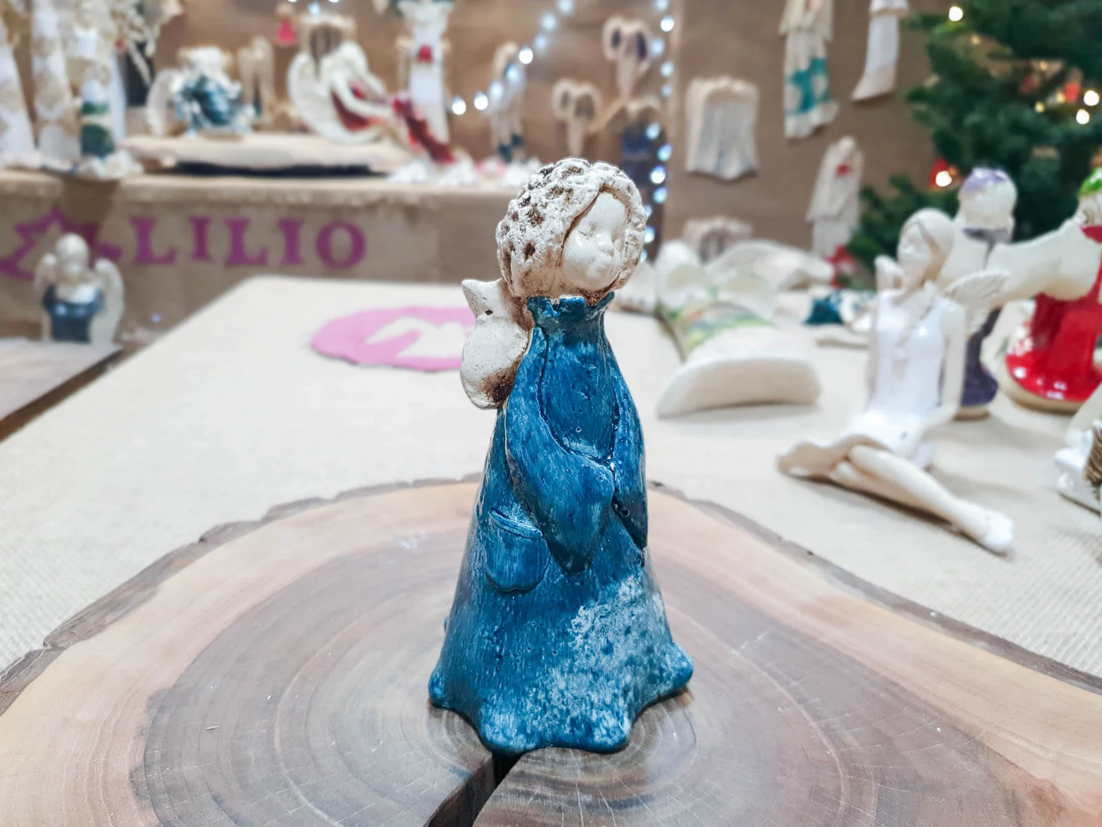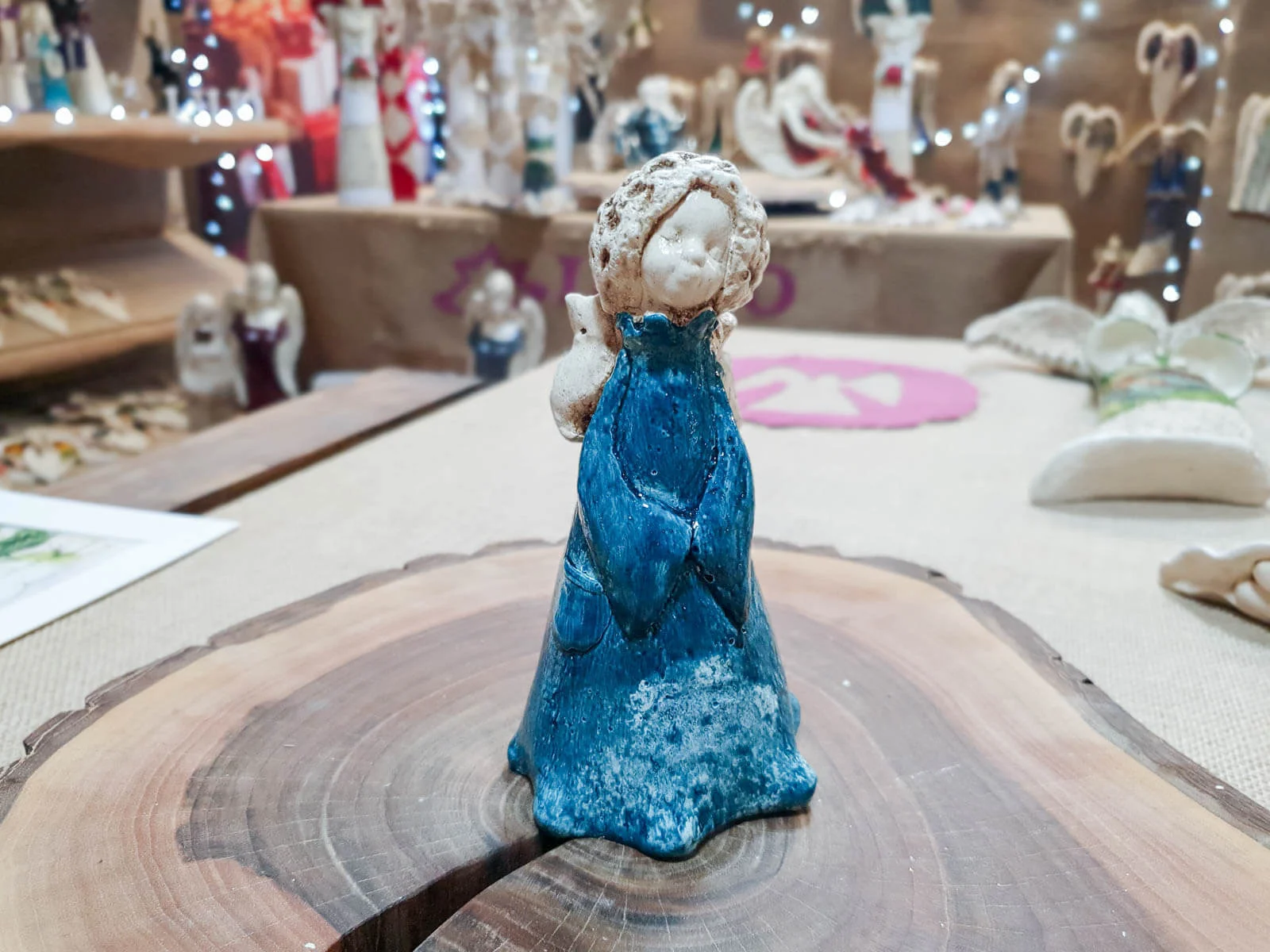 Słodka figurka aniołka Maryann w kolorze turkusowym. Aniołek idealny na prezent na I Komunię.