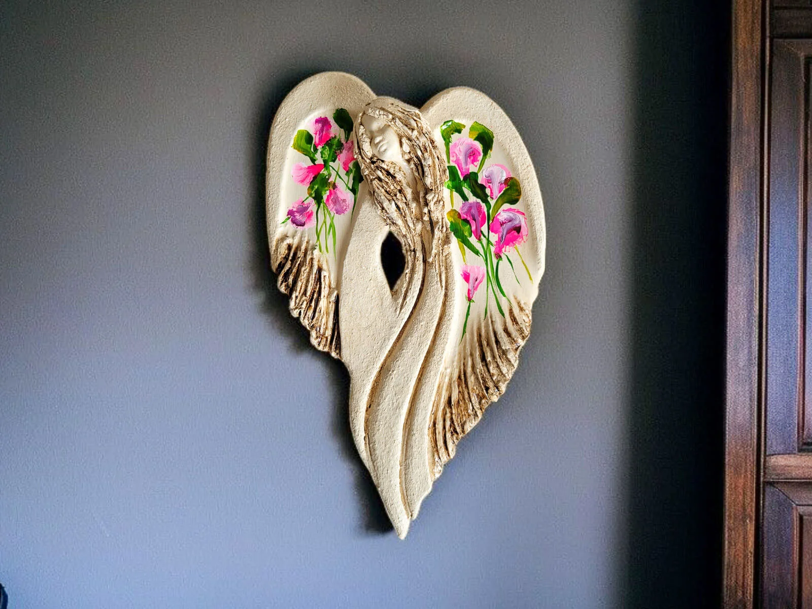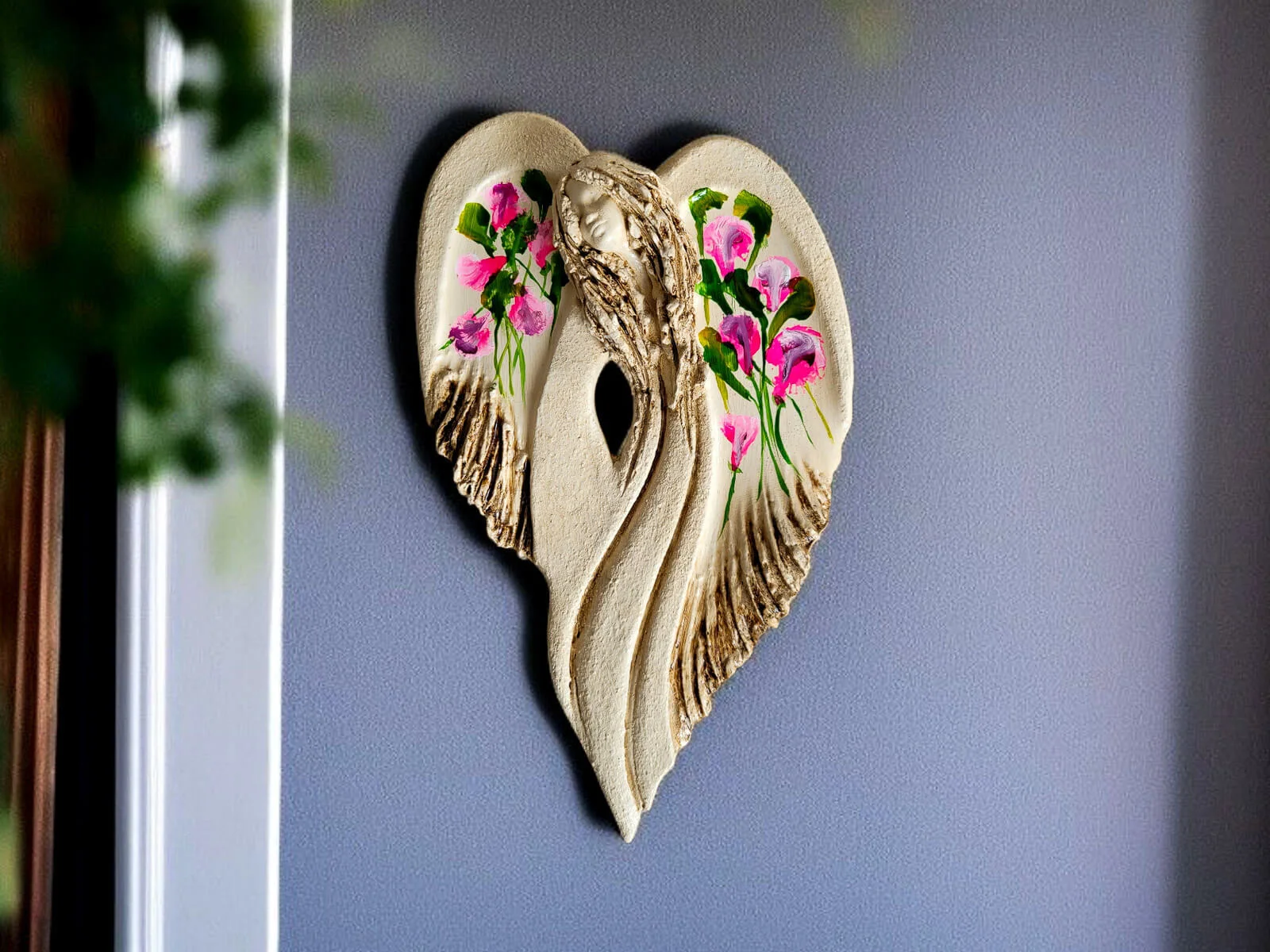 Unikalny anioł Cynthia z kolekcji Art Flower z ręcznie malowanymi kwiatami. Wyjątkowa uroda, ujmująca delikatność, wielka wrażliwość, kwintesencja kobiecości, pełna miłości, porywająca, a jednocześnie zapewniająca spokój. Zobacz jak pięknie chroni miłość, jak dba i troszczy się o Ciebie i Twoich bliskich, opiekuje, obdarza wiarą dającą siłę, rozlewa radość do każdego zakątka mieszkania, przepełnia je dobrocią, sercem pełnym nadziei, sprawia, że miłość dwojga ludzi jest spokojną przystanią.