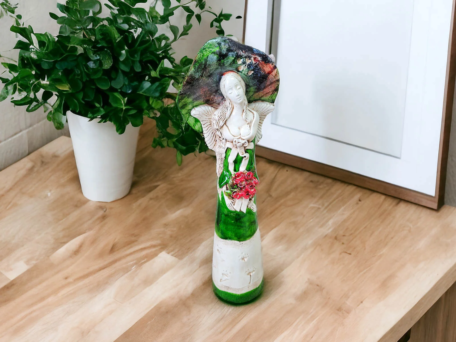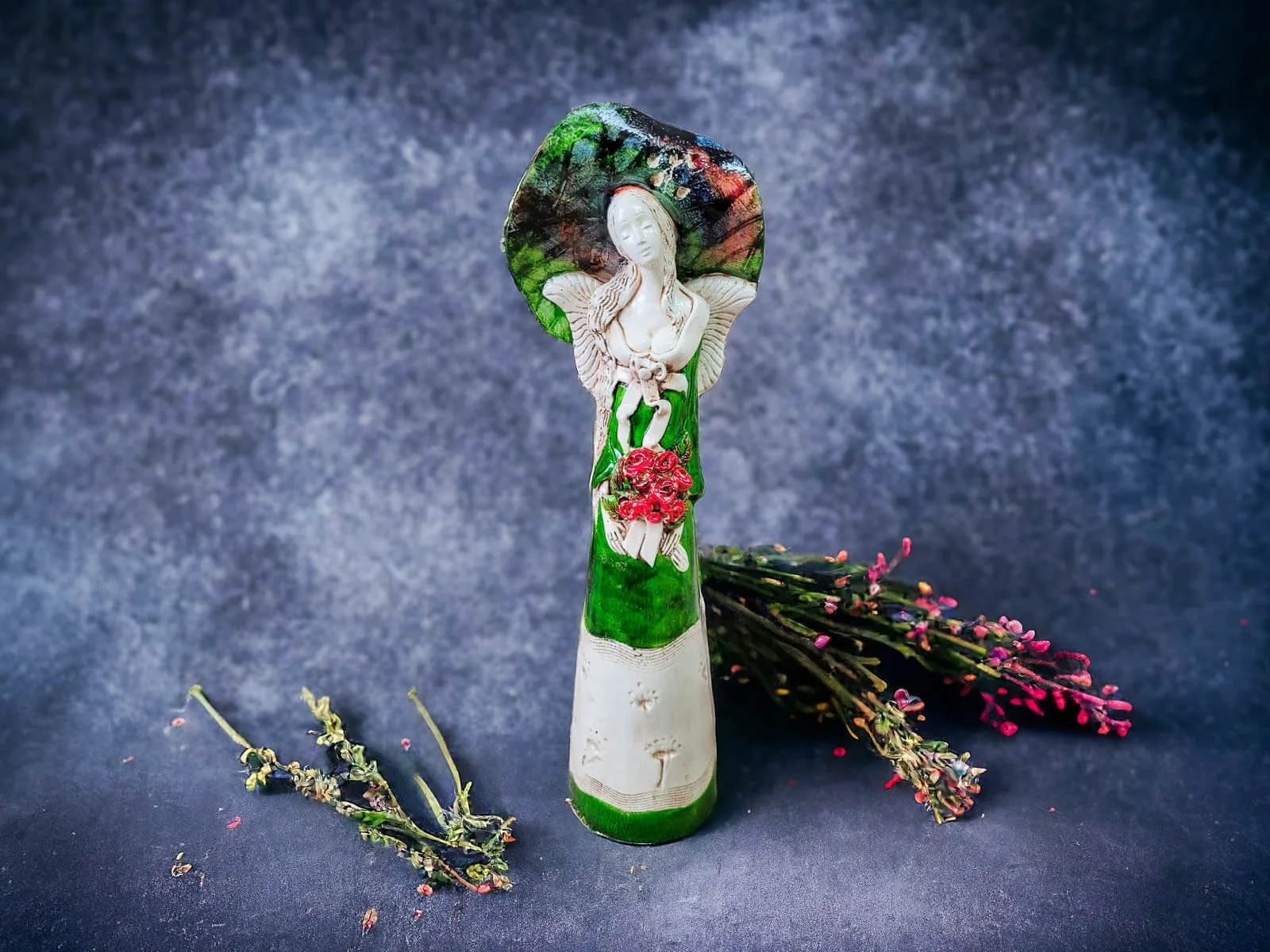 Mabel w zielonej sukni to anioł o wyeksponowanych kobiecych kształtach. Cechą szczególną tej niezwykłej figurki jest rozłożysty kapelusz, podkreślający piękno Anioła. Trzymany w rękach bukiet kwiatów dodaje jeszcze więcej uroku. Figurka idealnie sprawdzi się jako uniwersalny prezent na różne okazje - urodziny, imieniny, Dzień Matki czy prezent pod choinkę na Święta.