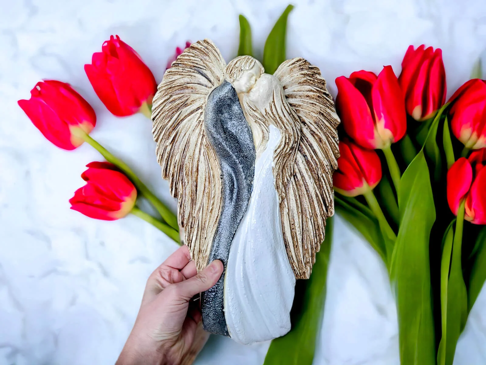 Zakochane anioły to idealny prezent na ślub lub rocznicę ślubu. To jeden z tych prezentów, które pozostaną z obdarowanymi przez lata i będą przypominać osoby, od których ten prezent otrzymały. W przeciwieństwie do prezentów w kopercie, ten prezent będzie wyróżniał się na tle innych i każda osoba, która weźmie go do ręki zrobi duże wow i spyta od kogo taaki prezent.