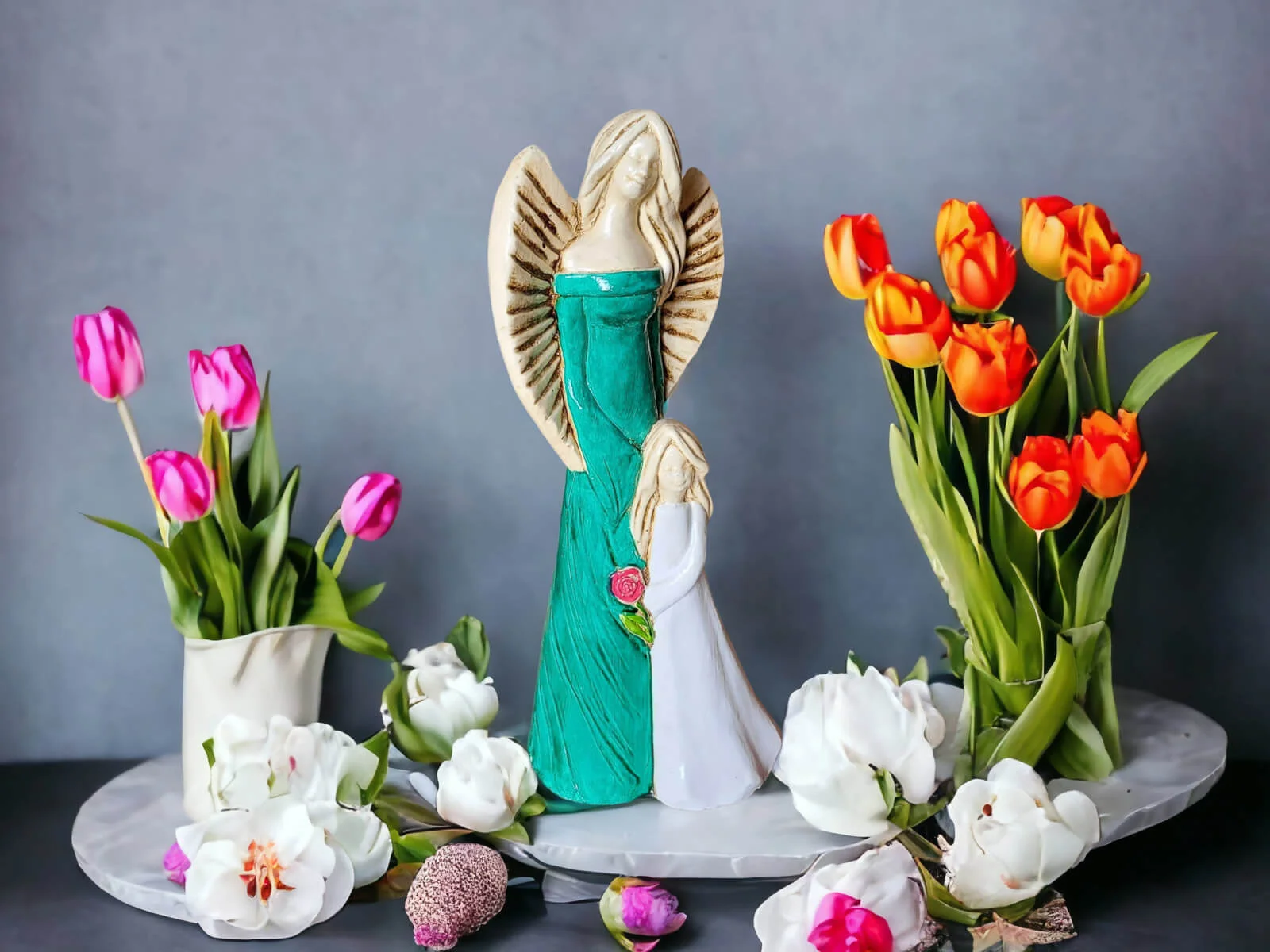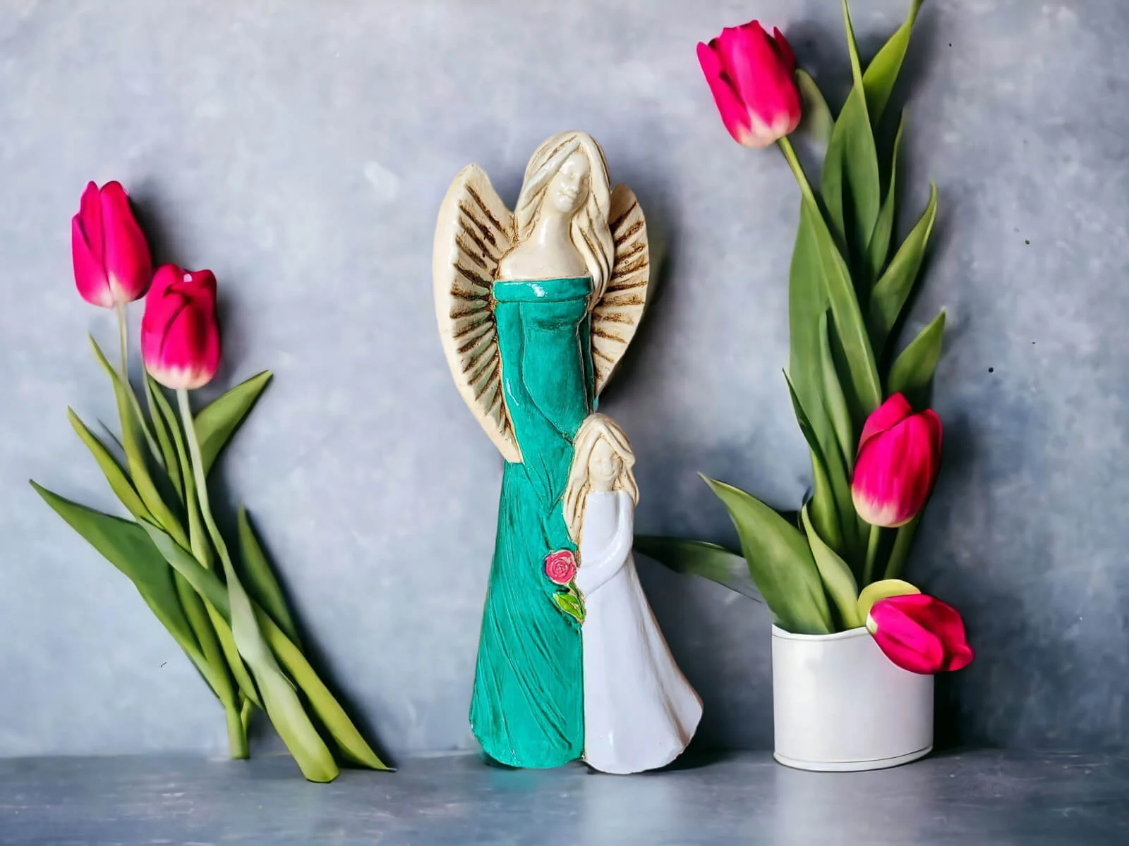 Te anioły mają moc utrzymywania więzi! Hannah i Evelyn towarzyszą, przypominają codziennie o bliskiej osobie, nie tylko w Dzień Matki lub Dzień Dziecka.