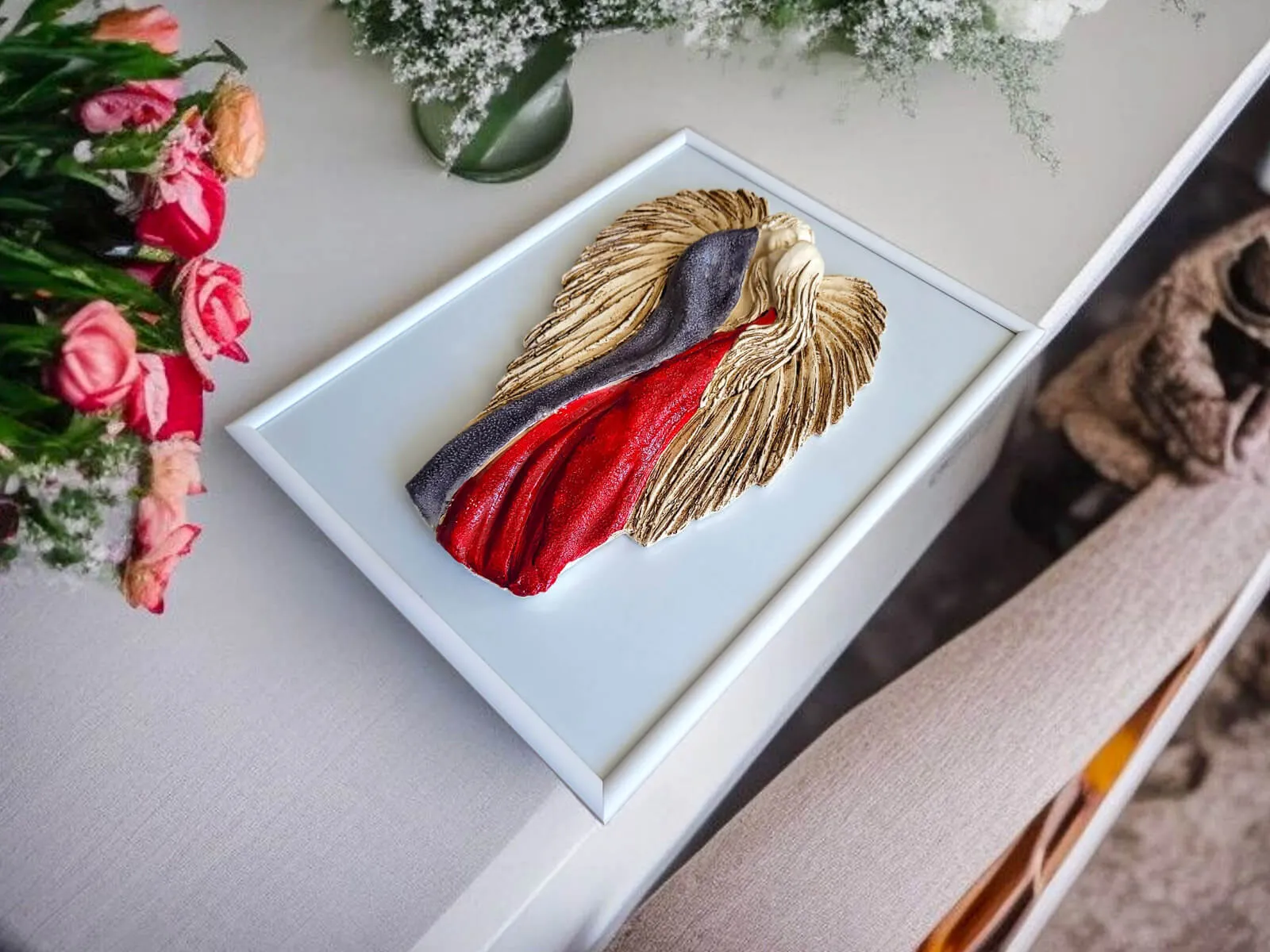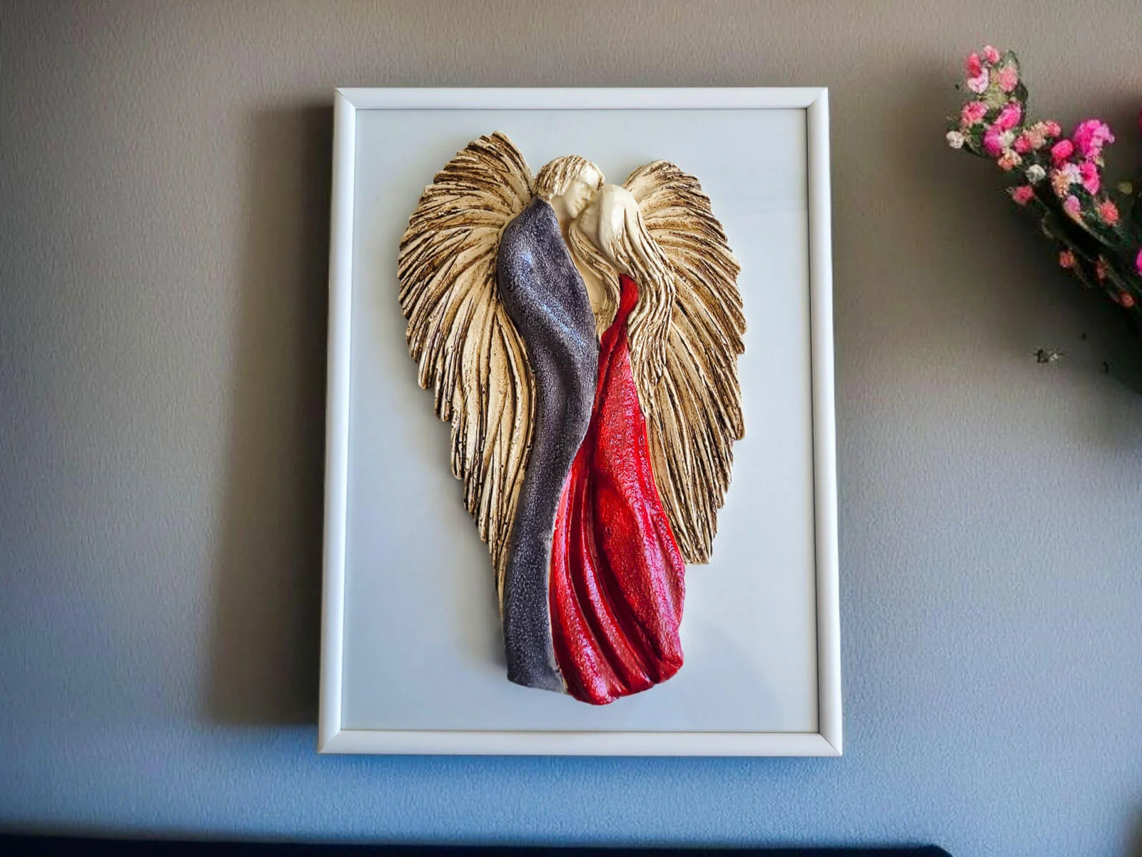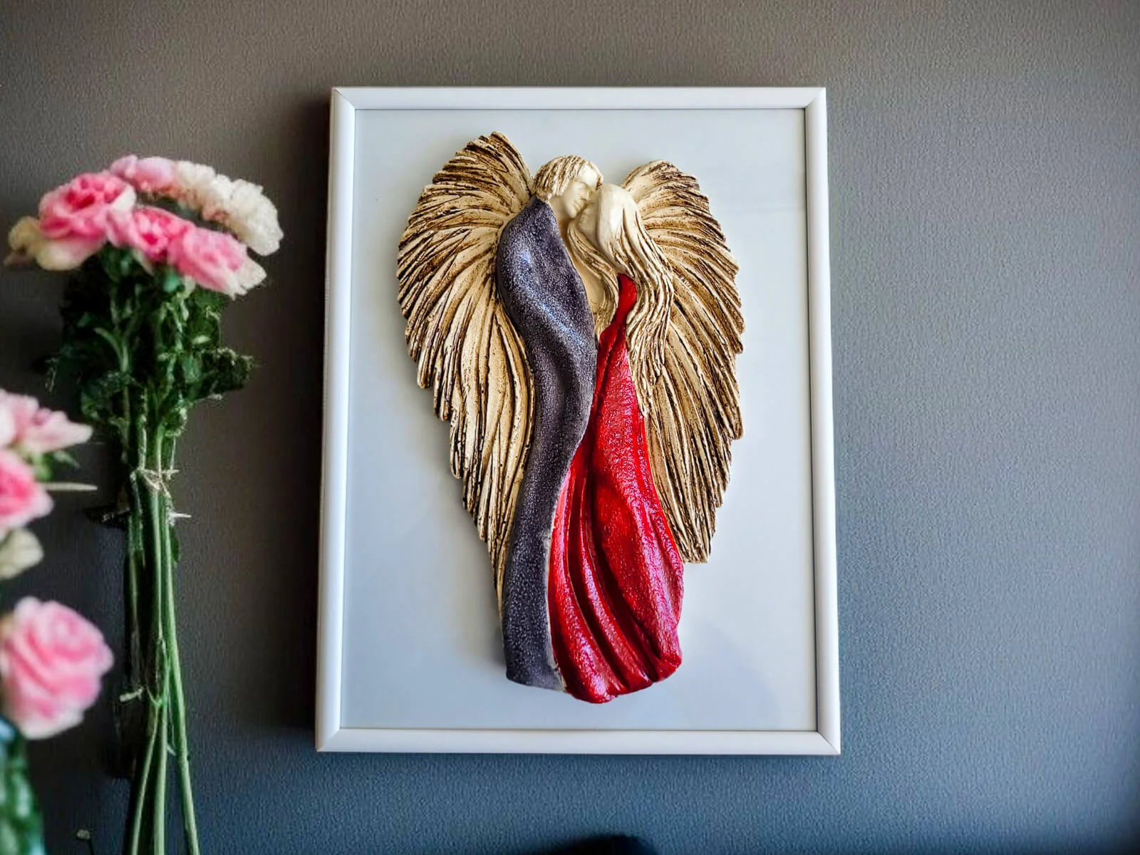 Figurka Zakochane Anioły w eleganckiej drewnianej ramce to ręcznie robiona figurka która przenosi nas do świata równowagi i harmonii, nawiązując do koncepcji Yin i Yang. Te delikatne anioły w srebrnym i czerwonym, umieszczone na eleganckiej drewnianej ramce, tworzą piękny kontrast i emanują subtelnością.