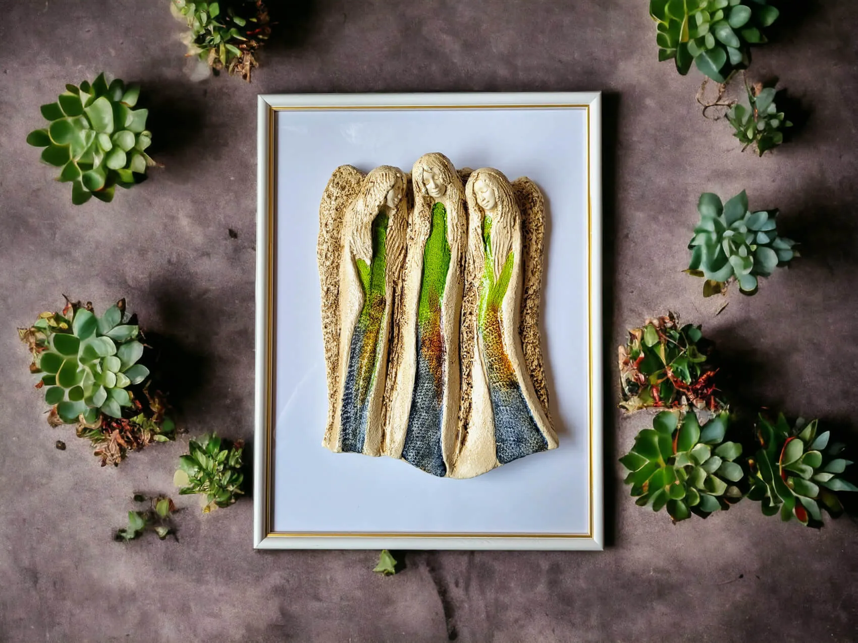 Anioły Wiara Nadzieja Miłość + ramka - zielony granat - 28 x 20 cm figurka dekoracyjna gipsowa +