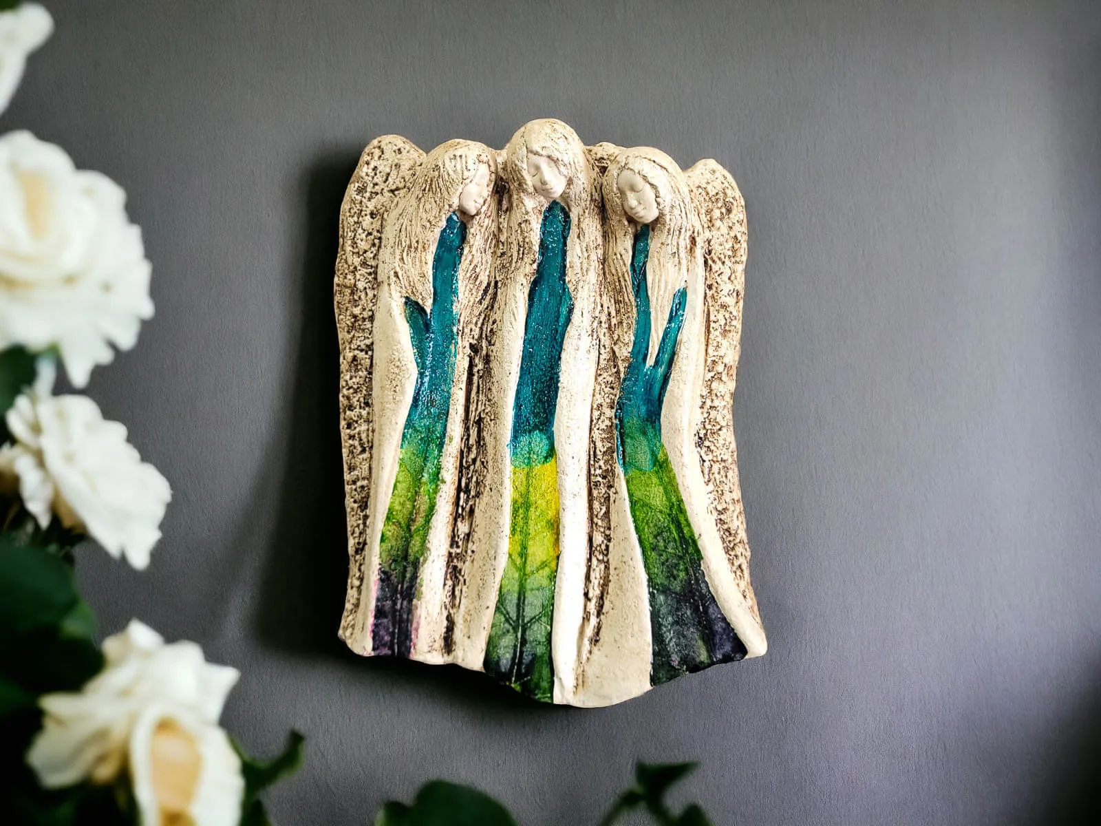 Anioły Wiara Nadzieja Miłość w wersji Art Leaf z liśćmi. Idealne na prezent na każdą okazję. Anioły przynoszą wiarę że będzie lepiej oraz nadzieję na zmianę, ku dobremu. Anioły również wnoszą do życia miłość, której nigdy nie ma za dużo. To nasze ulubione anioły, które zawsze wybieramy kiedy chcemy wesprzeć licytację charytatywną.