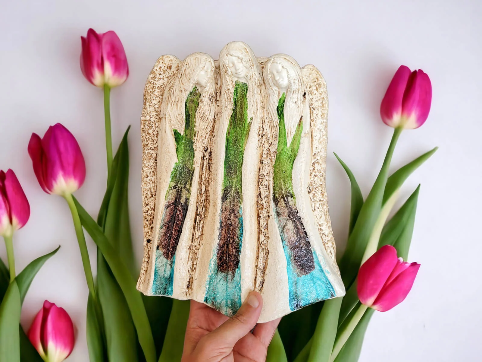 Jeśli anioł ma zostać wręczony jako prezent możemy go również elegancko zapakować w przeźroczysty celofan wiązany ekologicznym sznurkiem. Dzięki temu anioł będzie wyglądał jeszcze bardziej dostojnie i będzie gotowy do wręczenia. Dla wygody możesz również od razu zakupić papierową białą torbę prezentową.
