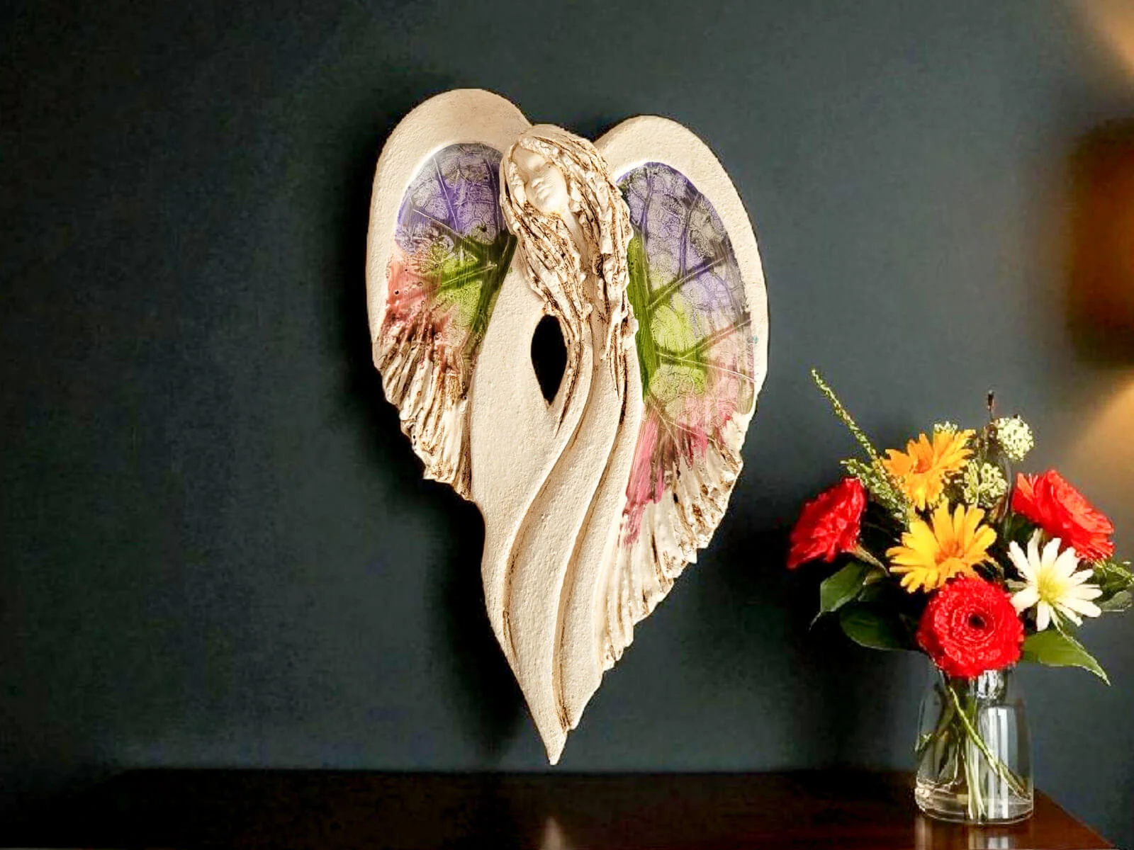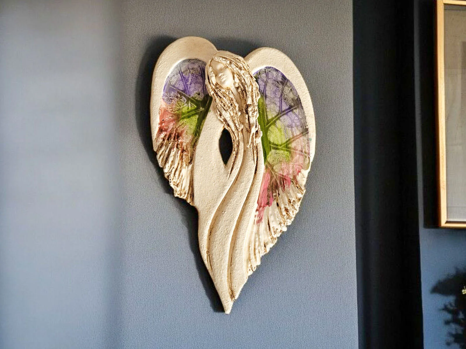 Unikalny anioł Cynthia z kolekcji Art. Jedyna sztuka z tym wzorem. Wyjątkowa uroda, ujmująca delikatność, wielka wrażliwość, kwintesencja kobiecości, pełna miłości, porywająca, a jednocześnie zapewniająca spokój. Zobacz jak pięknie chroni miłość, jak dba i troszczy się o Ciebie i Twoich bliskich, opiekuje, obdarza wiarą dającą siłę, rozlewa radość do każdego zakątka mieszkania, przepełnia je dobrocią, sercem pełnym nadziei, sprawia, że miłość dwojga ludzi jest spokojną przystanią.