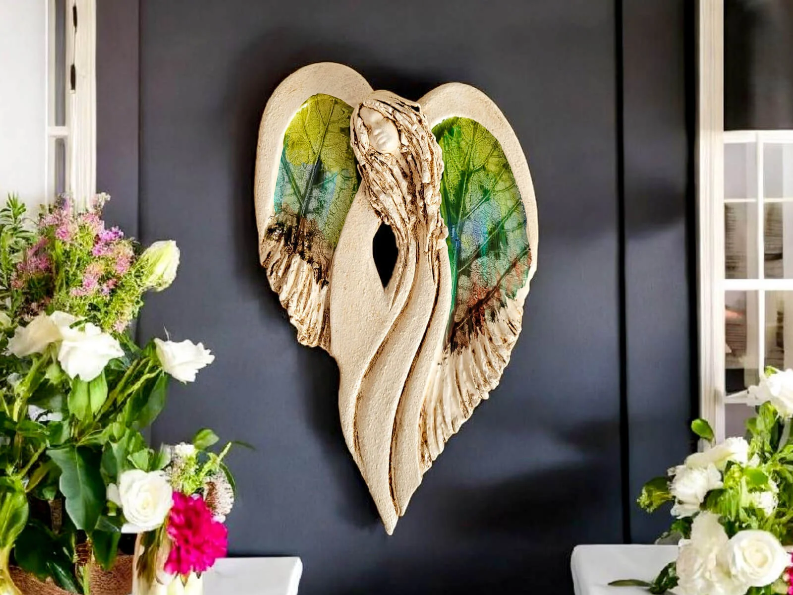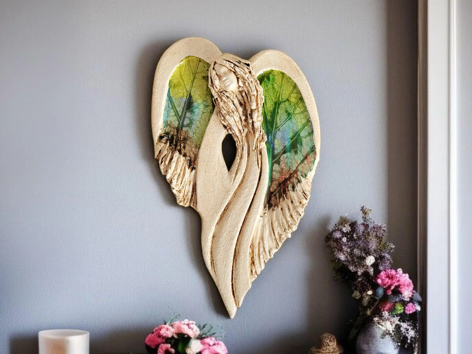 Unikalny anioł Cynthia z kolekcji Art. Jedyna sztuka z tym wzorem. Wyjątkowa uroda, ujmująca delikatność, wielka wrażliwość, kwintesencja kobiecości, pełna miłości, porywająca, a jednocześnie zapewniająca spokój. Zobacz jak pięknie chroni miłość, jak dba i troszczy się o Ciebie i Twoich bliskich, opiekuje, obdarza wiarą dającą siłę, rozlewa radość do każdego zakątka mieszkania, przepełnia je dobrocią, sercem pełnym nadziei, sprawia, że miłość dwojga ludzi jest spokojną przystanią.