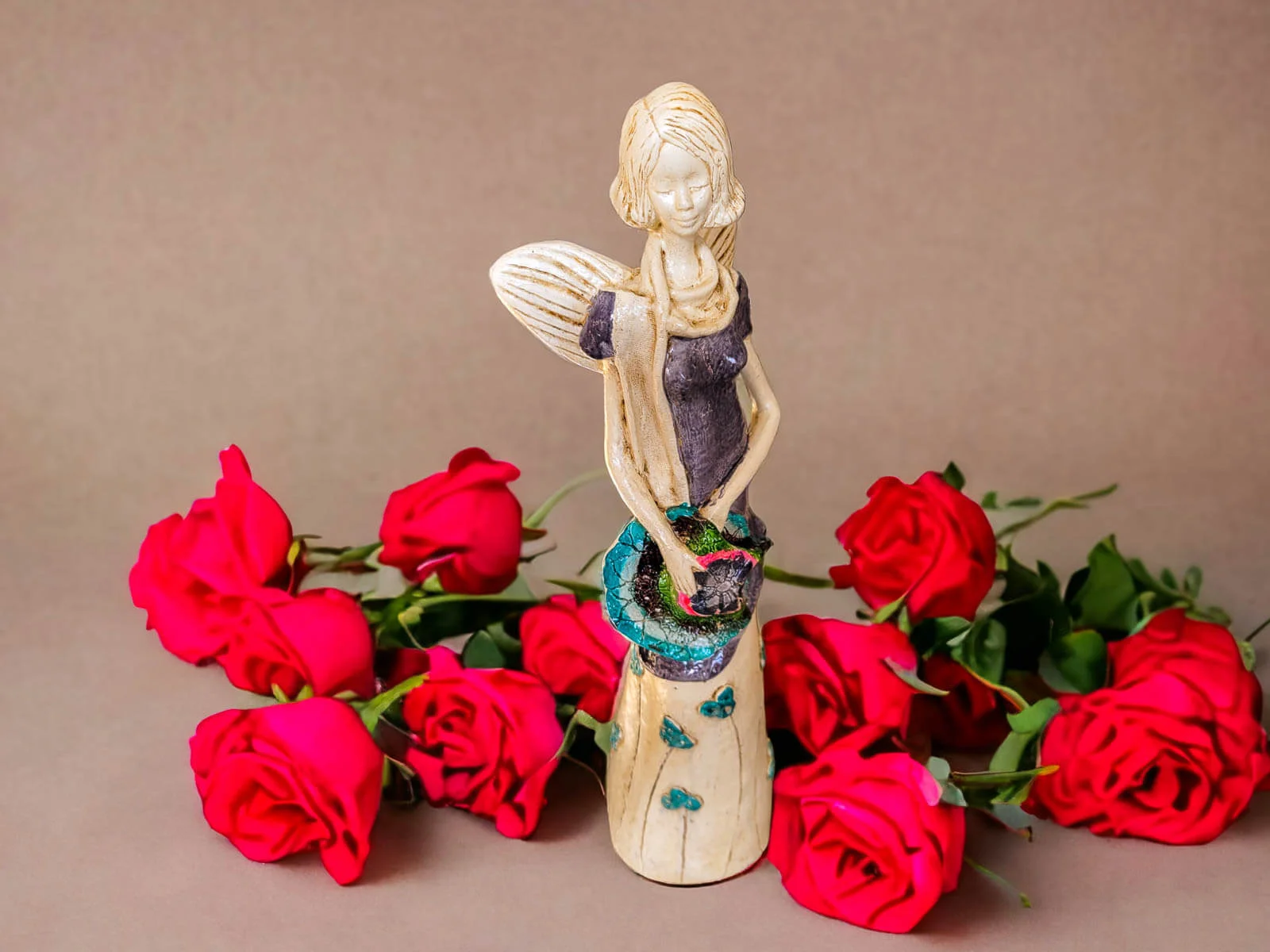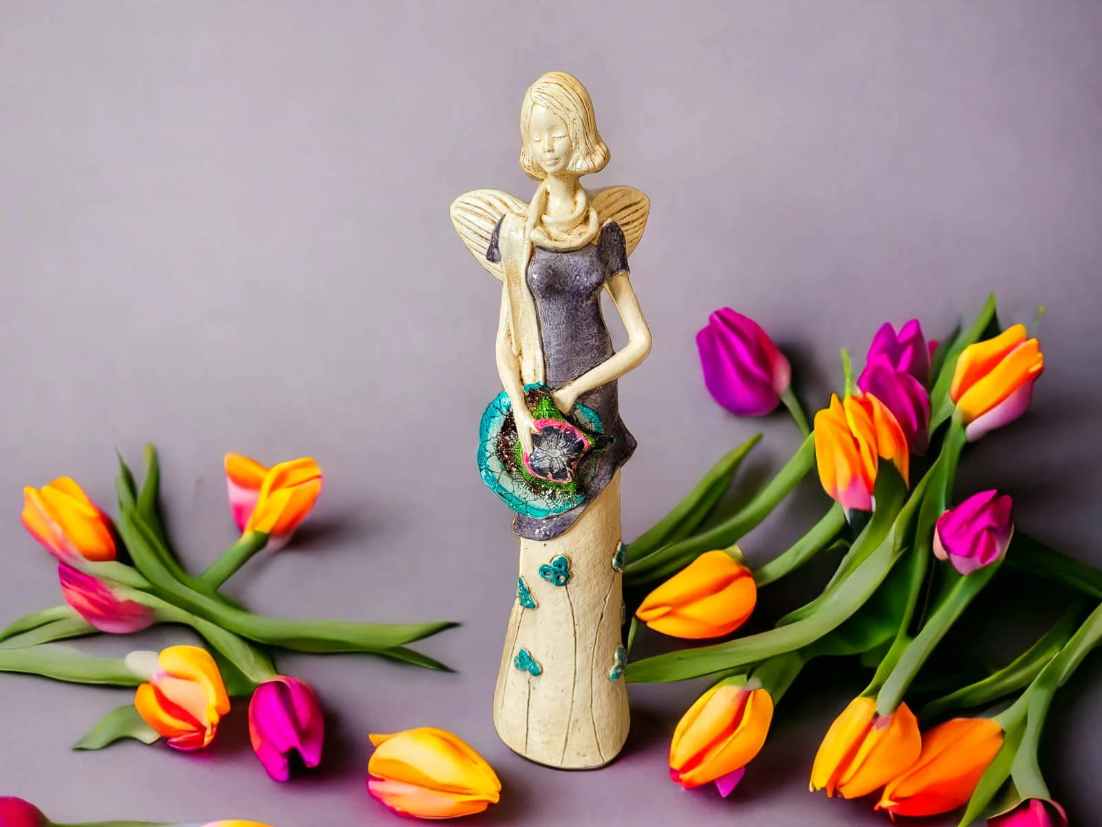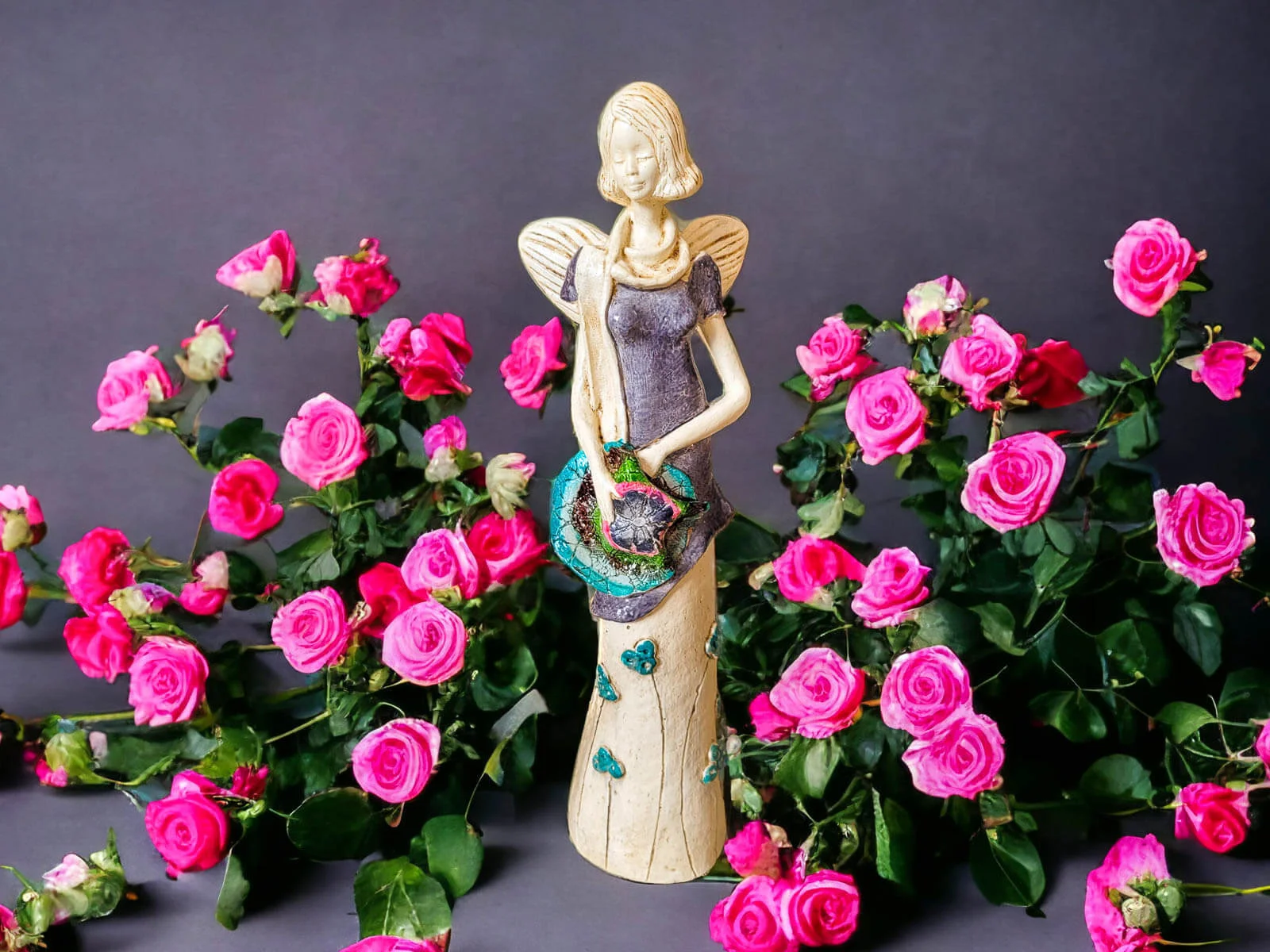 Anioł Sunday Rose w szarej sukni idealna jako ozdoba mieszkania lub prezent dla kogoś bliskiego. Sunday jest towarzyska i optymistycznie nastawiona do życia. Cechuje ją ciekawość świata, ma w sobie wiele pasji i kocha zwierzęta. Czuje się najlepiej na łonie natury. Anioł Sunday Rose jest wyjątkową dekoracją, która urozmaici twoje wnętrze.
