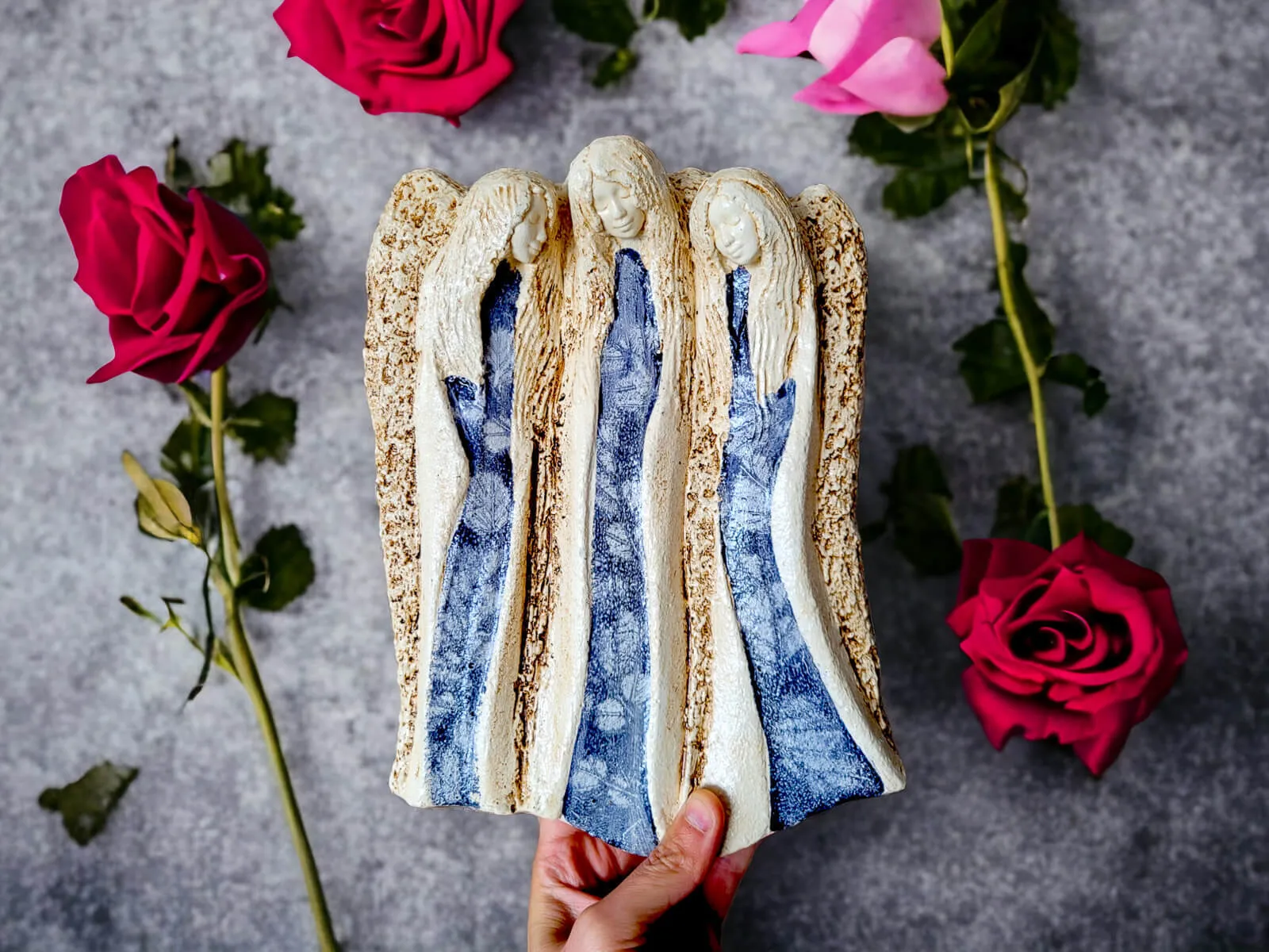 Anioły Wiara Nadzieja Miłość w odcieniach szarości to anioły niosące wiarę że będzie lepiej i nadzieję na zmianę. Anioły również wnoszą do życia miłość, której nigdy nie ma za dużo. To nasze ulubione anioły, które często wybieramy kiedy kogoś chcemy wesprzeć np. na licytację.