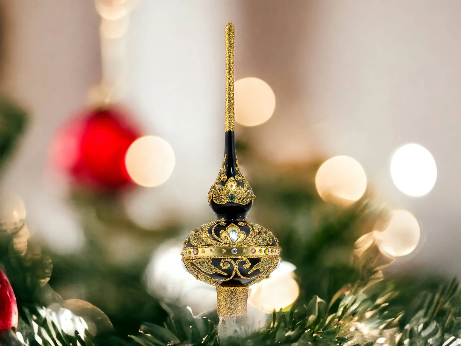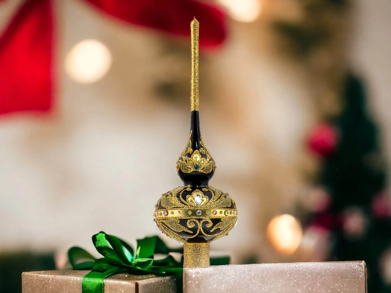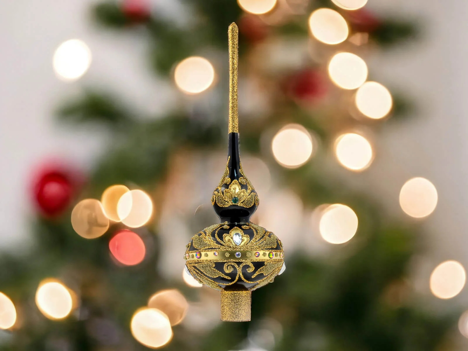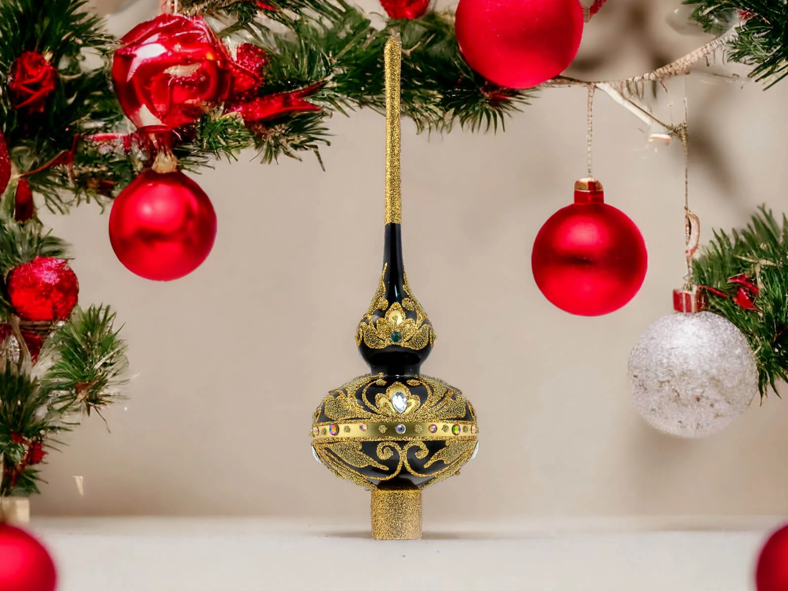 Dzięki perfekcyjnie dopracowanym detalom stanowi doskonałą ozdobę dla tych, którzy cenią elegancję i tradycję podczas świątecznego okresu. Ten szklany szpic choinkowy to niezapomniany akcent, który wnosi do domu ducha świąt Bożego Narodzenia w wyjątkowo stylowy sposób.
