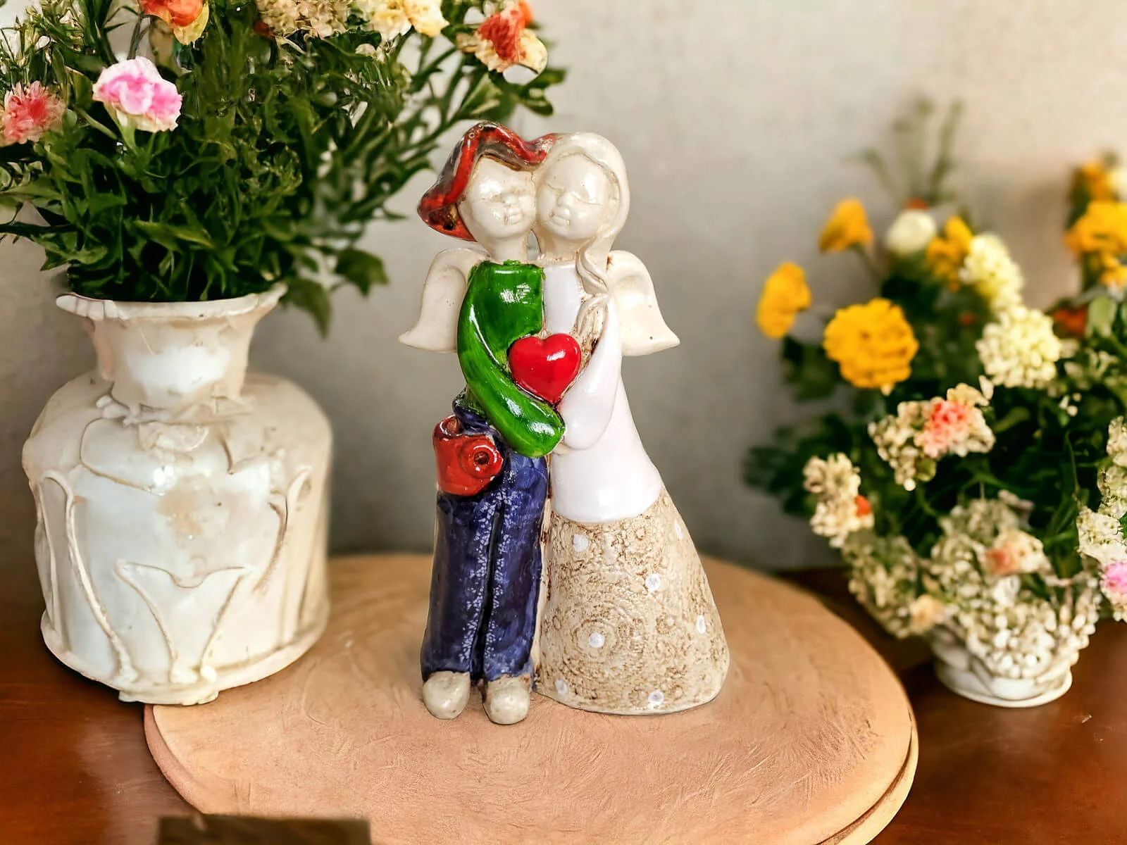 Figurka Aniołów Natalia i Ludwik z unikalnej kolekcji Art to wyraz ręcznej pasji i miłości do piękna. Natalia i Ludwik, trzymając się za ręce z sercem pomiędzy nimi, symbolizują niezwykłe uczucie, jakim jest miłość. Każdy detal tej figurki jest ręcznie wykonany z gipsu, a następnie starannie pomalowany, co nadaje mu wyjątkowego charakteru.