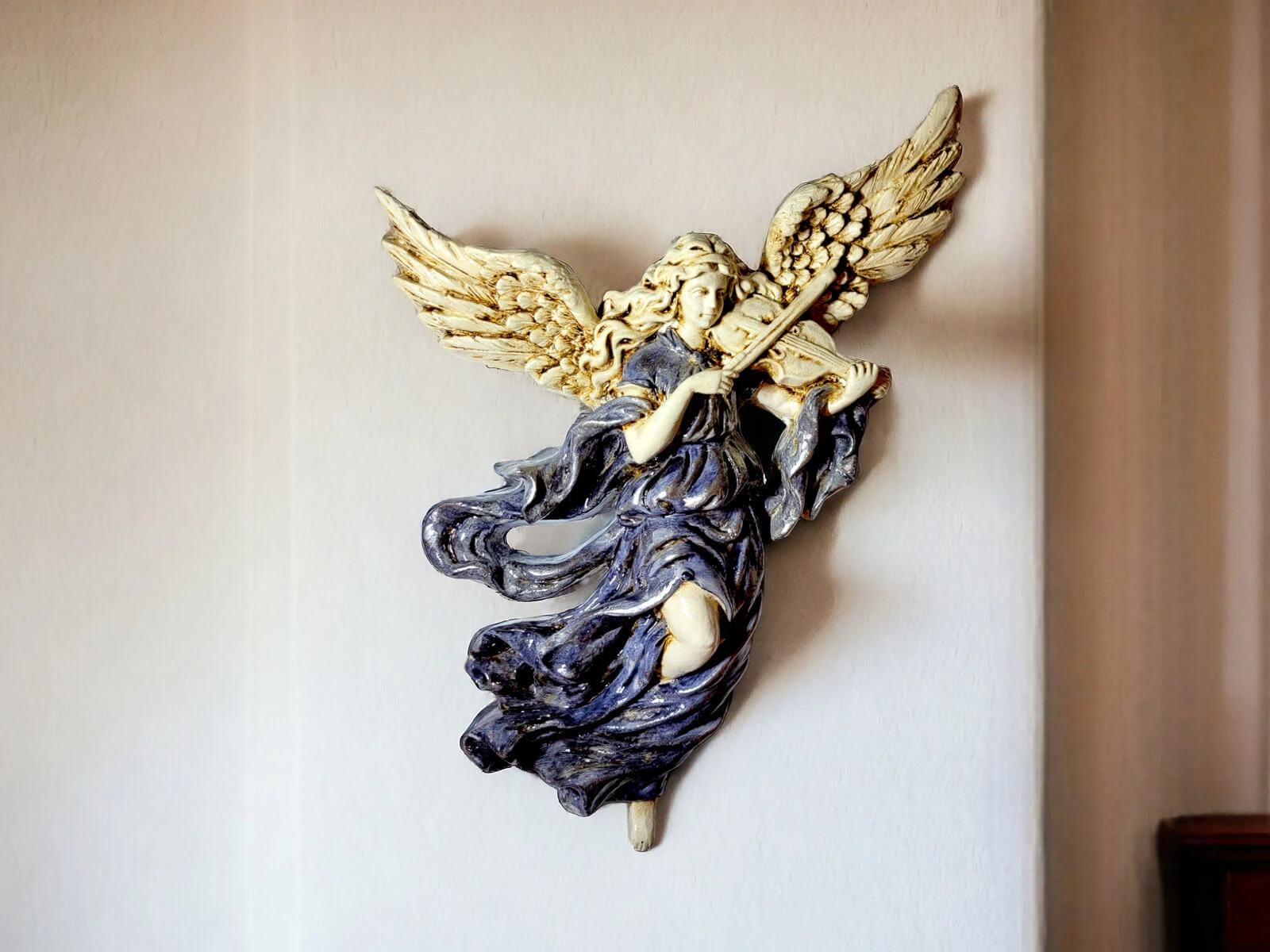Anioł ze Skrzypcami to unikatowa, ręcznie robiona figurka do powieszenia na ścianie dzięki której wnętrze Twojego domu nabierze niepowtarzalnego uroku. Każdy element figurki emanuje starannością, tradycją i artystycznym kunsztem.