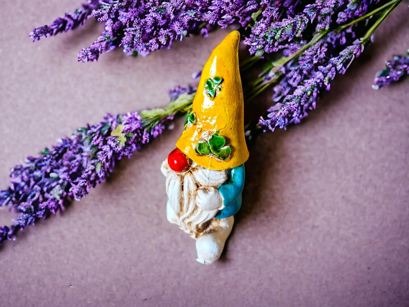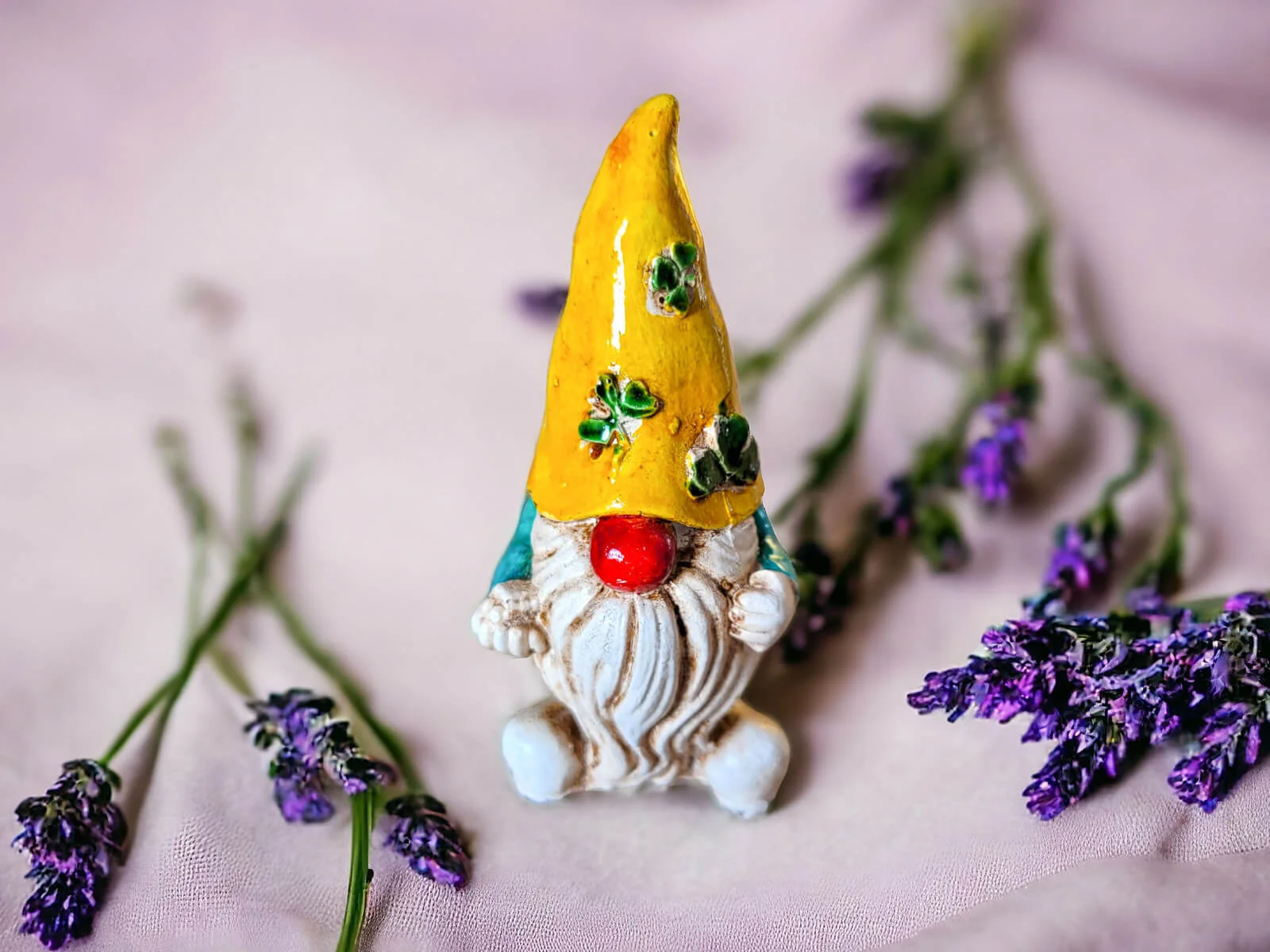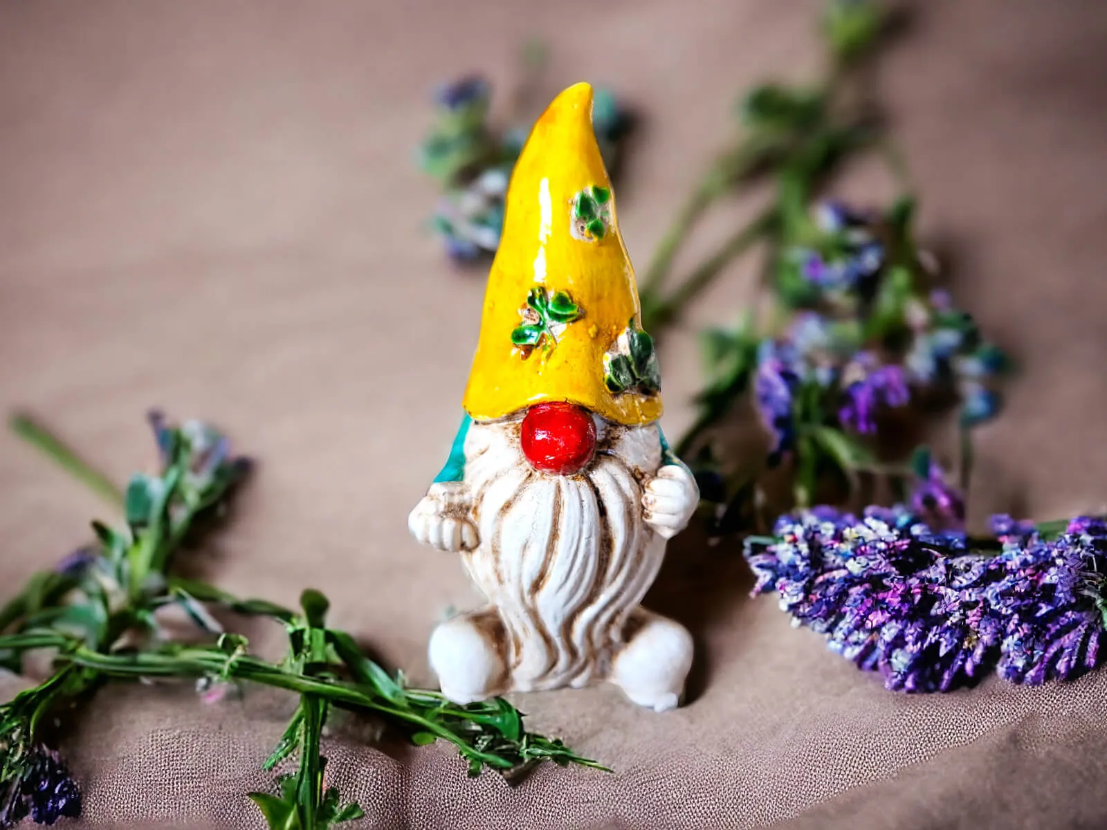 Jego żółta czapka, z długim daszkiem, pełni nie tylko funkcję stylowego dodatku, ale także miejsca, do którego często przyklejają się koniczynki. Te pięciolistne koniczynki to znak szczęścia, a przypisywane im magiczne właściwości sprawiają, że Skrzat Szczęściarz uważany jest za posłańca pomyślności.