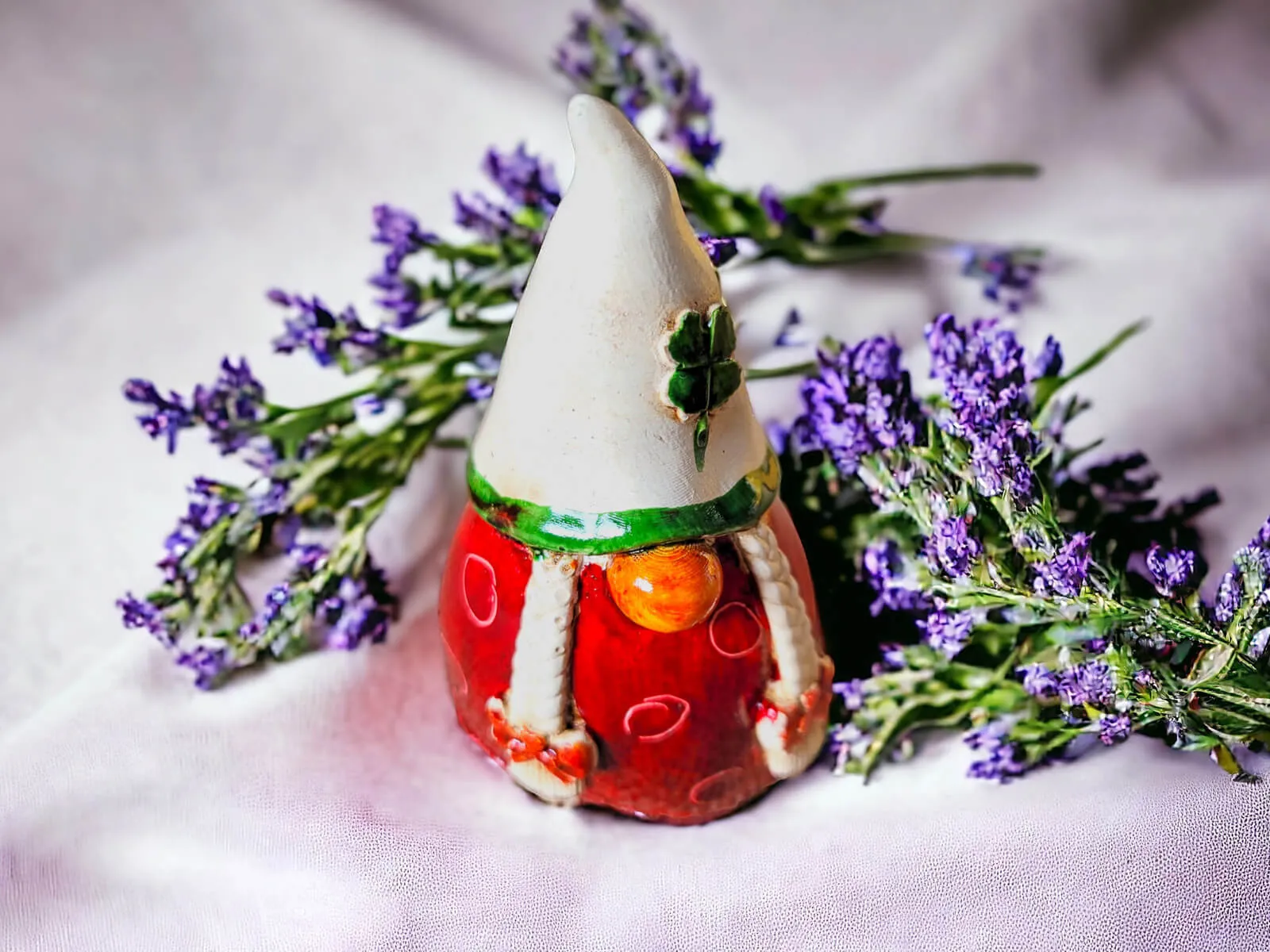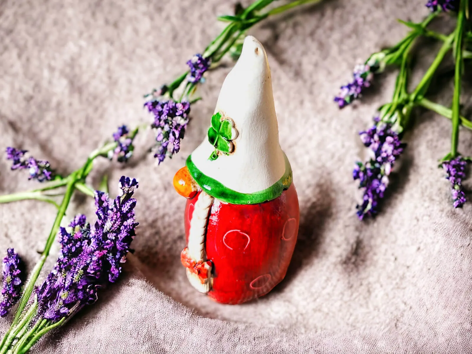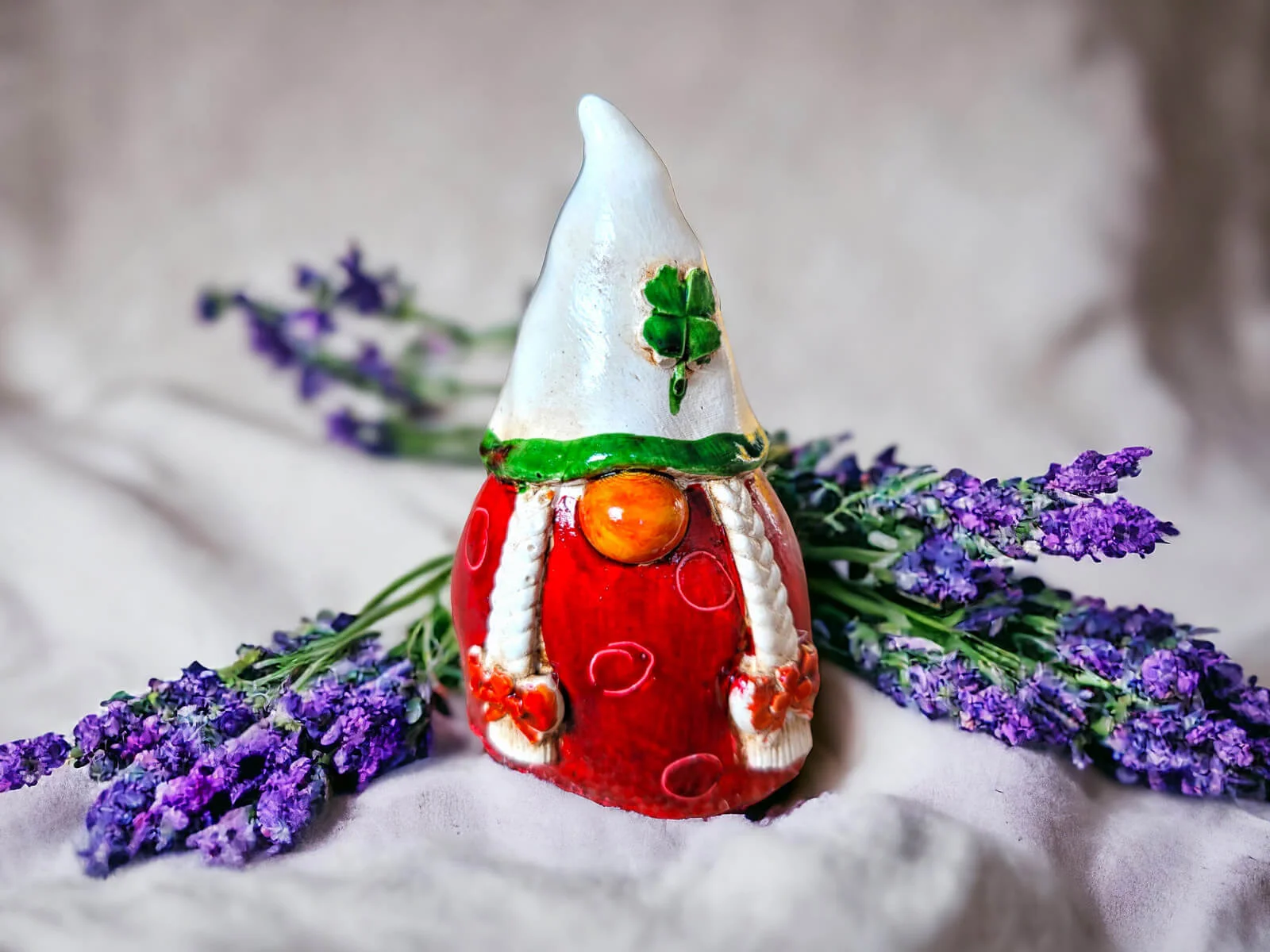 Figurka Smakosza utrzymana jest w czerwonym kolorze, co nadaje jej ciepłego i przytulnego wyglądu. Charakterystyczna beżowa czapka z koniczynką dodaje postaci wyrazistego akcentu. Długa czapka jest nie tylko modnym dodatkiem, ale również praktycznym narzędziem dla Smakosza w jego kulinarnych eksploracjach.